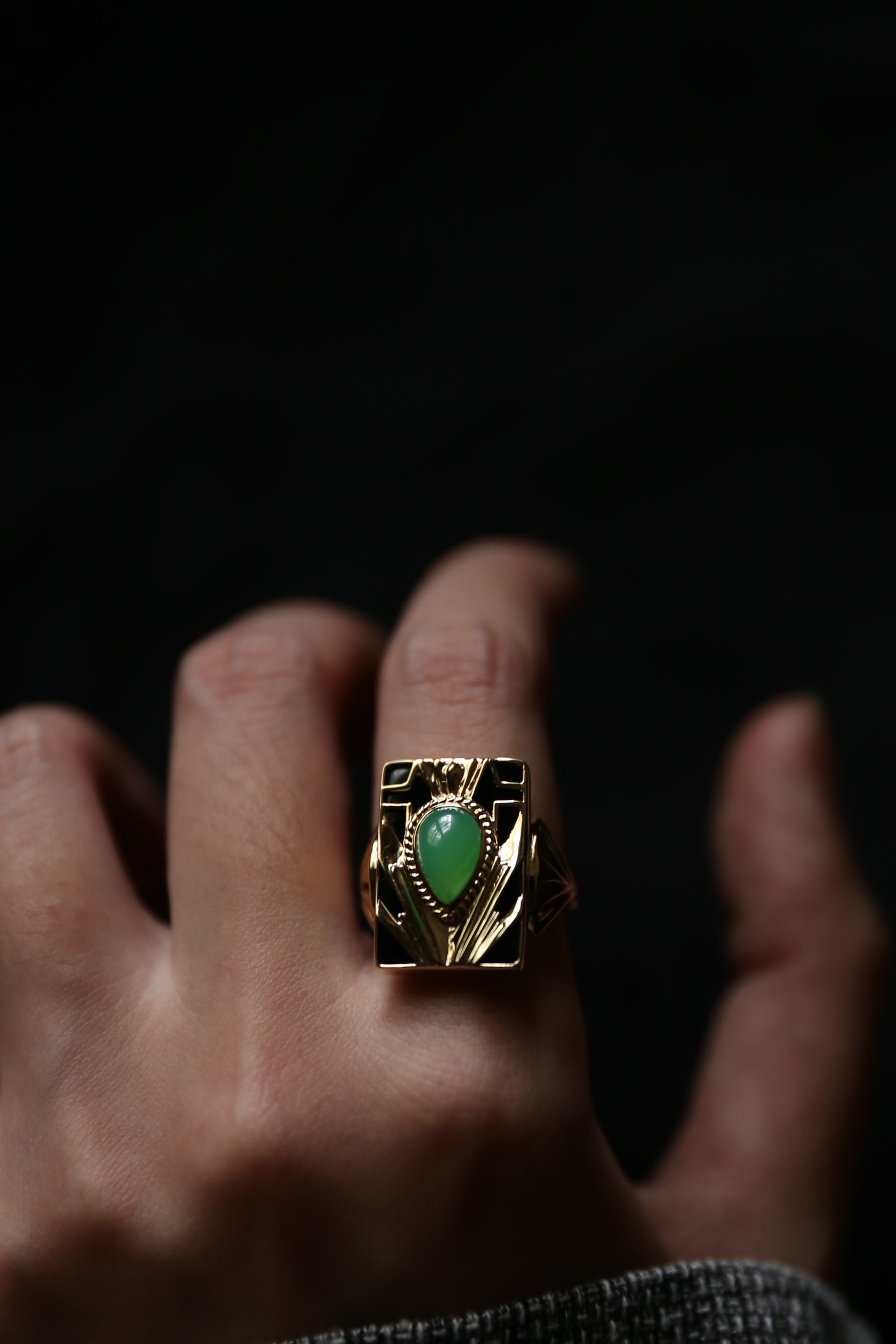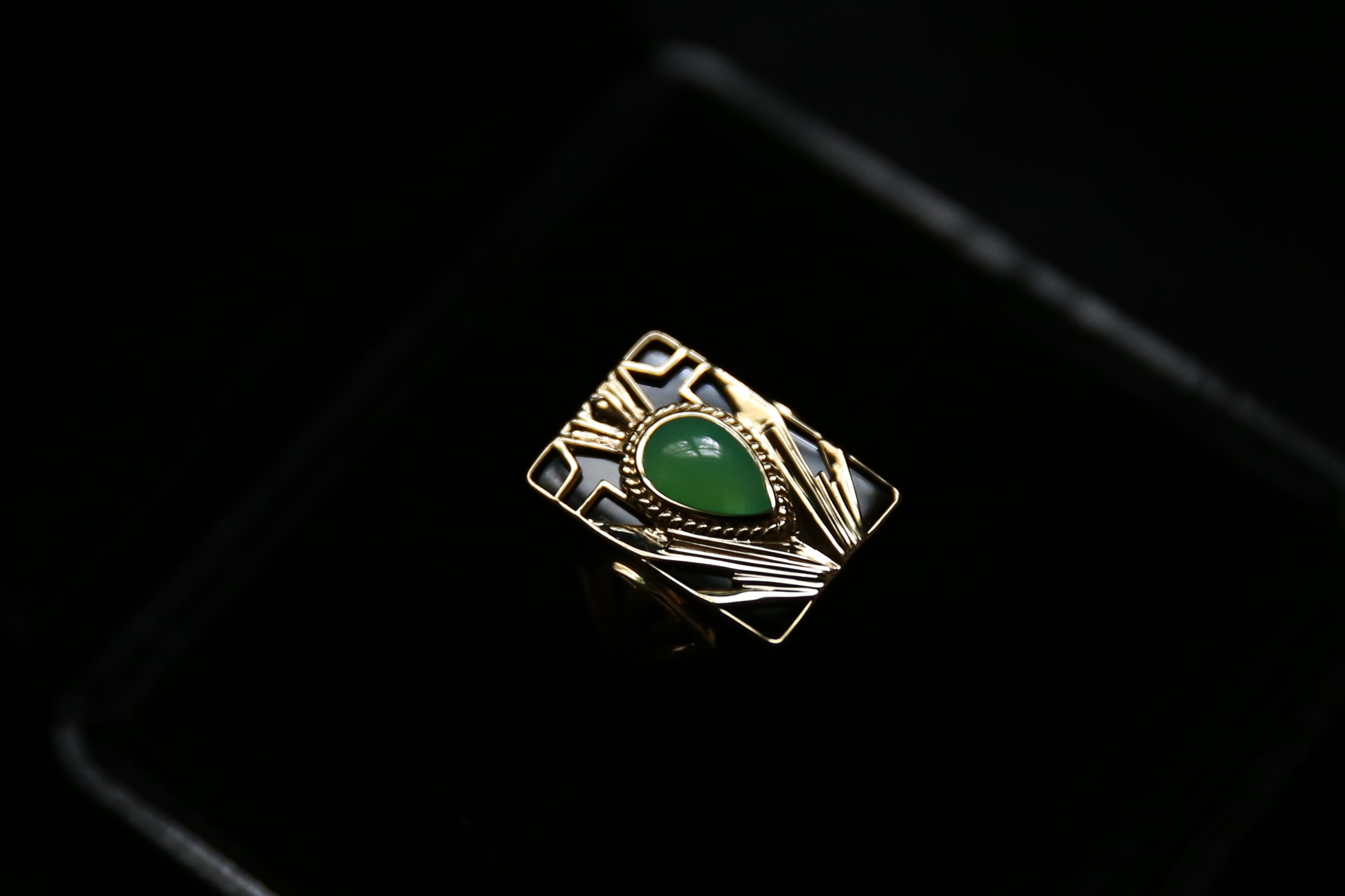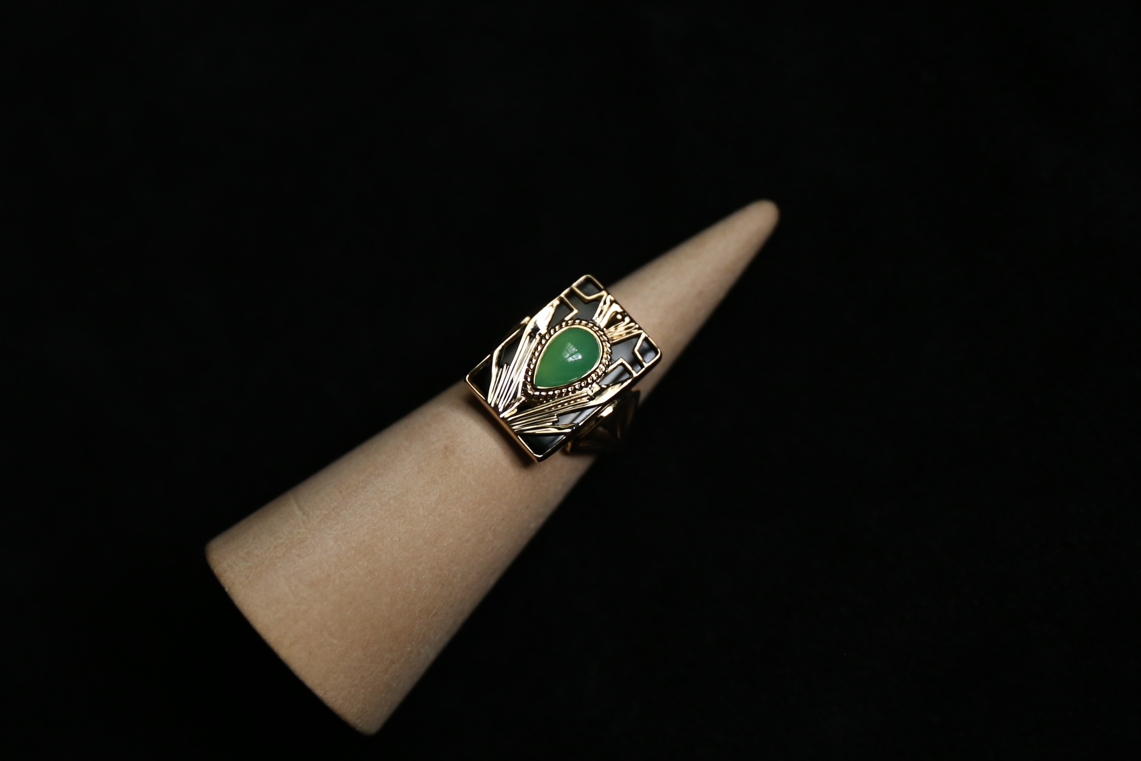 ArtDeco风格18K金翡翠耳钉改造定制戒指