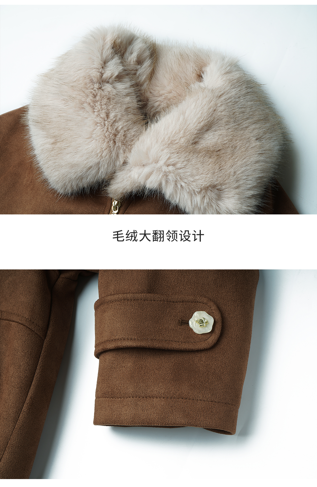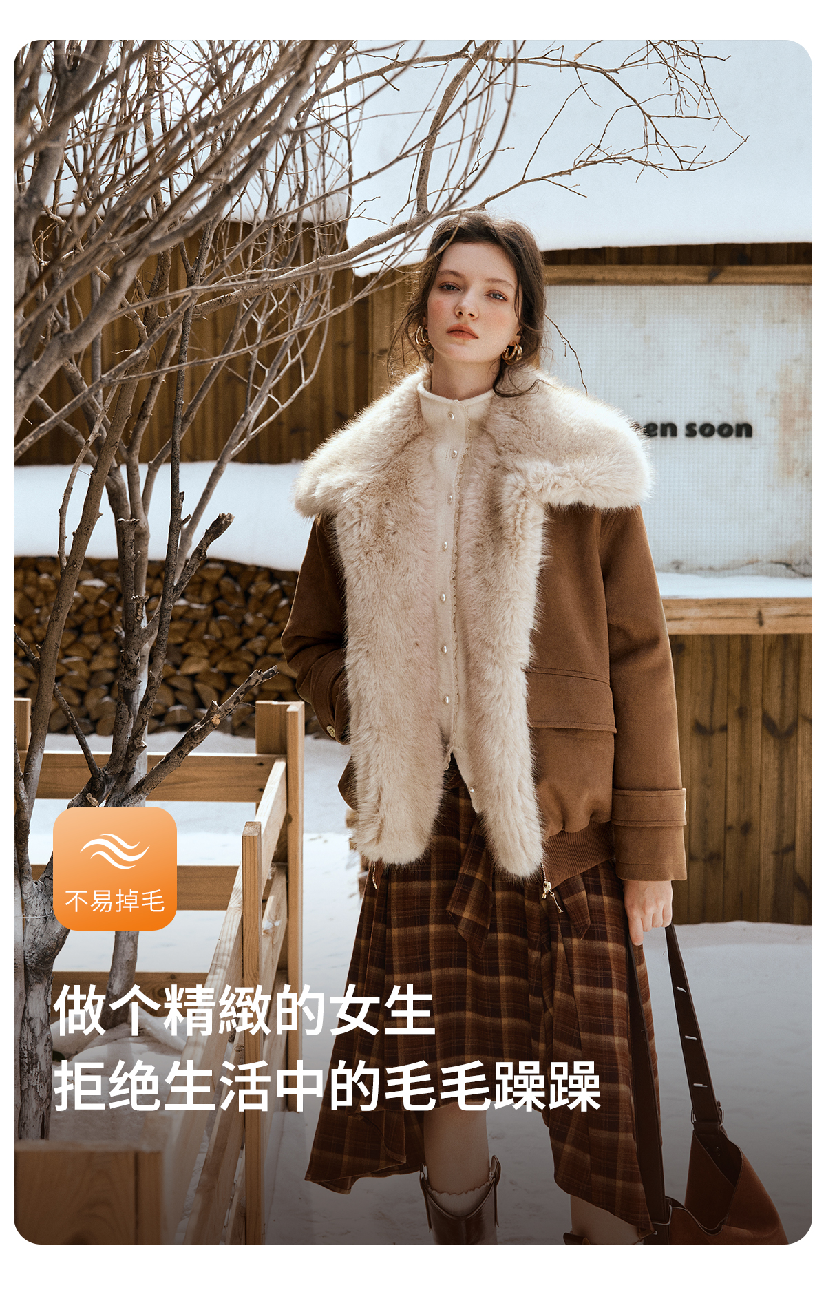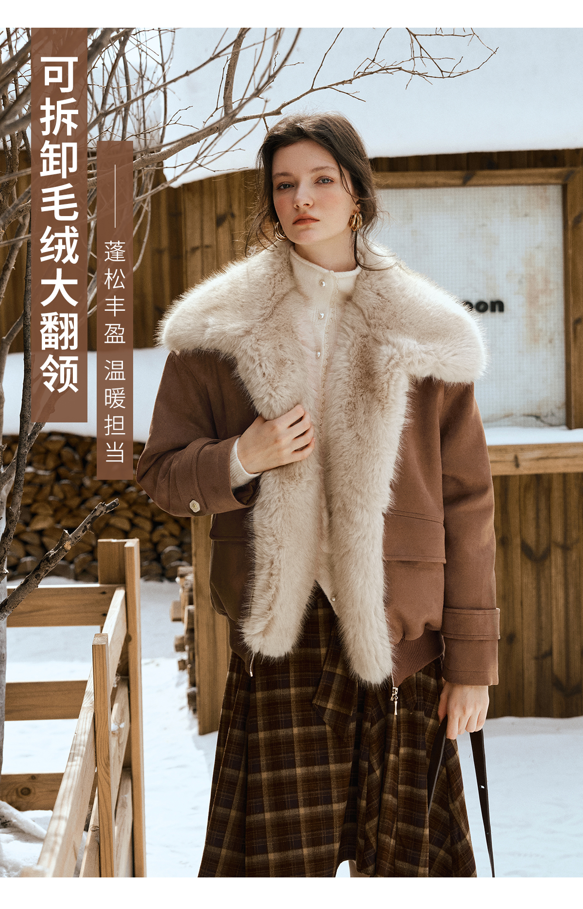 欧芮儿可拆卸大翻领毛领设计感皮草外套女冬季工装皮毛一体夹克