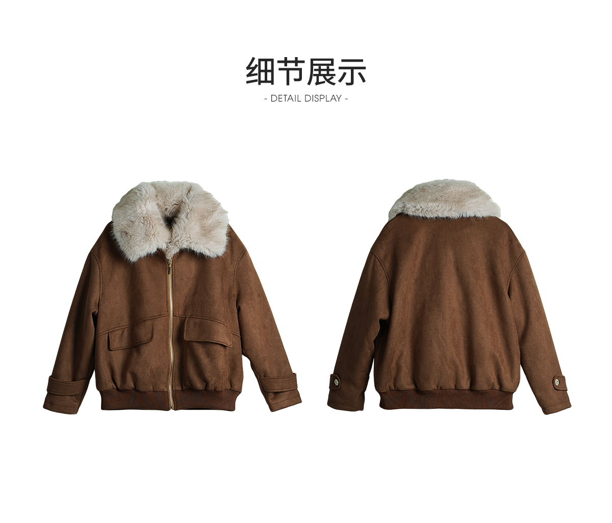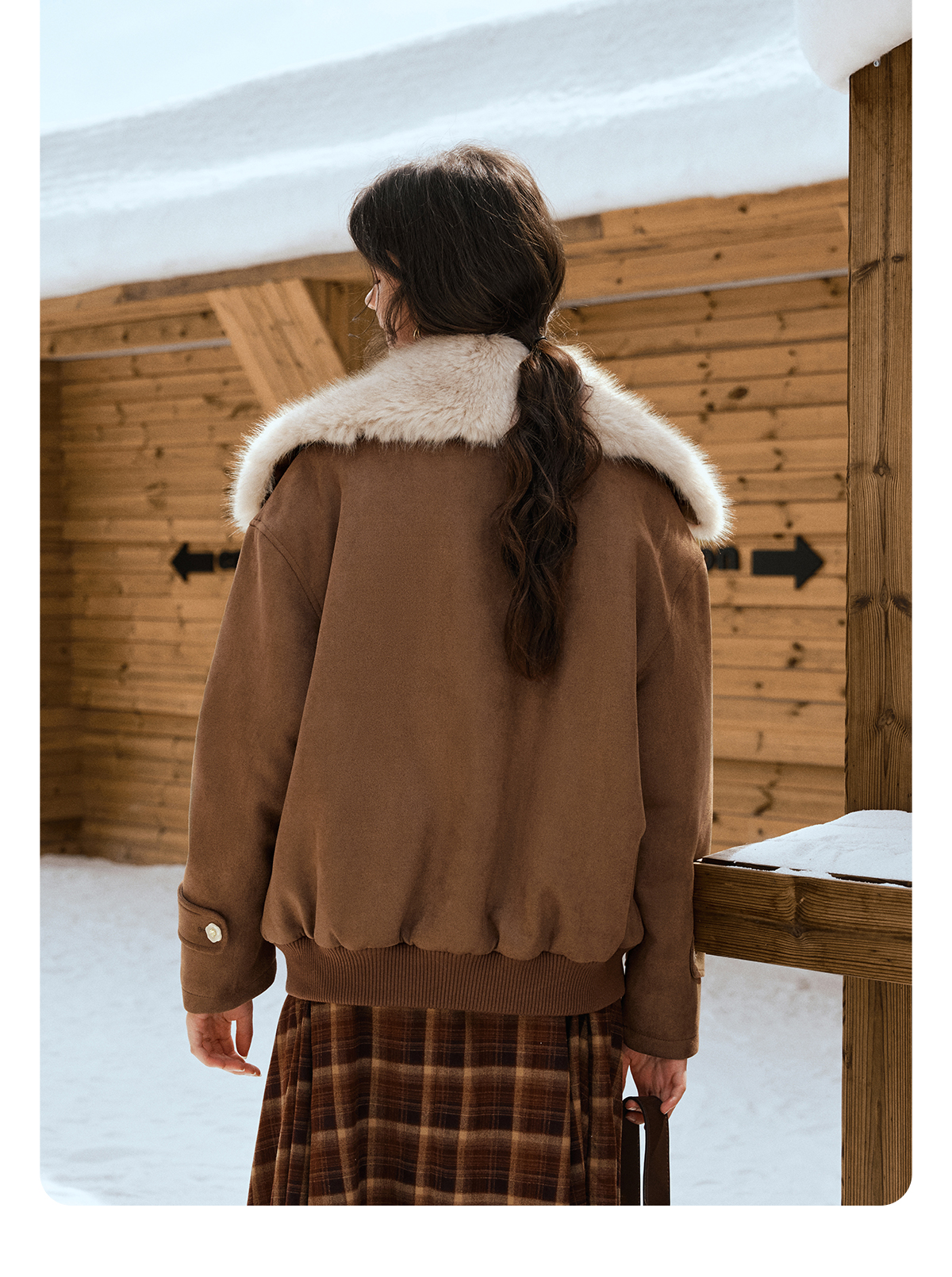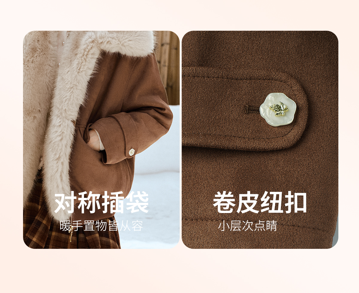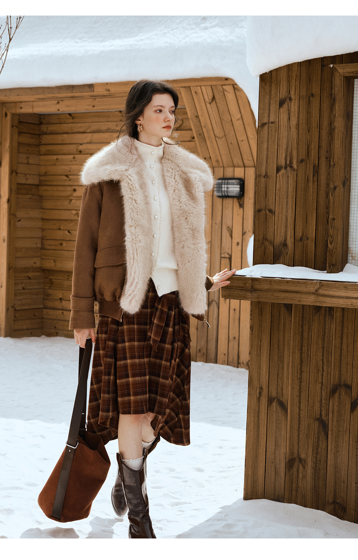 欧芮儿可拆卸大翻领毛领设计感皮草外套女冬季工装皮毛一体夹克