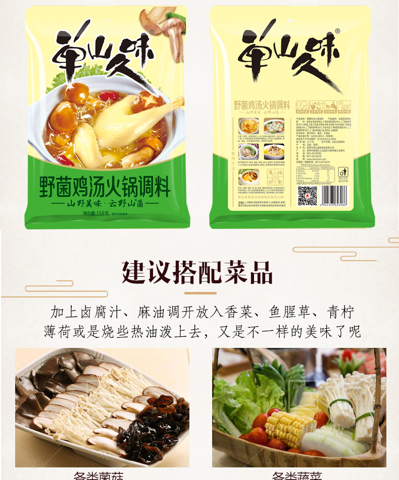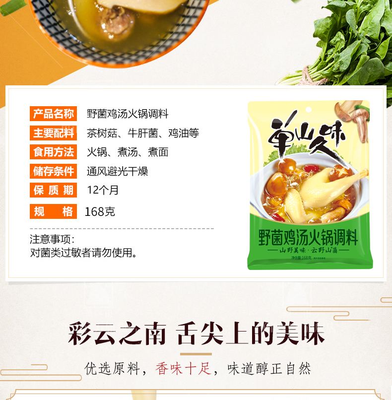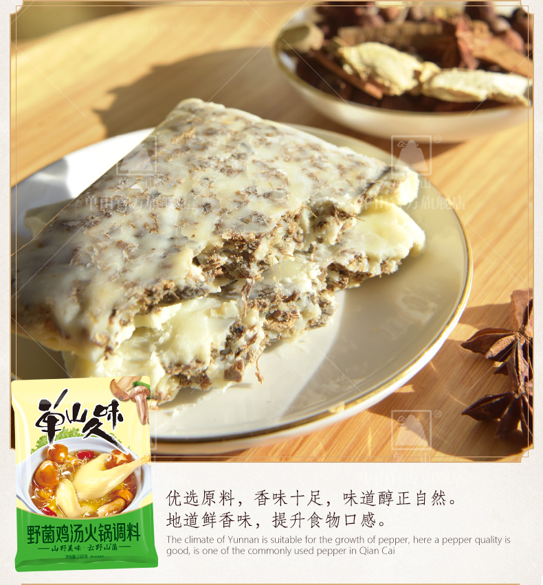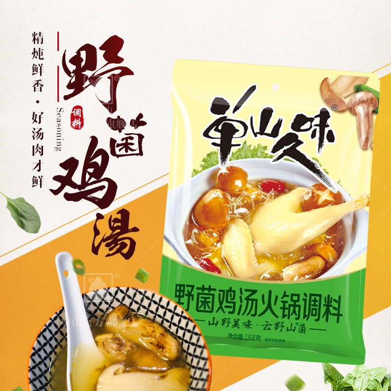 云南单山菌汤火锅底料 野生菌鸡汤三鲜清汤火锅店商用168g*40袋