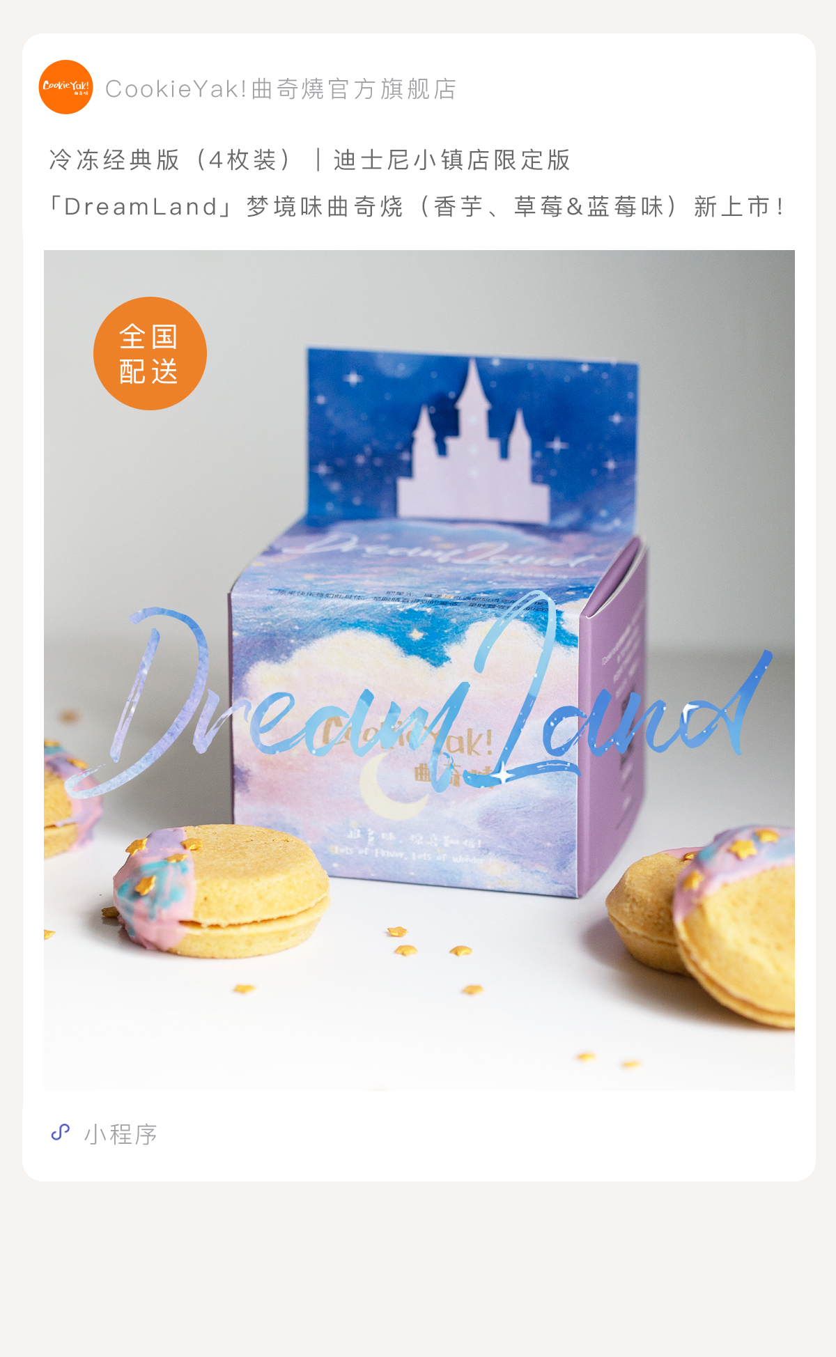 迪士尼小镇店限定版「DreamLand」梦境味(香芋、草莓&蓝莓味)|冷冻经典版曲奇烧(4枚/盒)