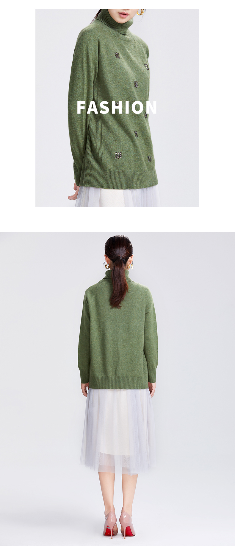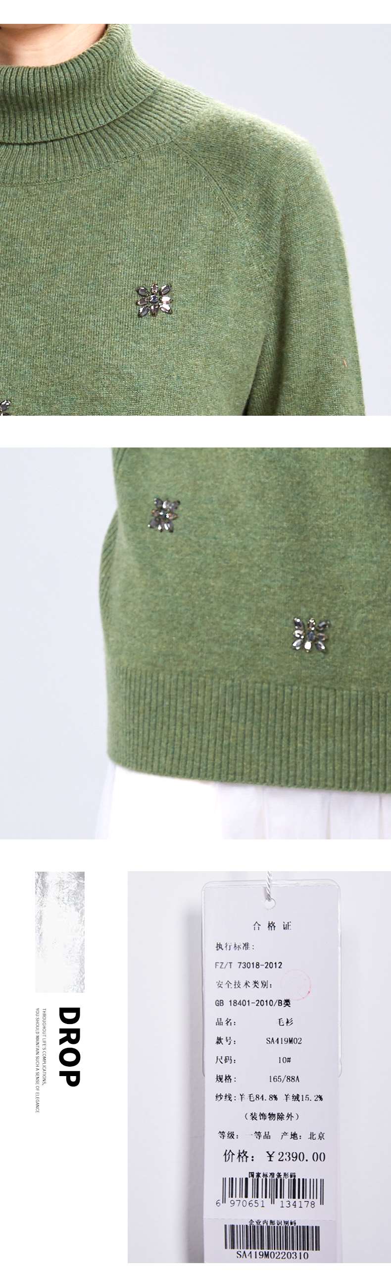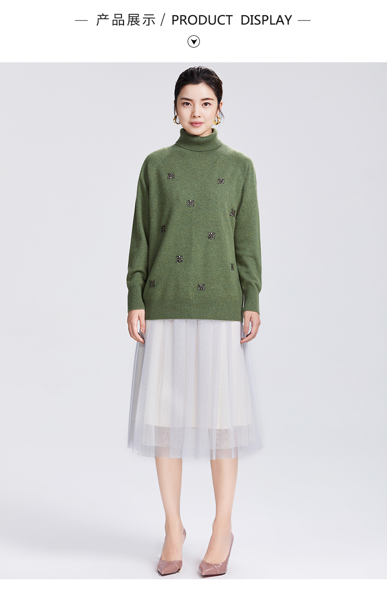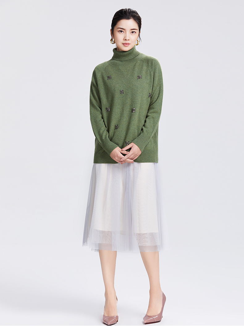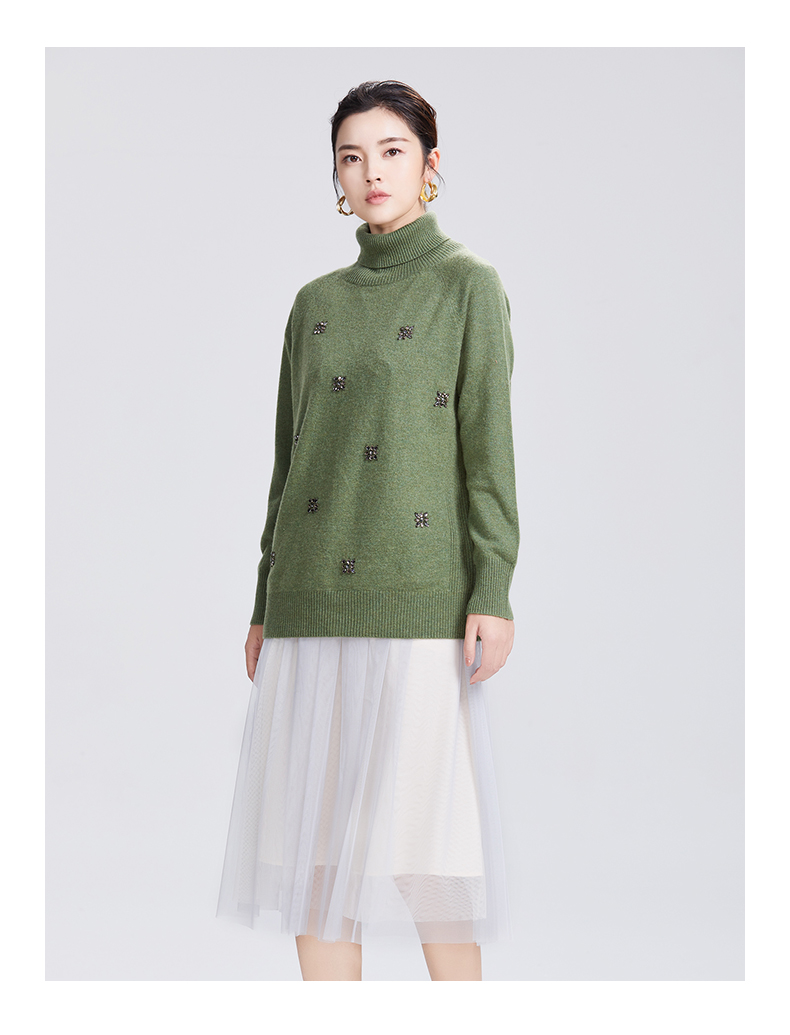 SAINT L’UCK/圣媛女装 新款亚克力花朵高领羊毛针织衫SA419M02