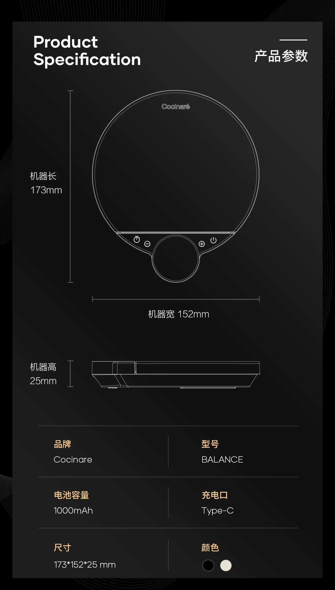 Cocinare BALANCE 精准手冲咖啡秤电子秤粉水比秤厨房秤竞赛秤