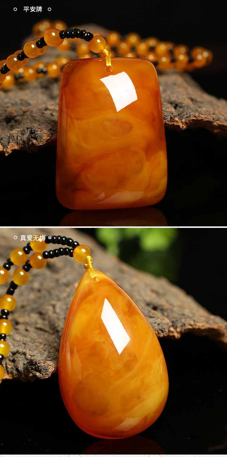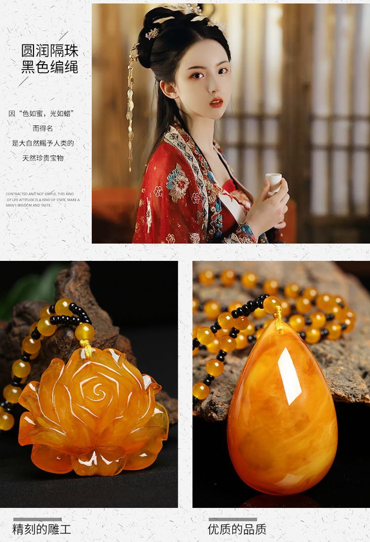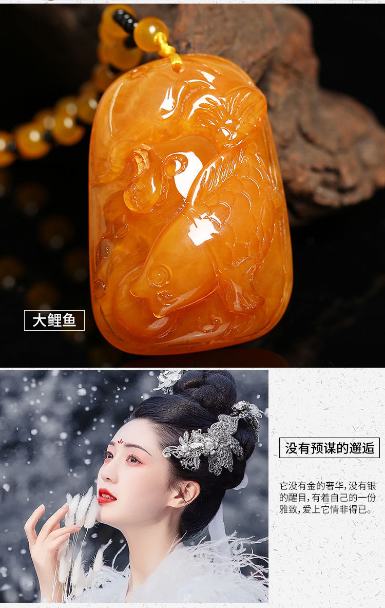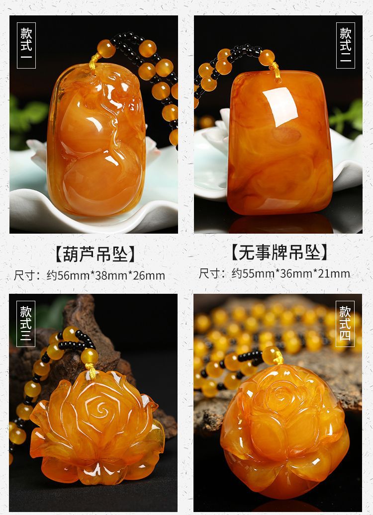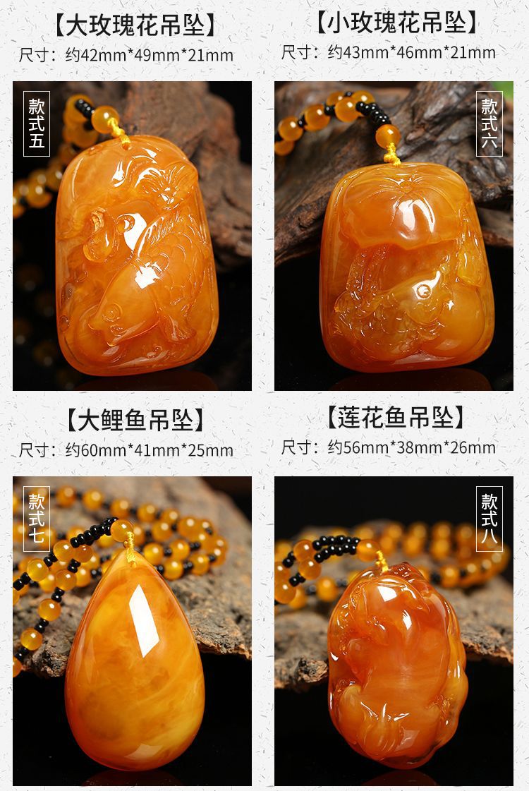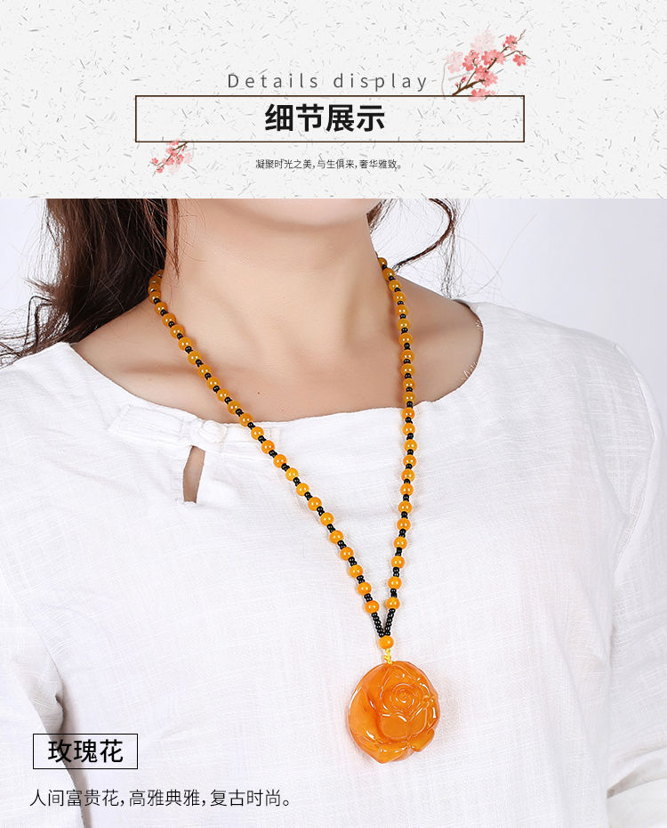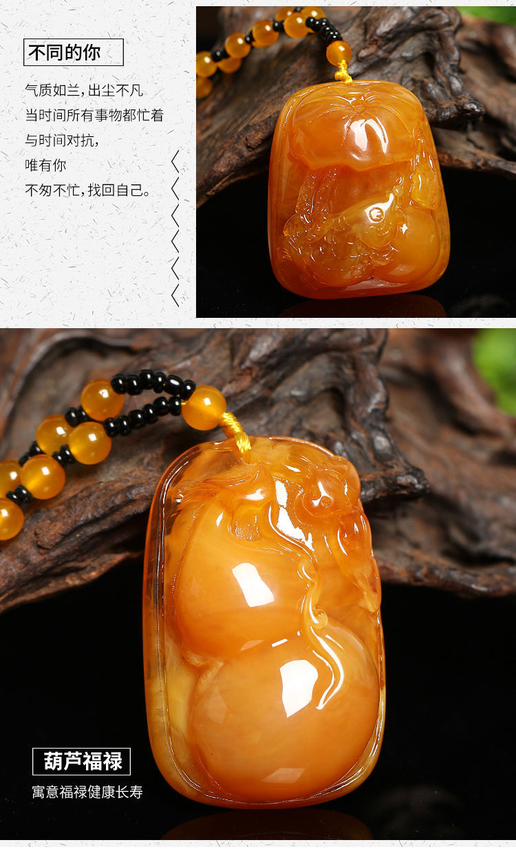 丁摩 老蜜蜡葫芦吊坠长款琥珀项链男女款莲花鱼鲤鱼毛衣链民族风挂坠饰5ZF-74364