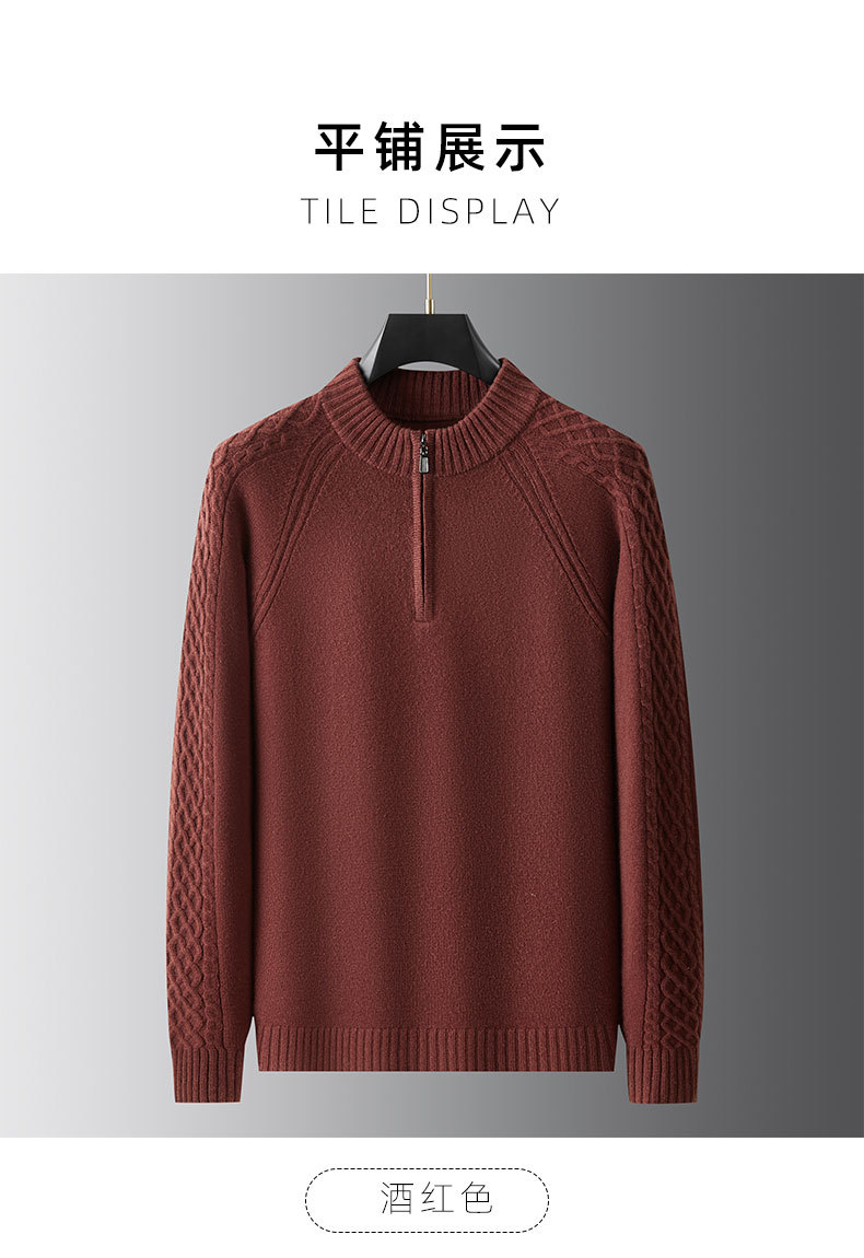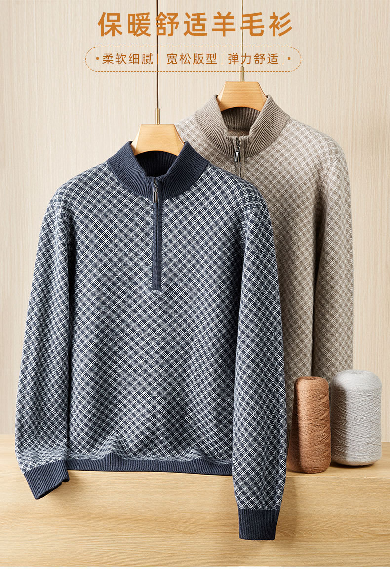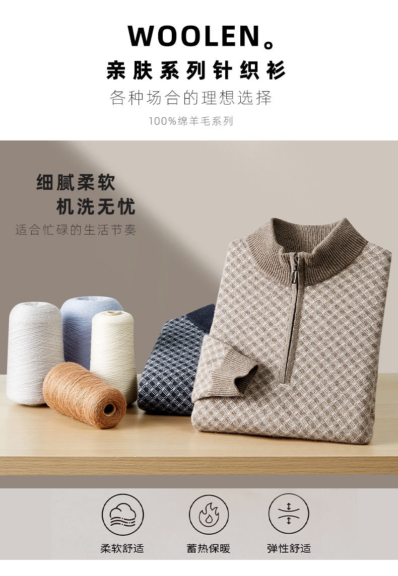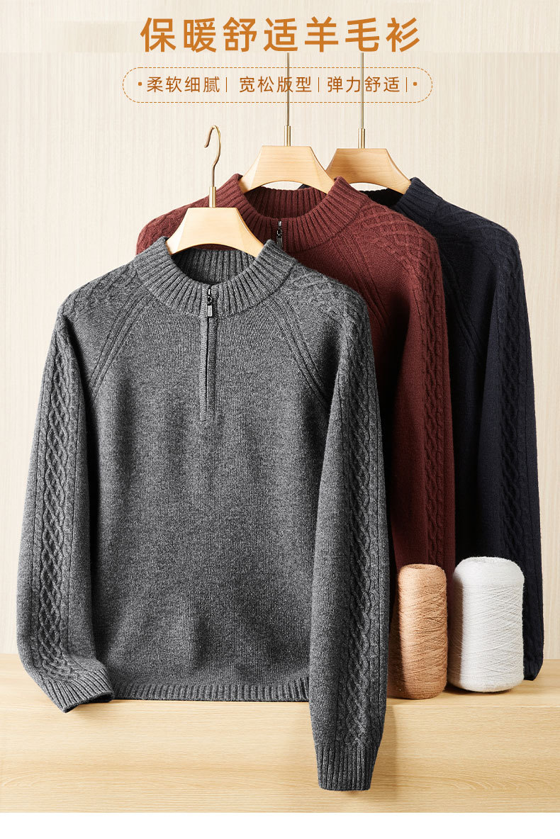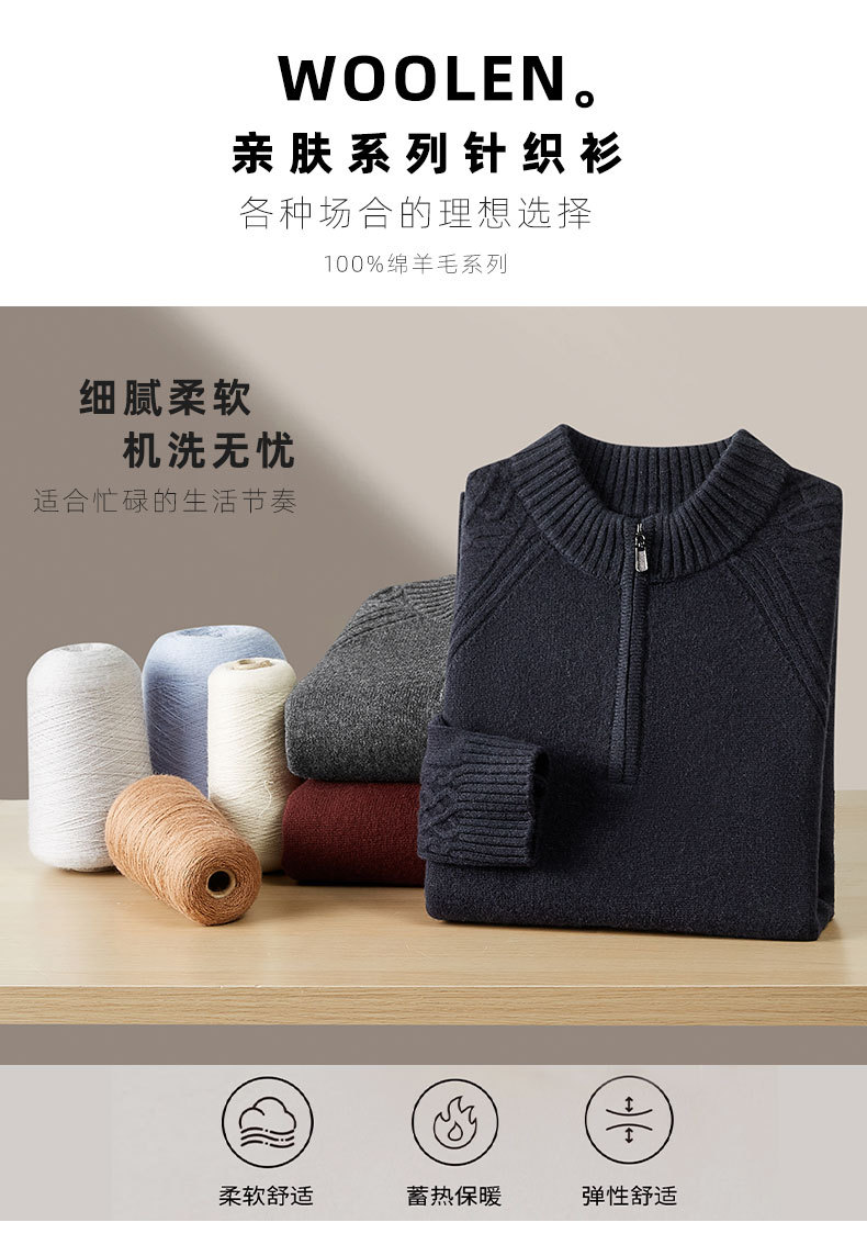 【100%绵羊毛】【DWP】大依优型大码男装针织羊毛衫秋季新款男士加肥加大码时尚休闲圆领半拉链毛衣男