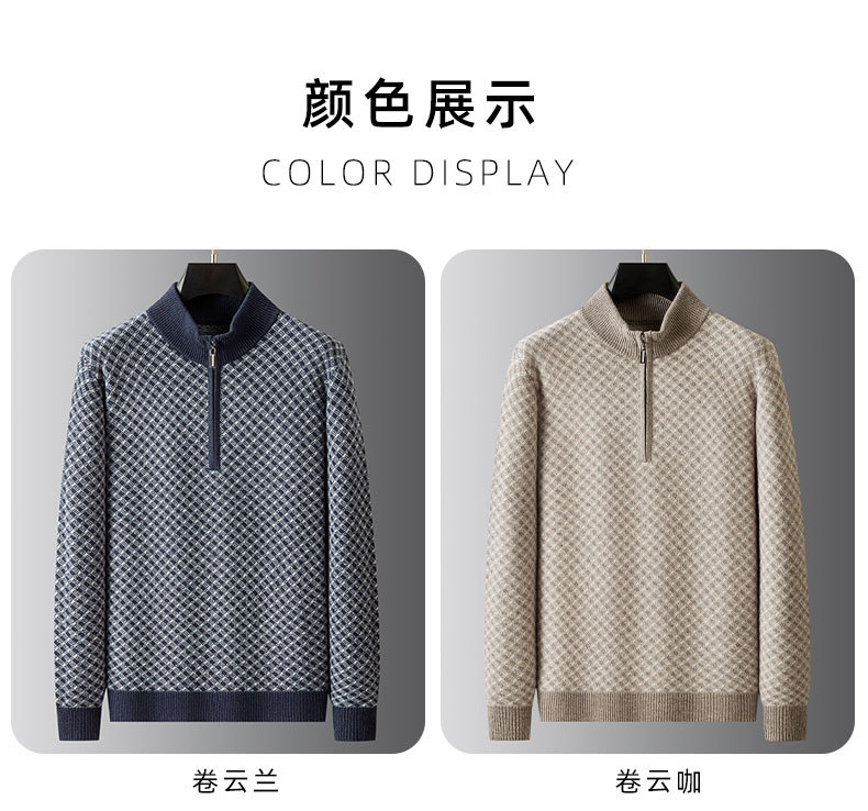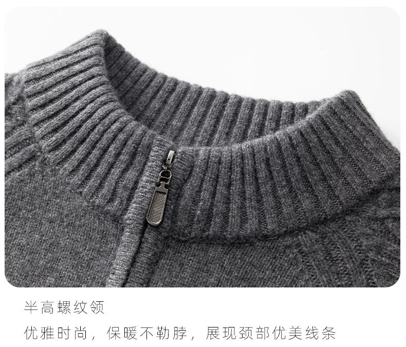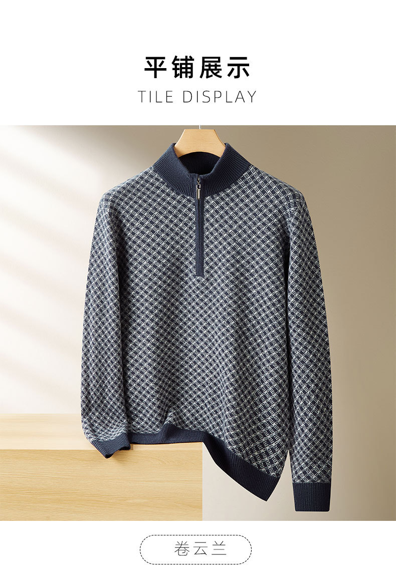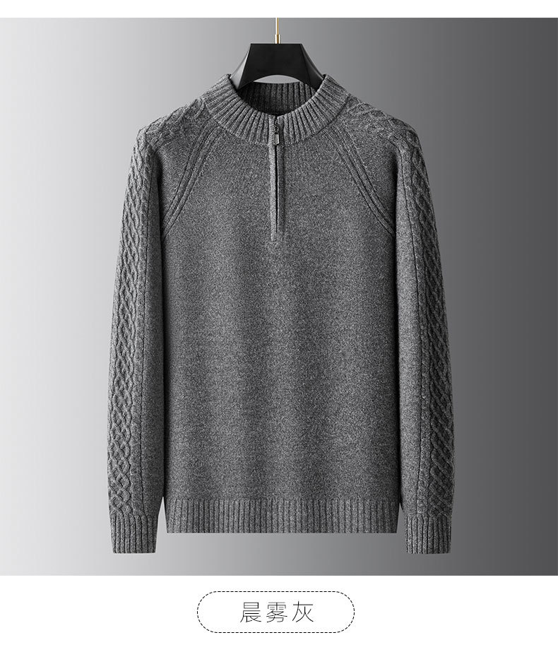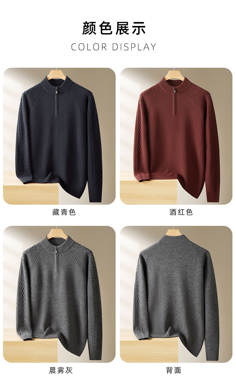 【100%绵羊毛】【DWP】大依优型大码男装针织羊毛衫秋季新款男士加肥加大码时尚休闲圆领半拉链毛衣男