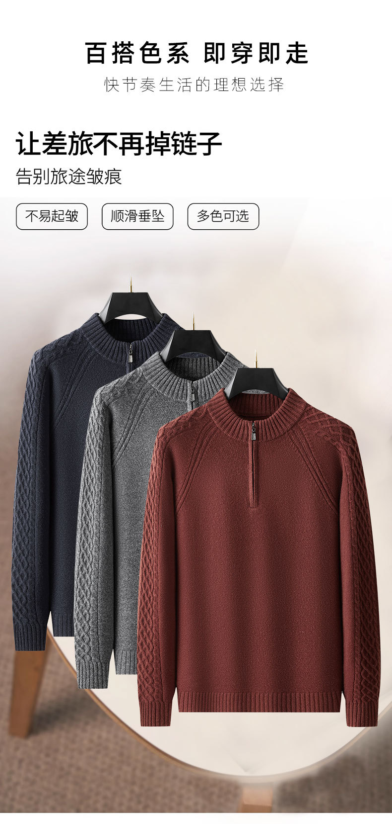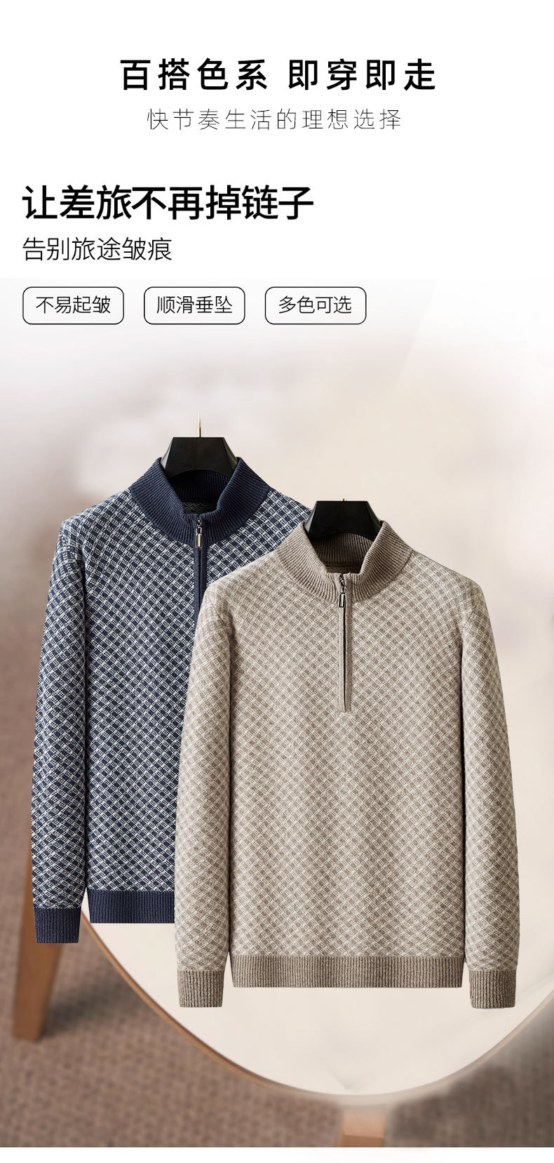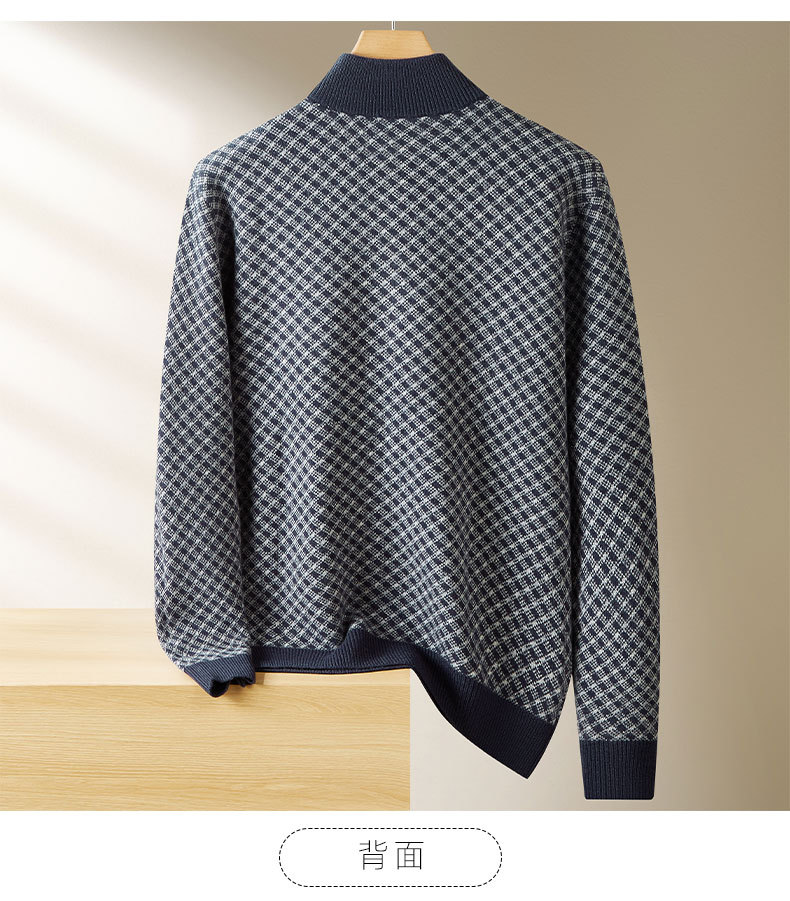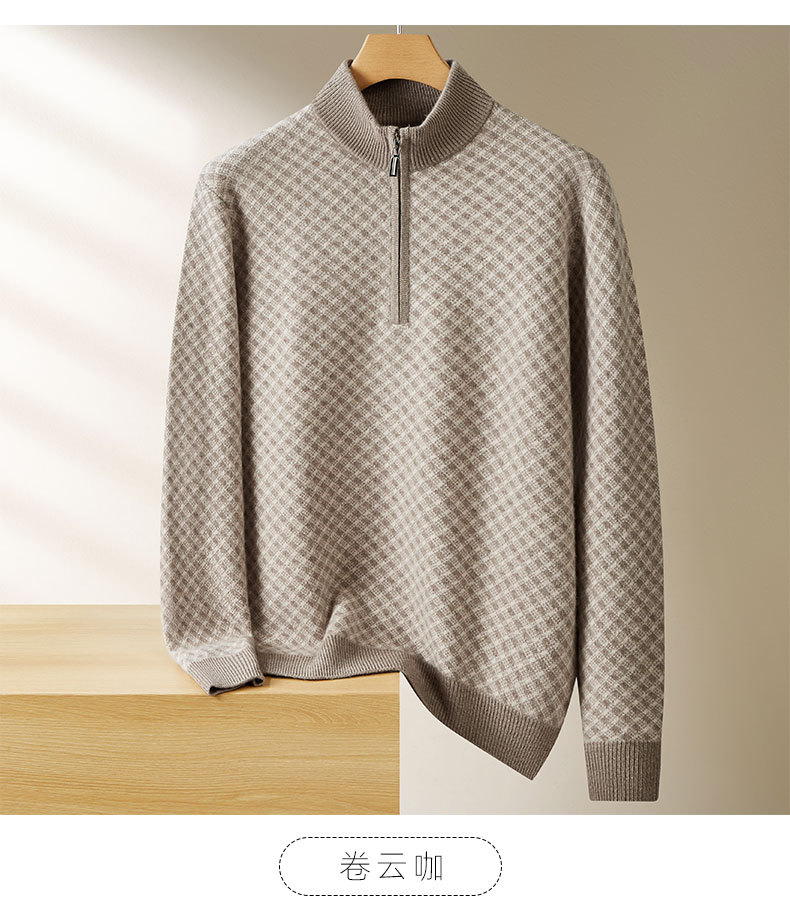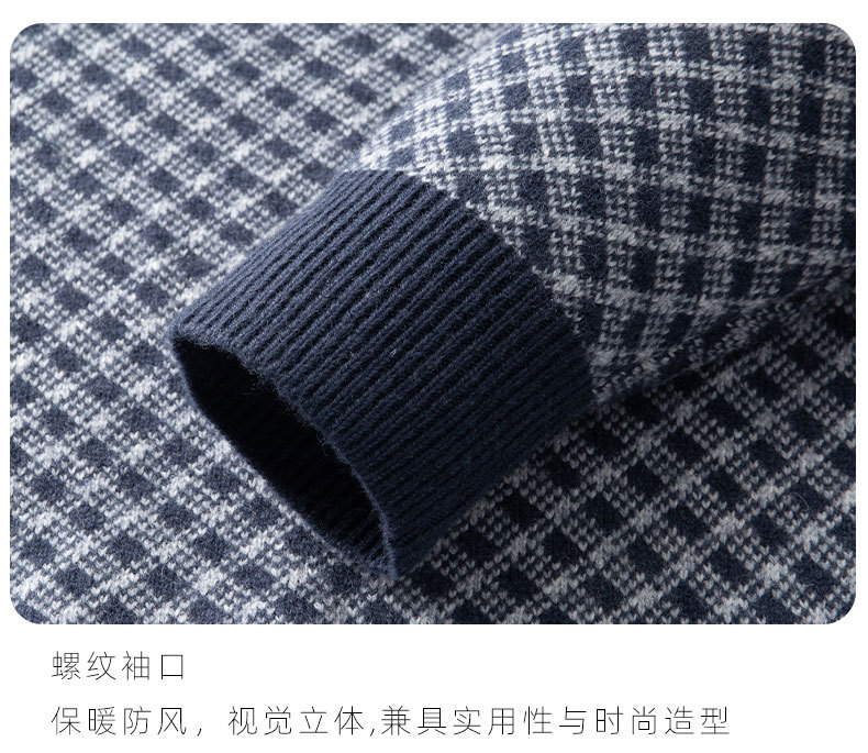 【100%绵羊毛】【DWP】大依优型大码男装针织羊毛衫秋季新款男士加肥加大码时尚休闲圆领半拉链毛衣男