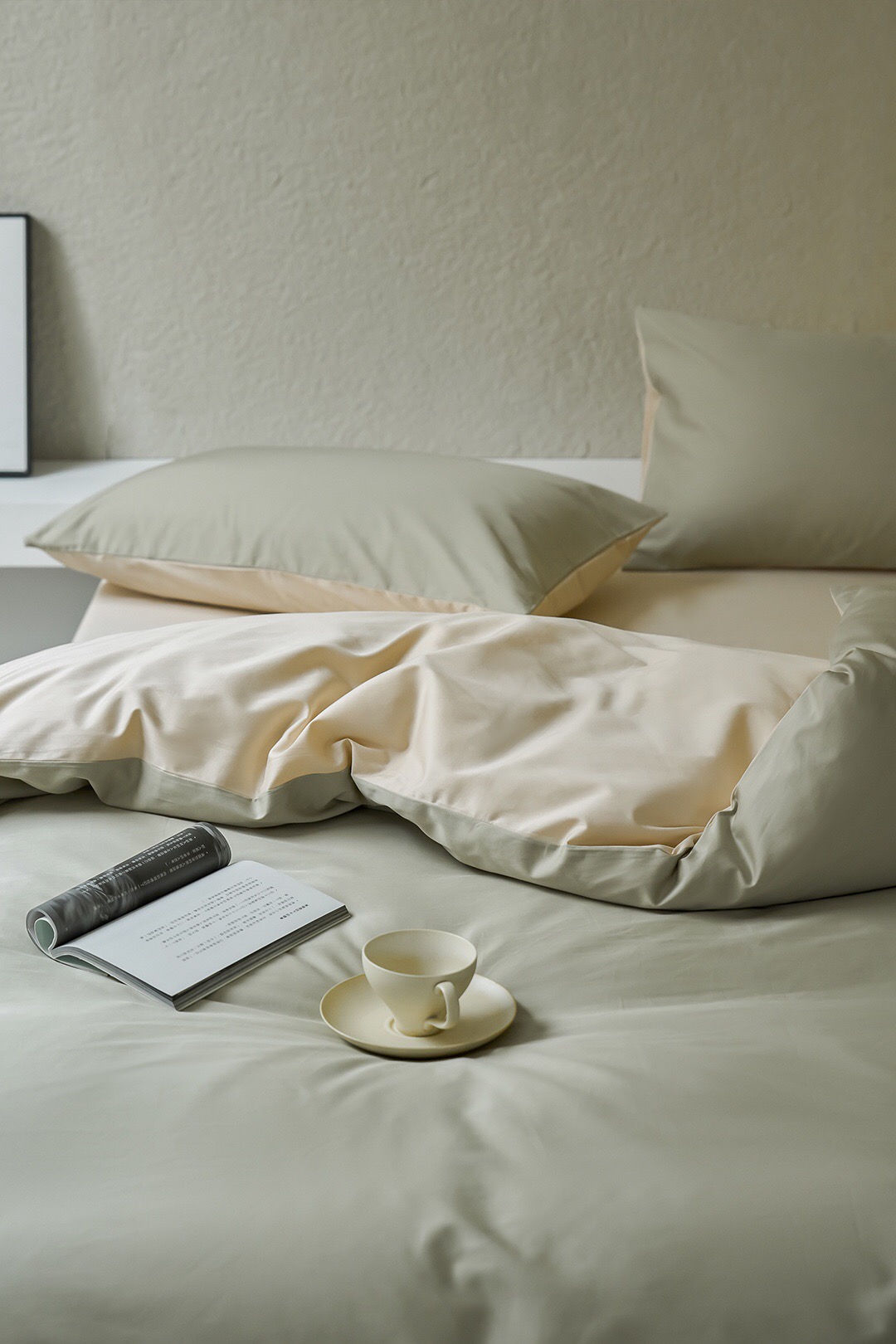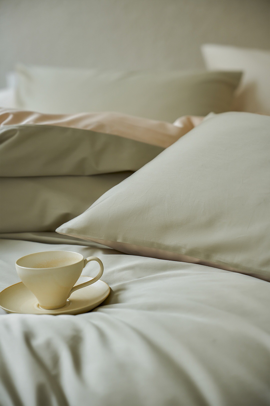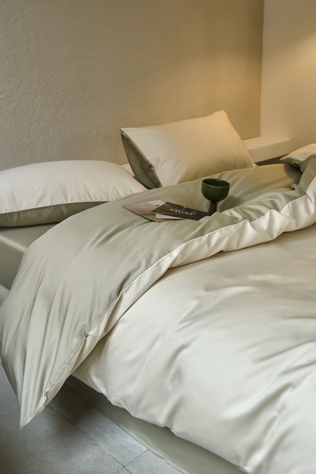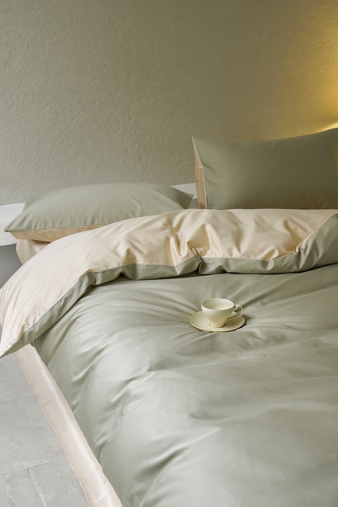 3色可选,棕榈灰,森绿,奶昔白。雅致,春日的清爽色。床单、床笠款供选。