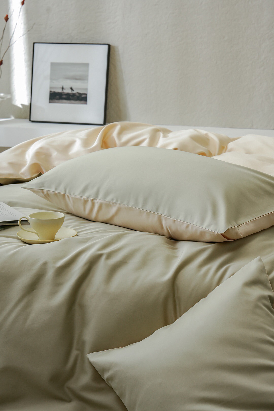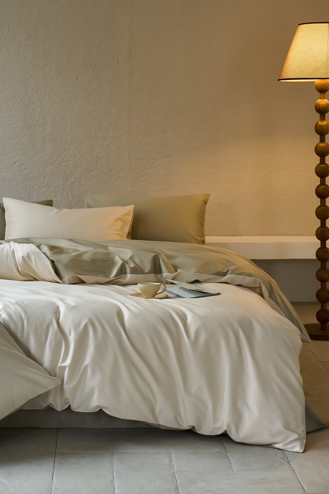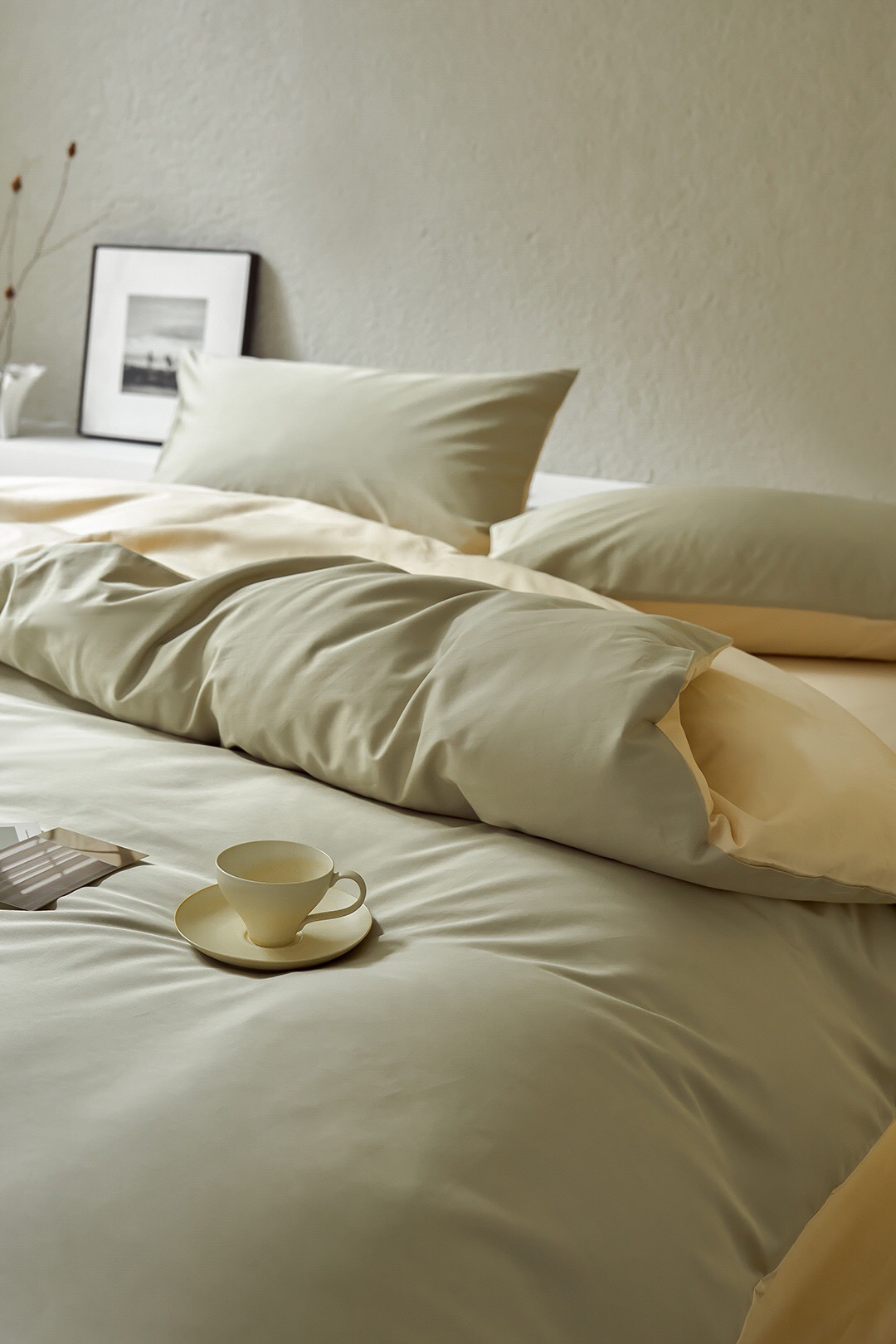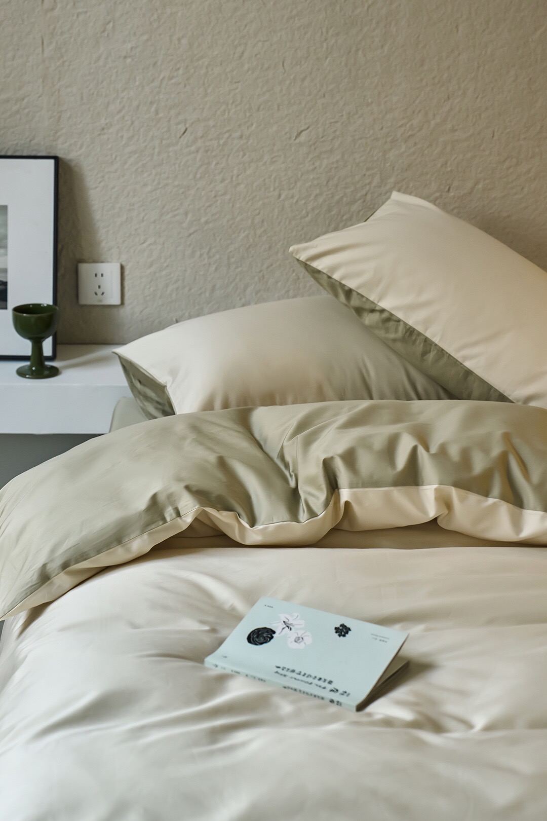 3色可选,棕榈灰,森绿,奶昔白。雅致,春日的清爽色。床单、床笠款供选。
