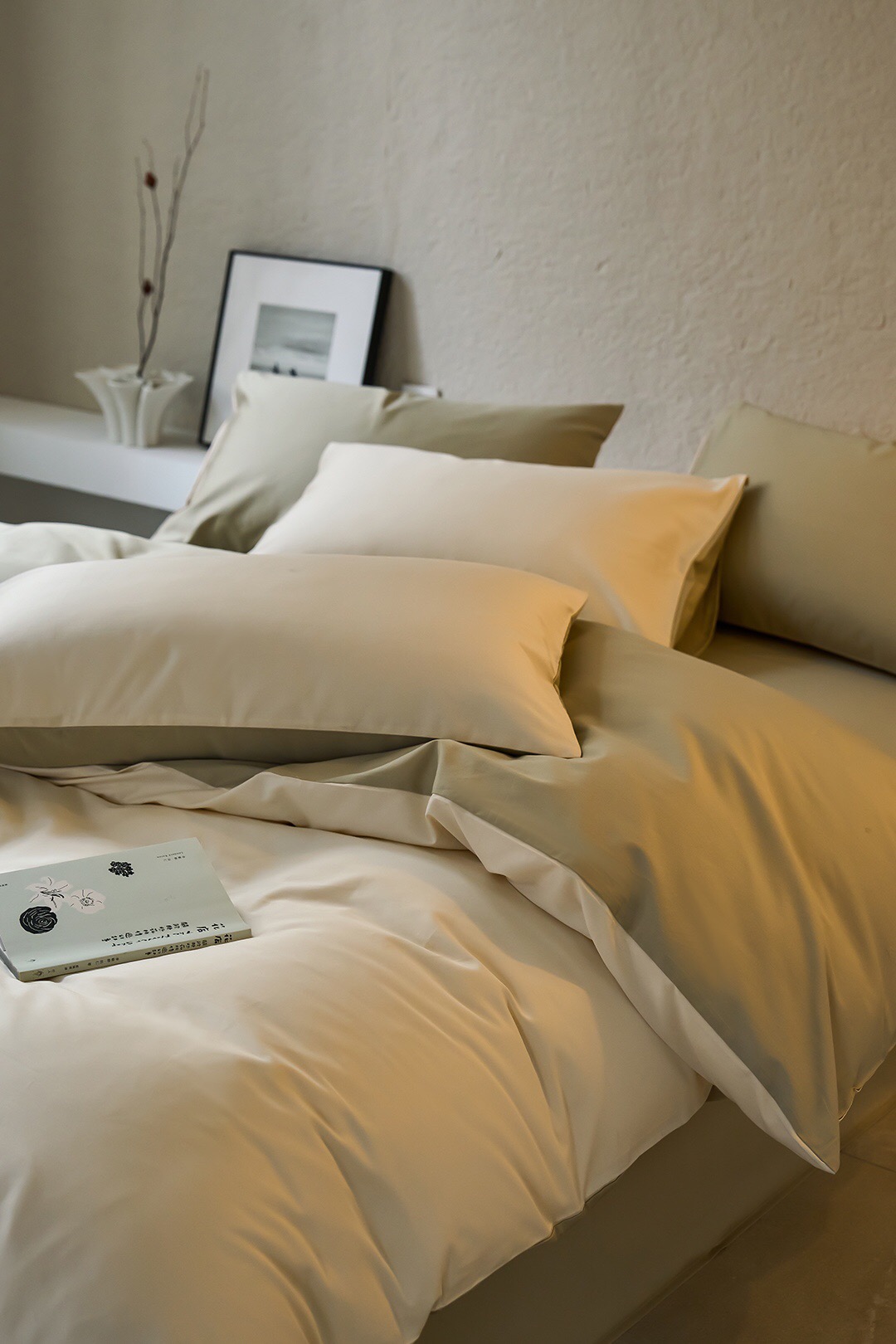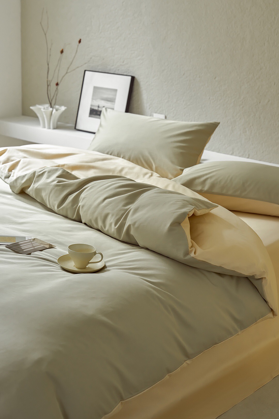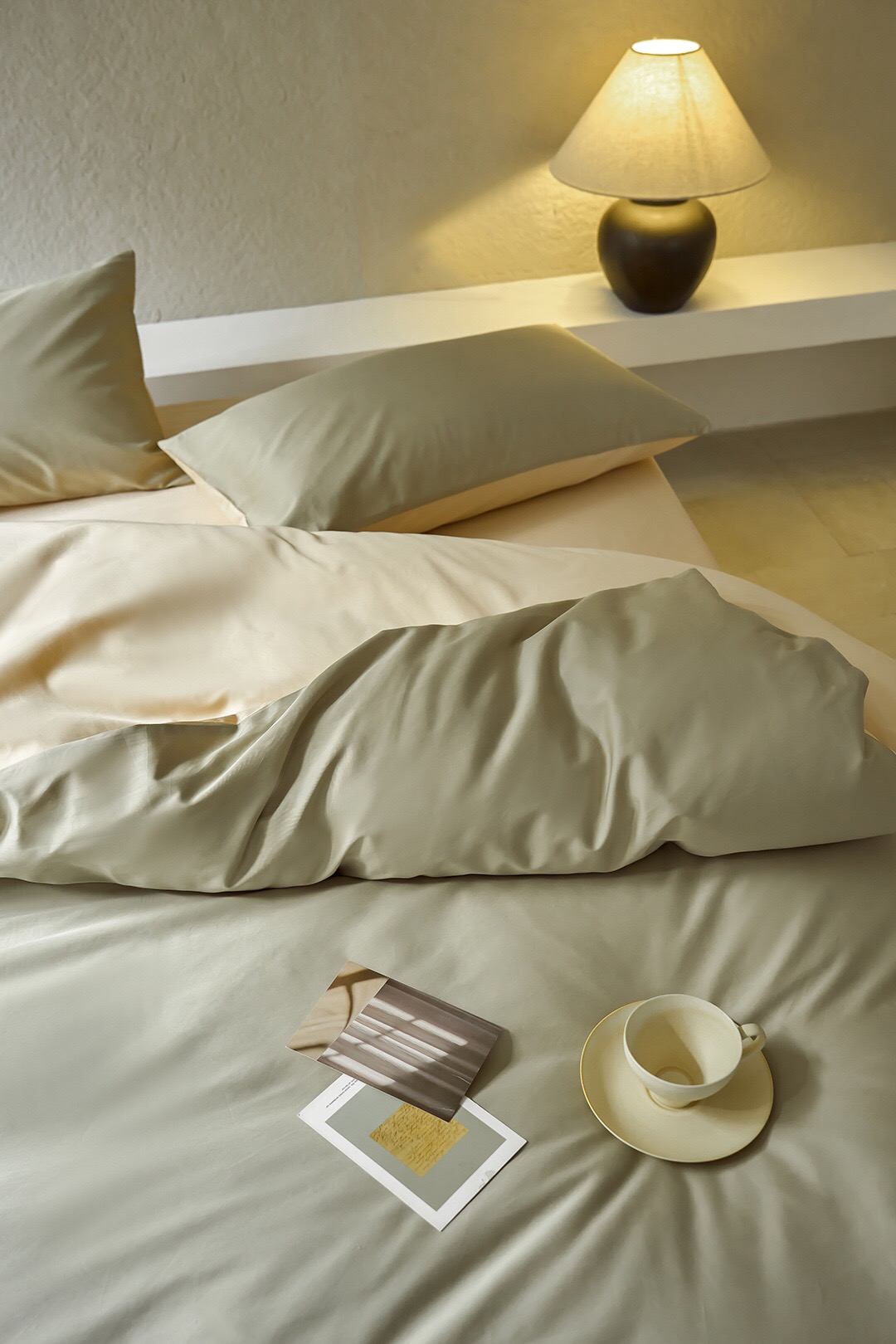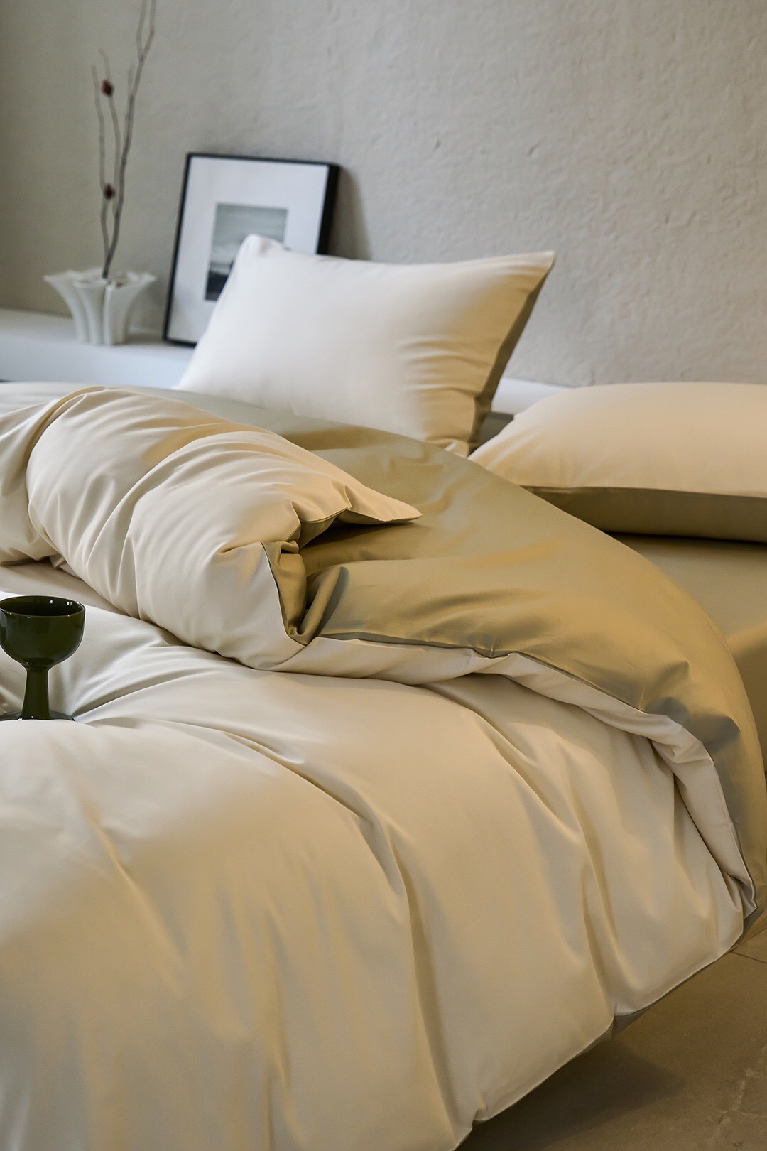 3色可选,棕榈灰,森绿,奶昔白。雅致,春日的清爽色。床单、床笠款供选。