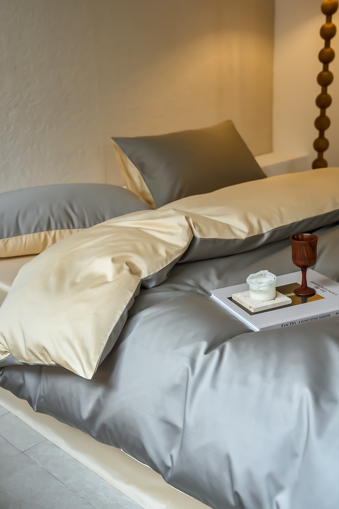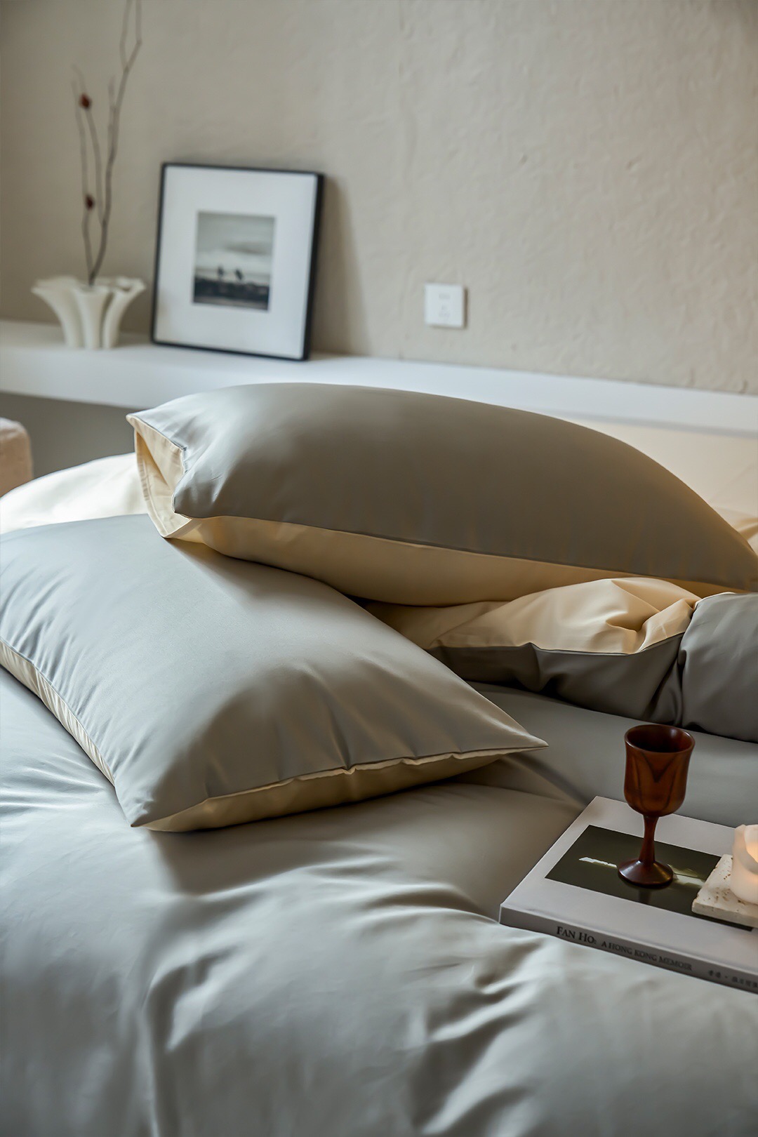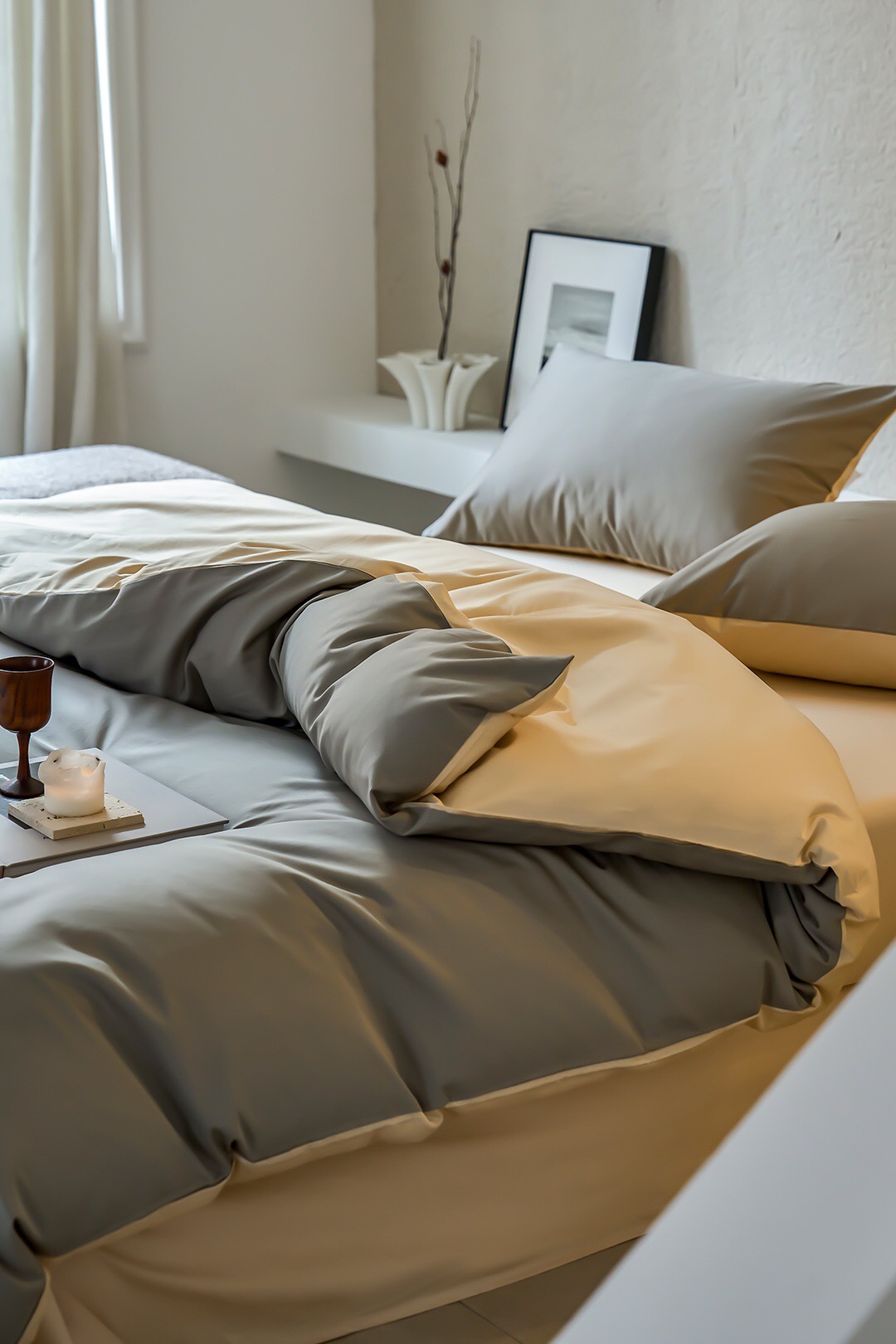 双拼撞色设计,色泽鲜明,面料本身悬垂感很强,有着如真丝般的光泽,让卧室更显高级感。