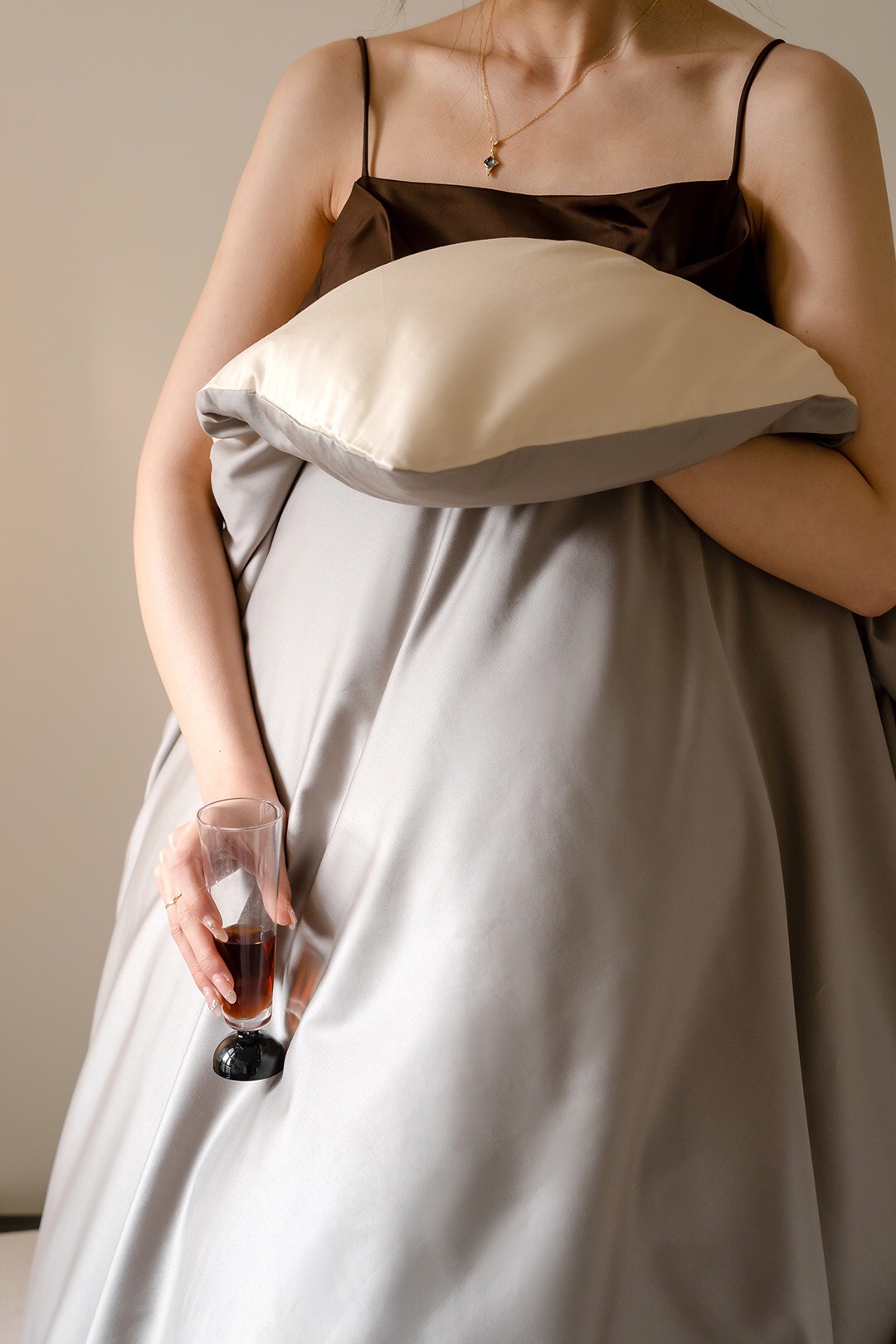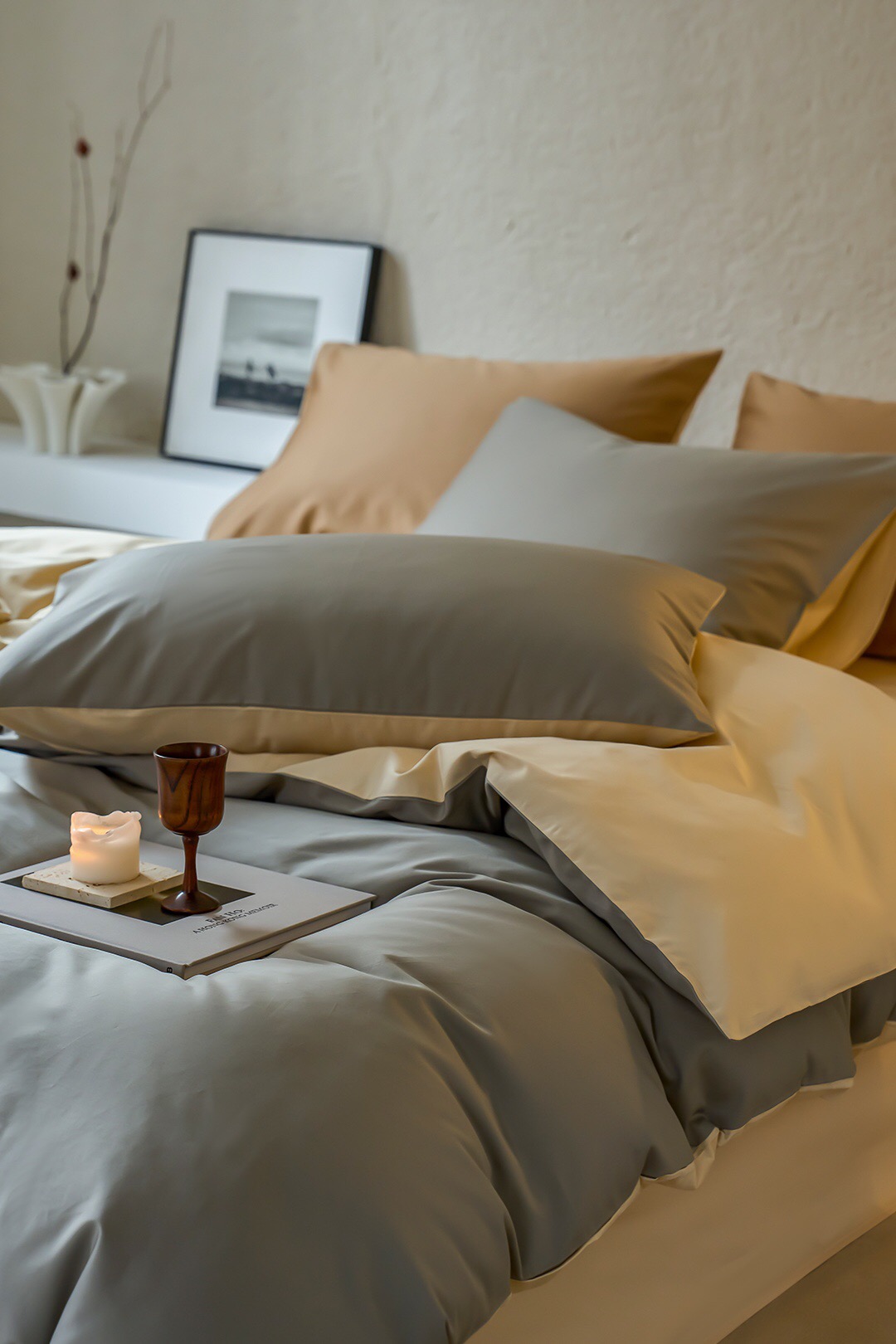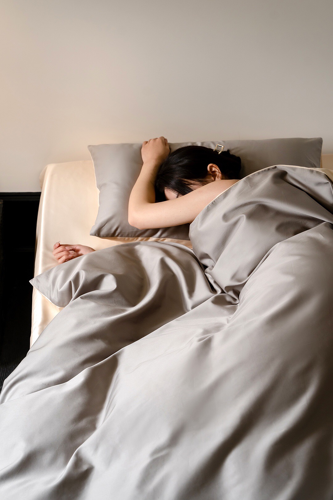 双拼撞色设计,色泽鲜明,面料本身悬垂感很强,有着如真丝般的光泽,让卧室更显高级感。