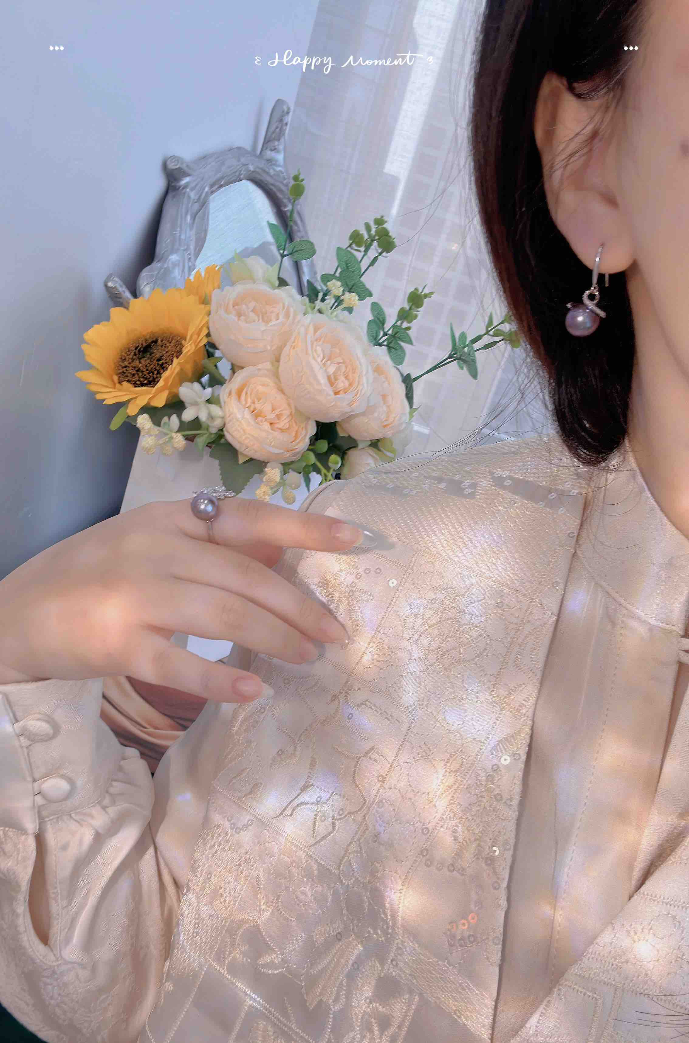👇戒指好显气质,跟耳钉搭配呼应起来。