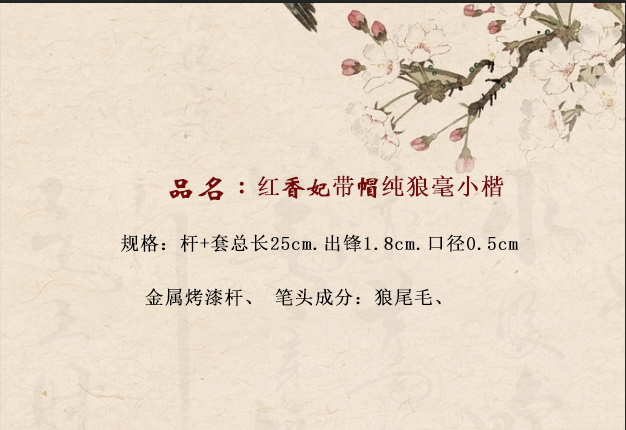 【红香妃带帽纯狼毫小楷】 不开叉、韧性强、适合灵飞小楷、抄经、国画勾线等