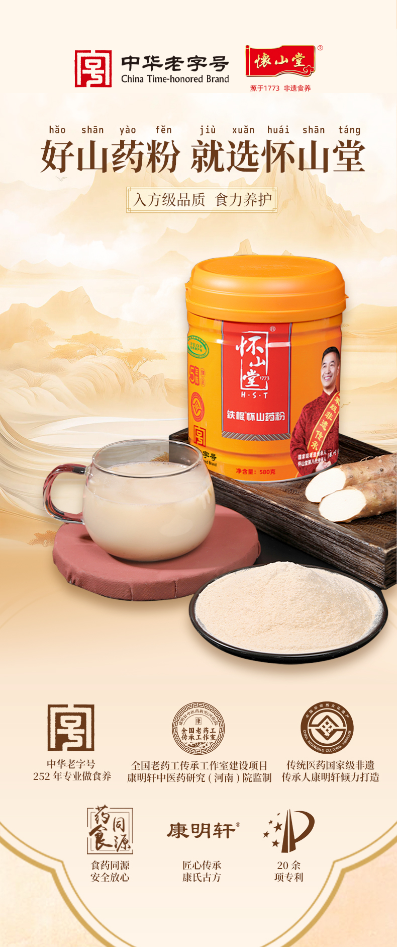 怀山堂 五年陈铁棍山药粉580g温县垆土铁棍怀山药熟粉中华老字号非遗山药粉呵护脾胃(年卡12罐)