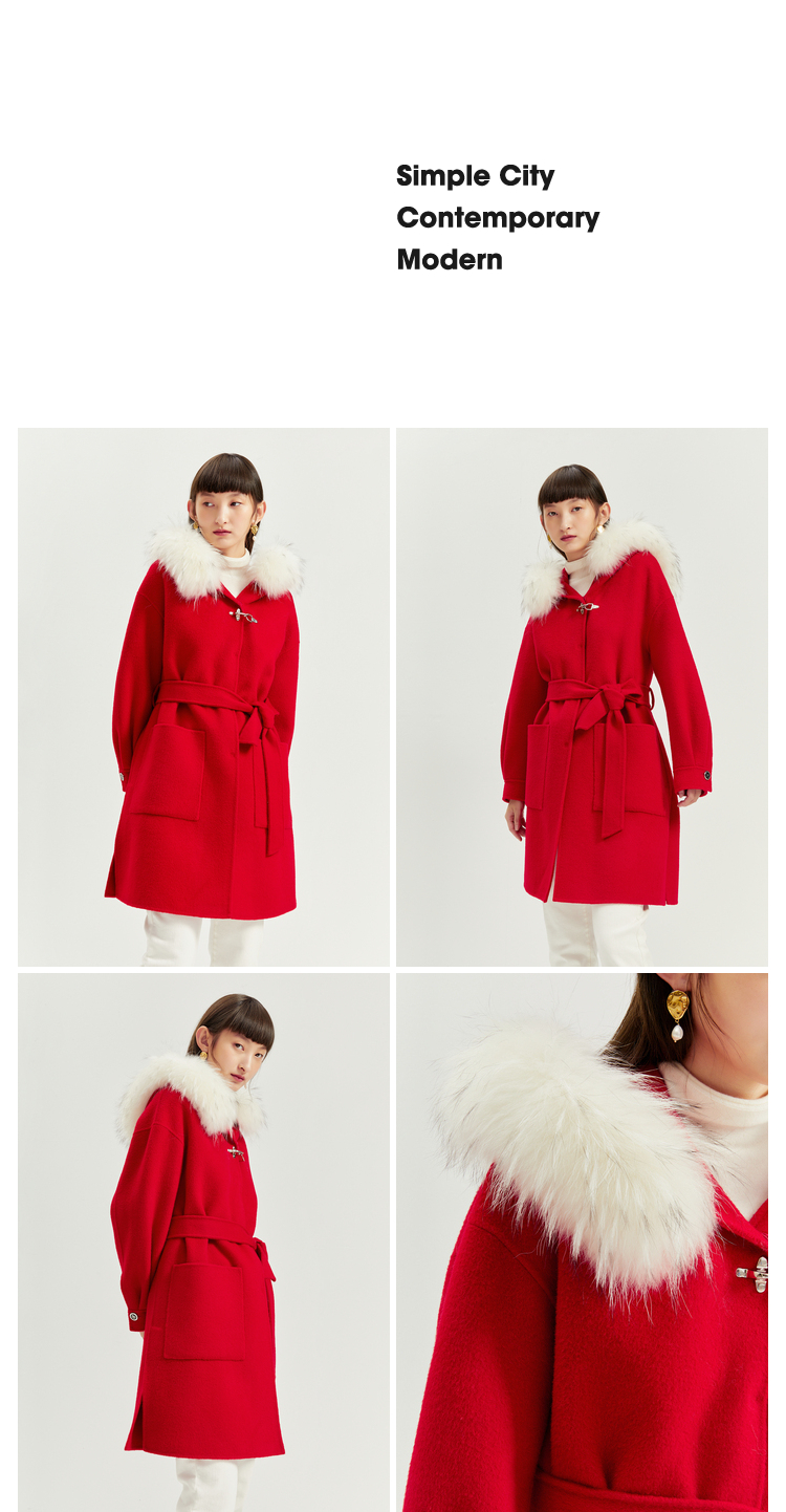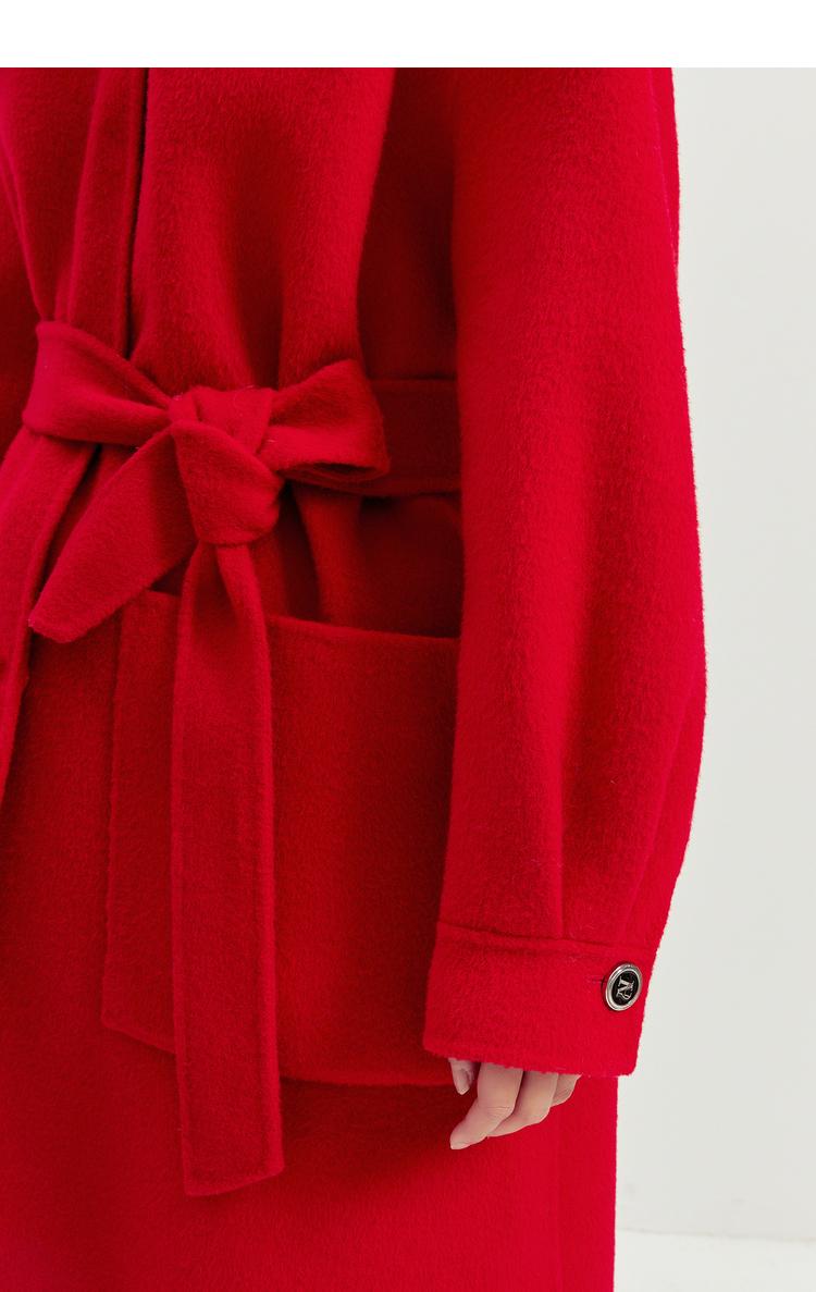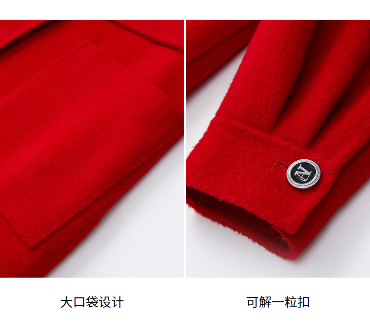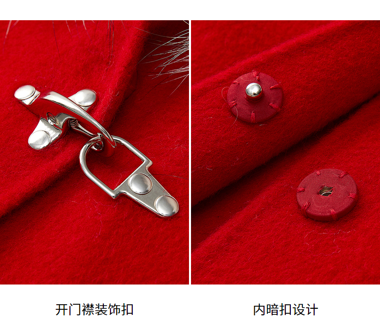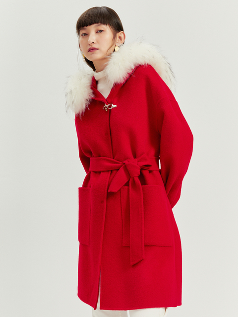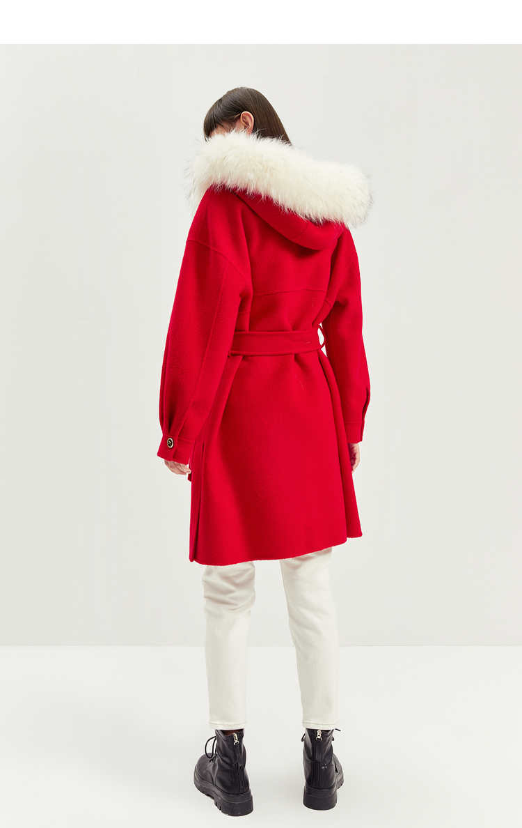 NEELLY纳俪冬季貉子大毛领连帽双面呢大衣女收腰系带外套保暖百搭N21121N01237