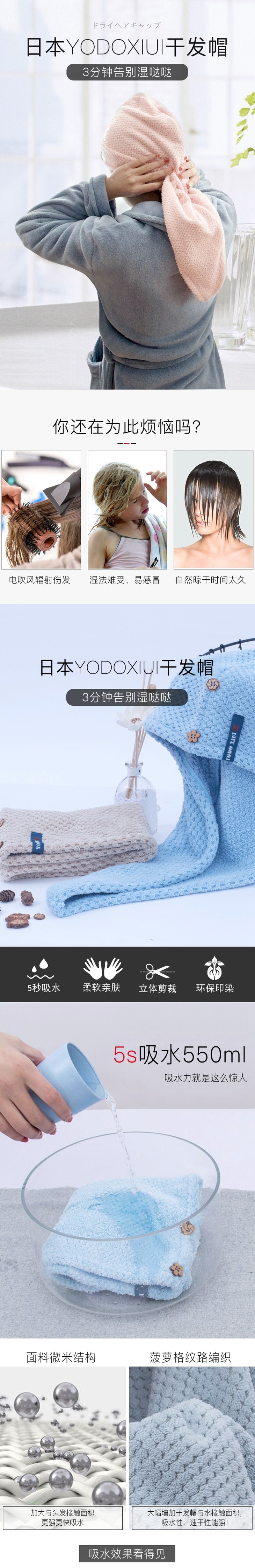 【买2送1】日本YODO XIUI干发帽【3分钟头发就干了】超强吸水 不滴水 不伤发丝 不掉毛 长发也能用