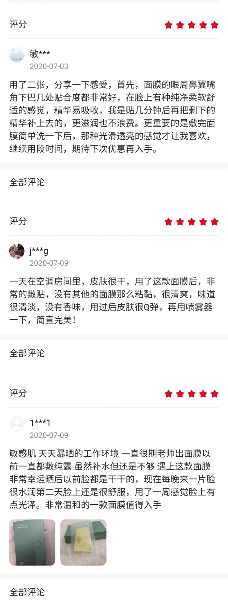 像是敷了一瓶最温和的修复水,一点儿刺激感都没有,上脸是被温和包裹的安心感,以及膜布带来的微微提拉感,敷完是肉眼可见的水润细嫩,一天的疲惫都被温柔而无声地抚平~