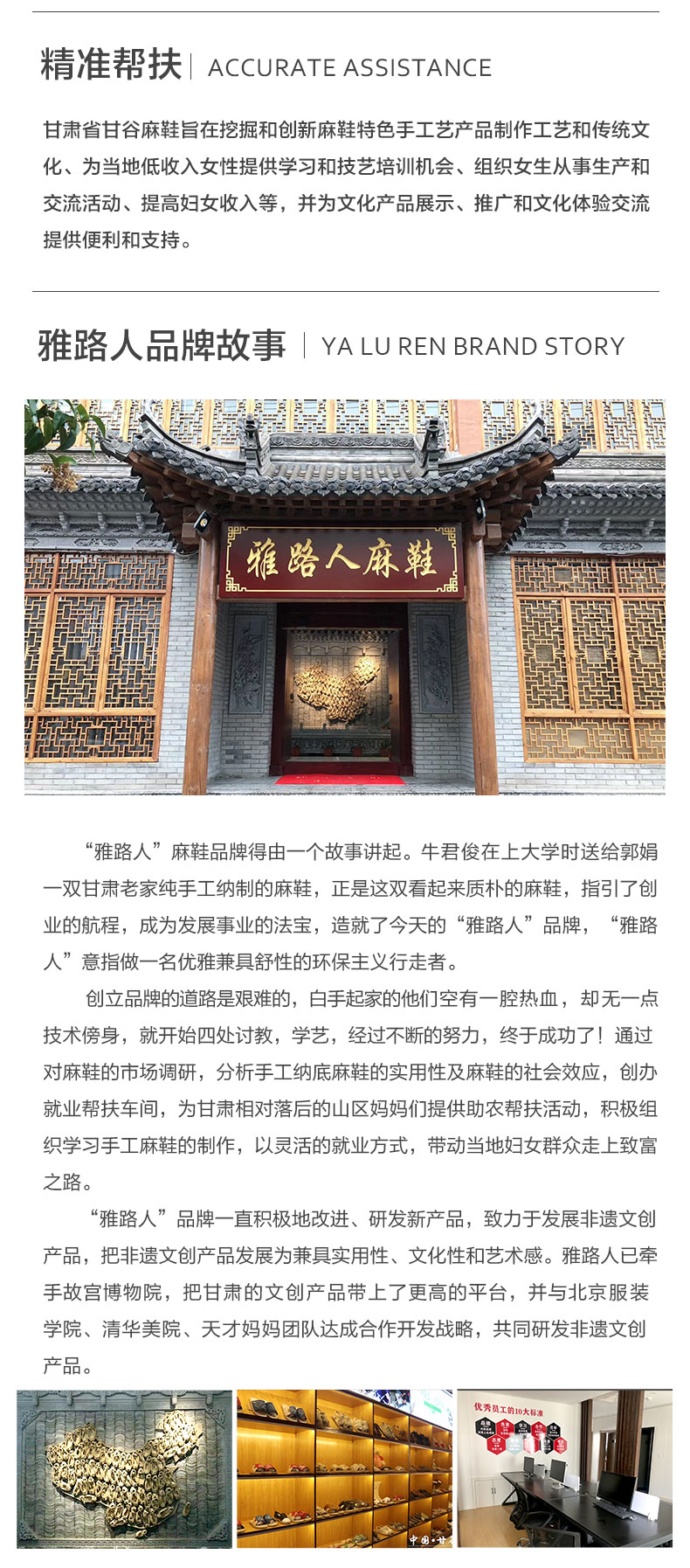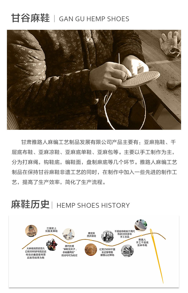 - 甘肃雅路人麻编工艺制品发展有限公司有赞平台官方直营旗舰店,主营鞋类、包、其他麻编工艺品等