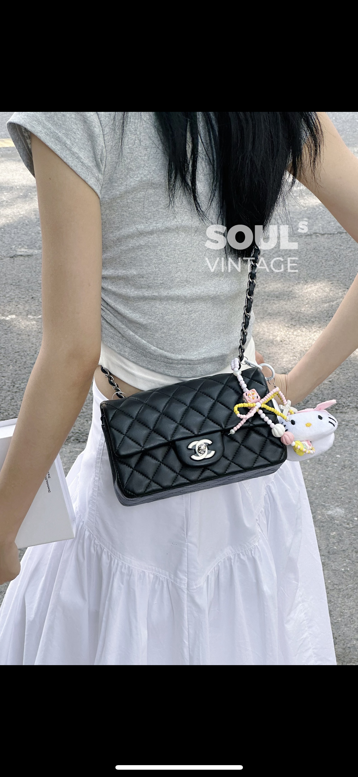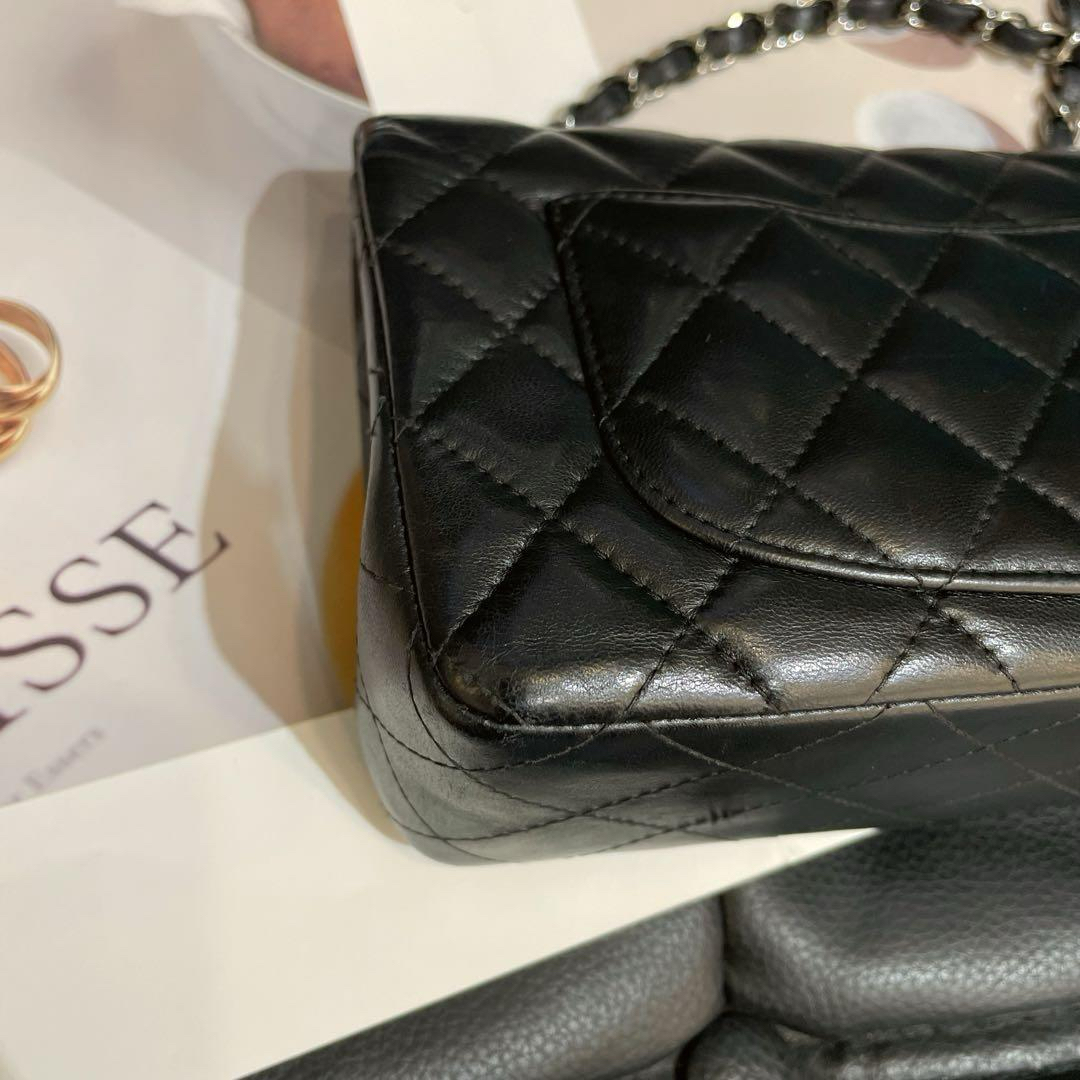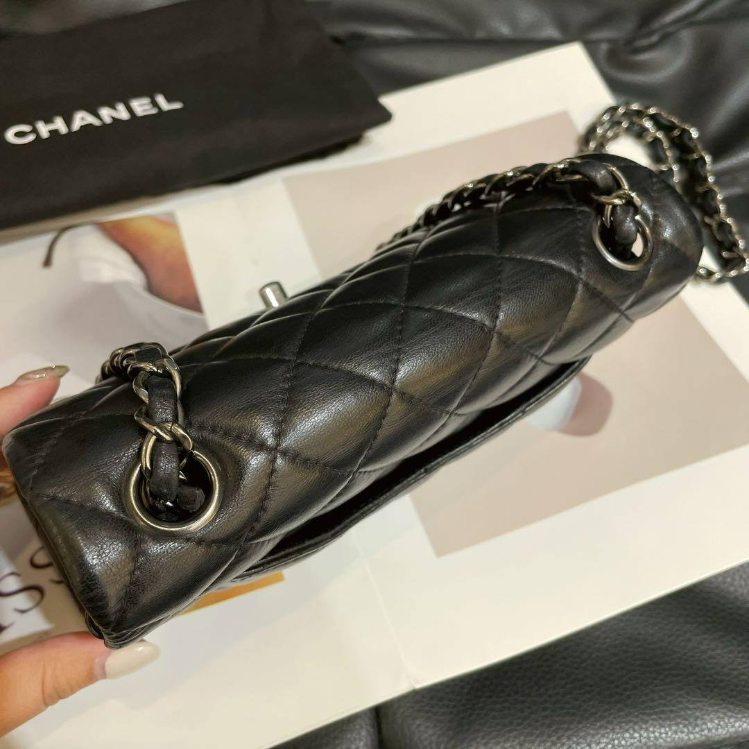 【商品详情】正品二手 Chanel CF 黑银 羊皮 大mini 链条包😍95新 19x11 镭射23开 配件:防尘袋。包面底部有正常使用纹路 边角轻微磨损。精致款小包 流通性好