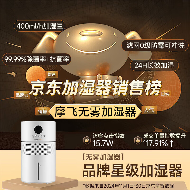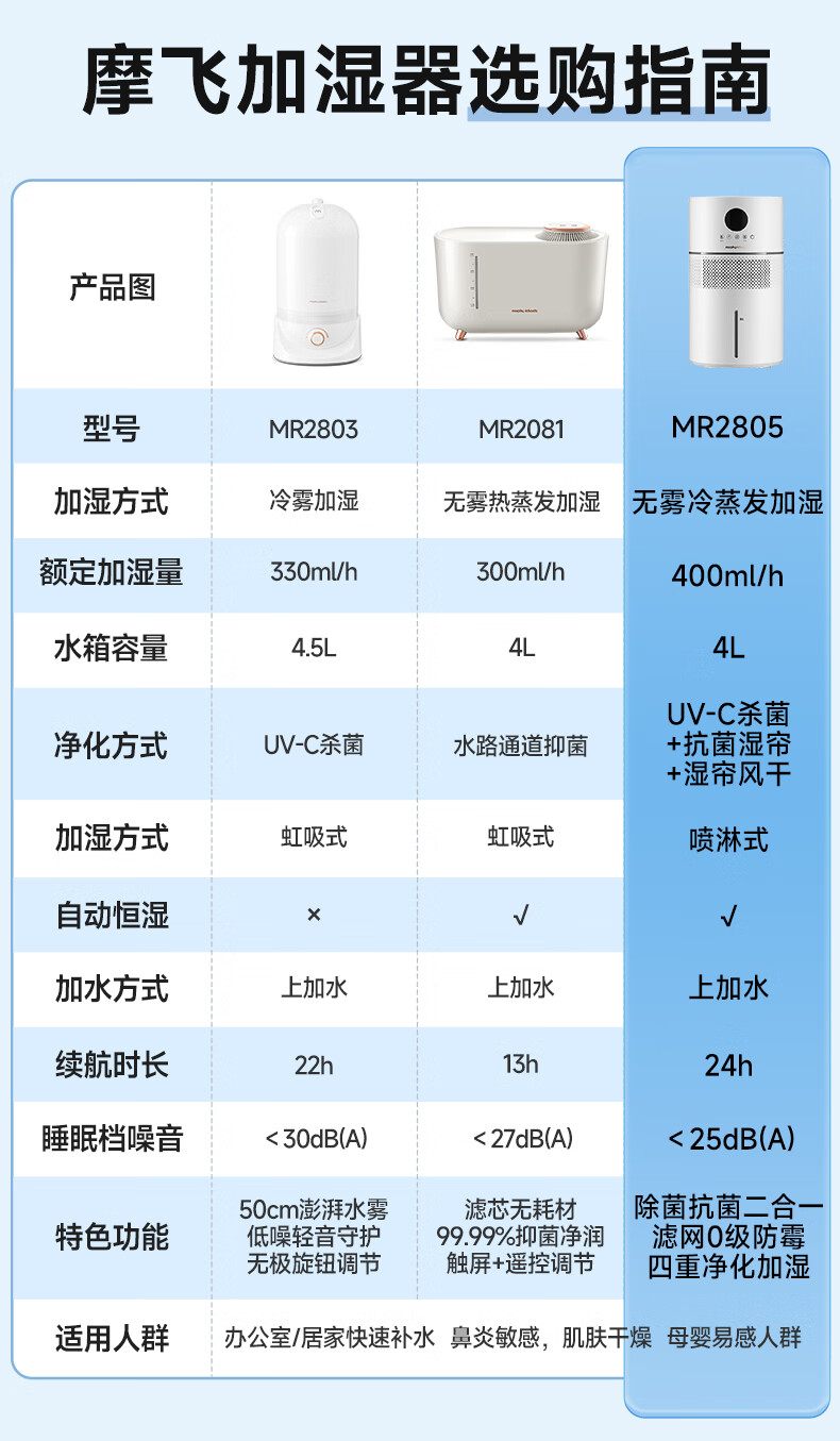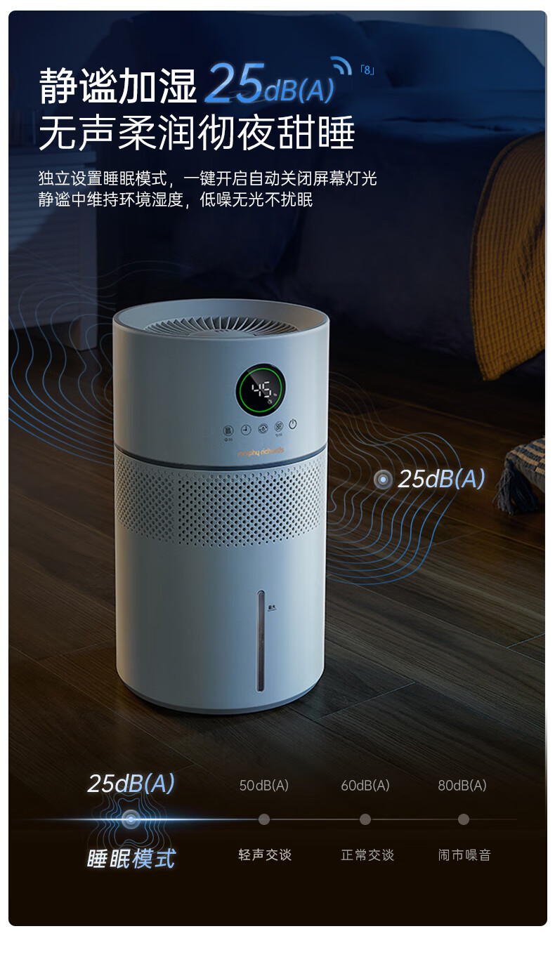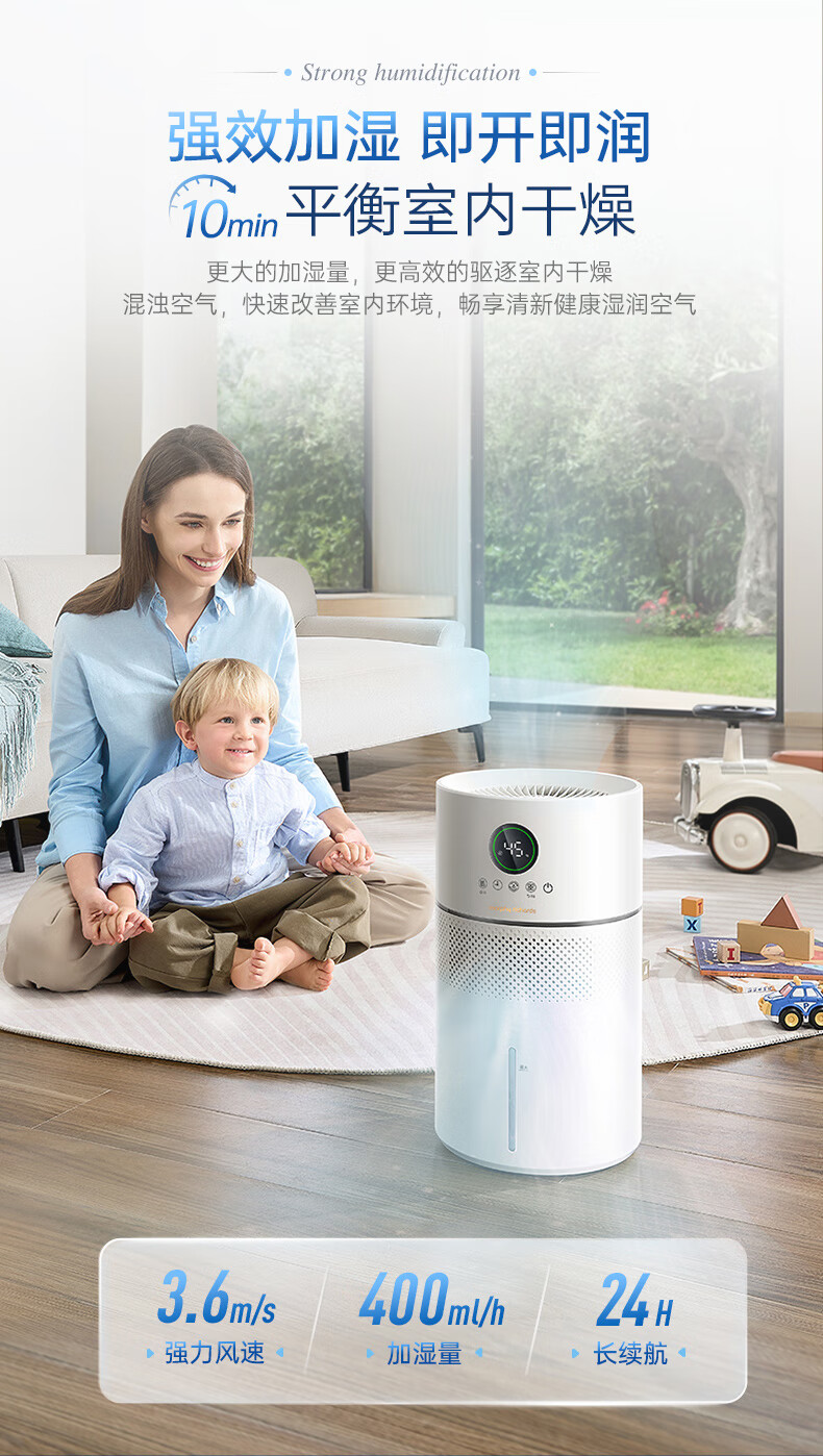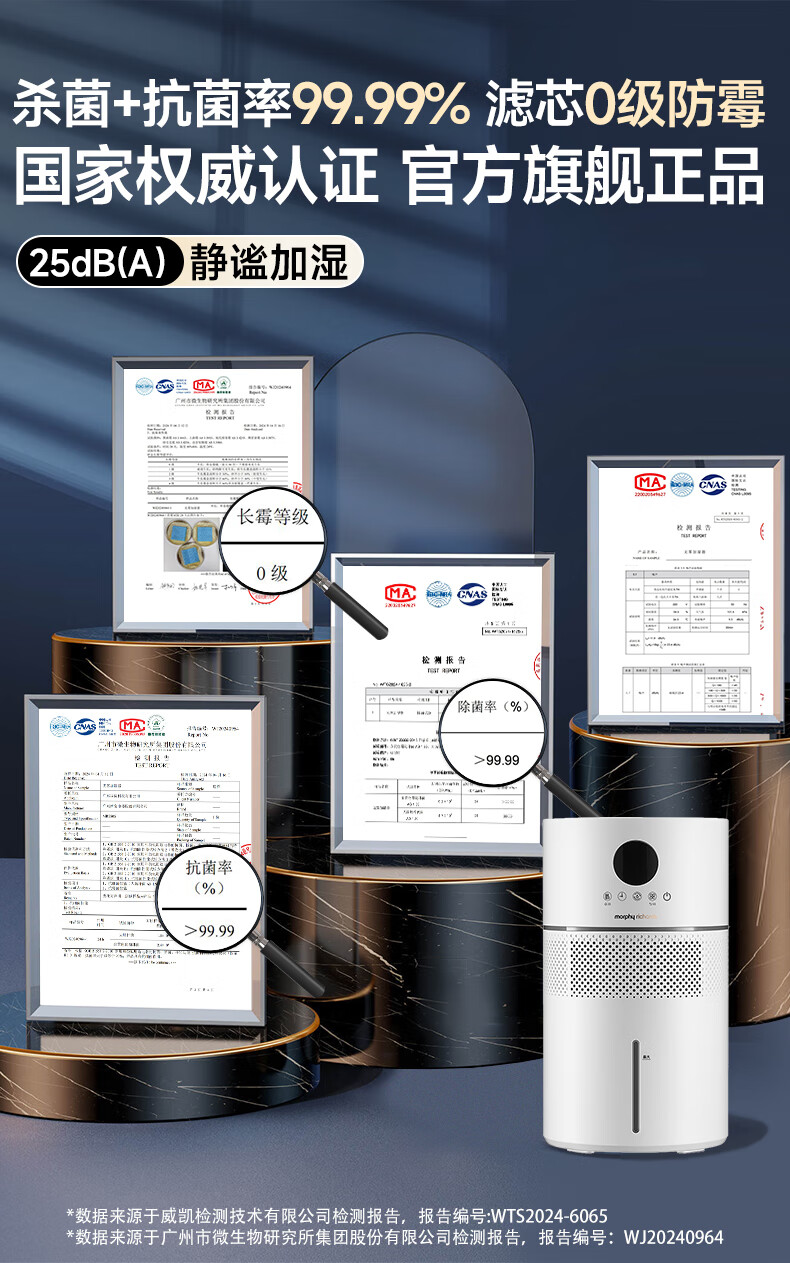 摩飞电器无雾加湿器卧室母婴儿大容量家用办公室空调房间静柔音智能除菌落地空气纯净型湿化一体机 MR2805 【99.99%除菌抗菌率/“0”霉菌滤网】