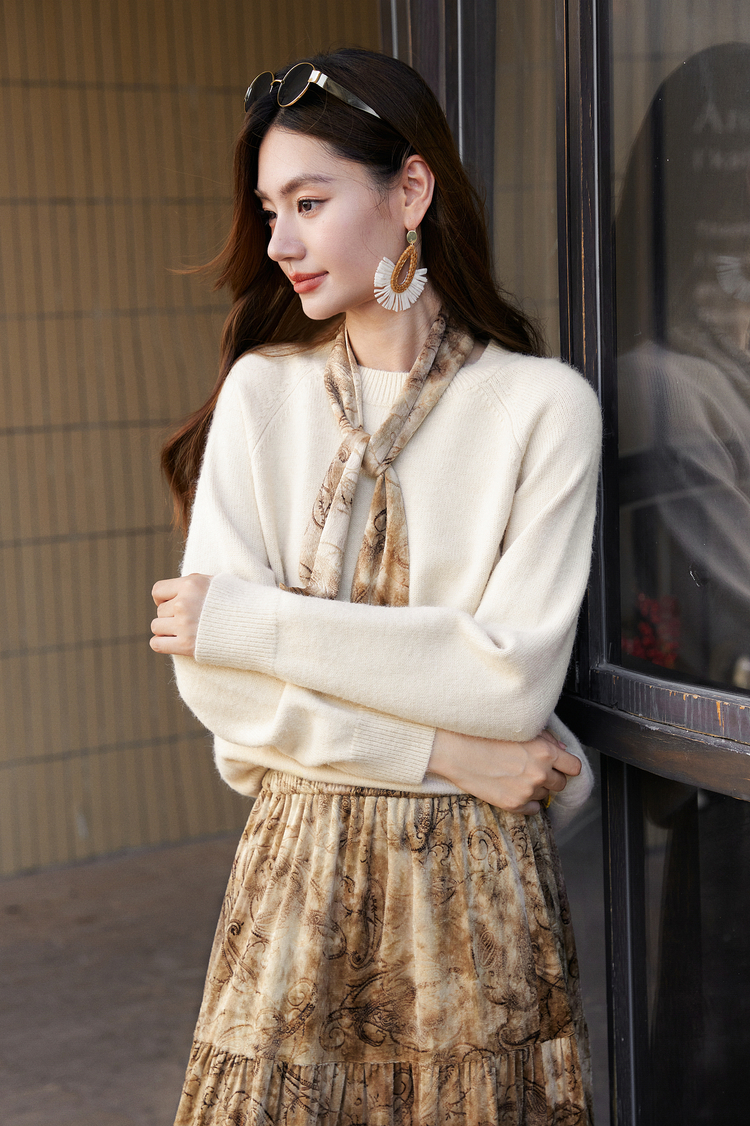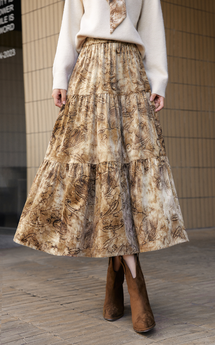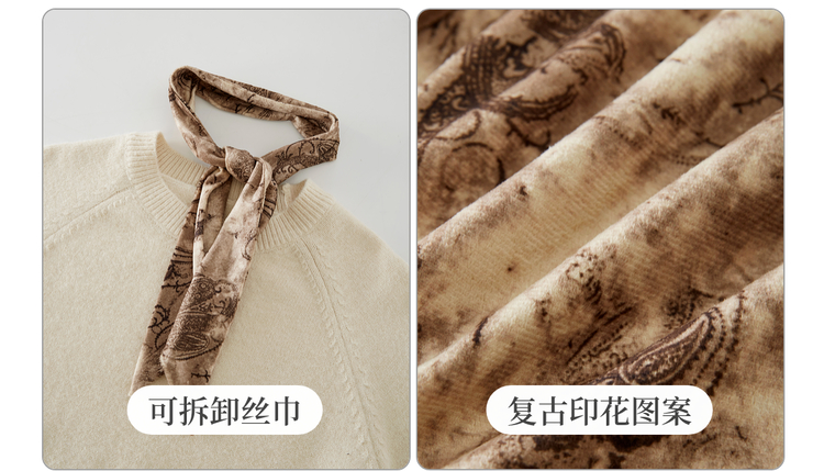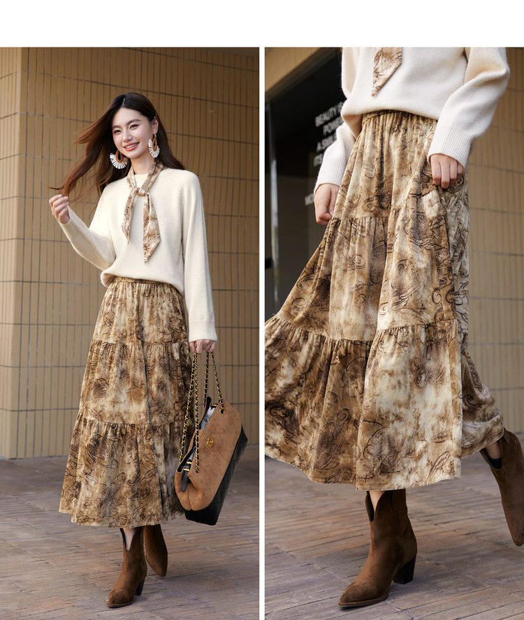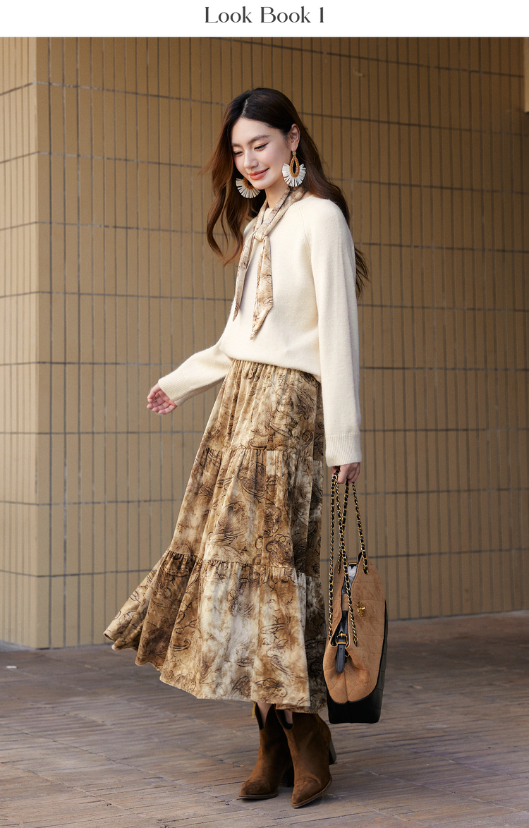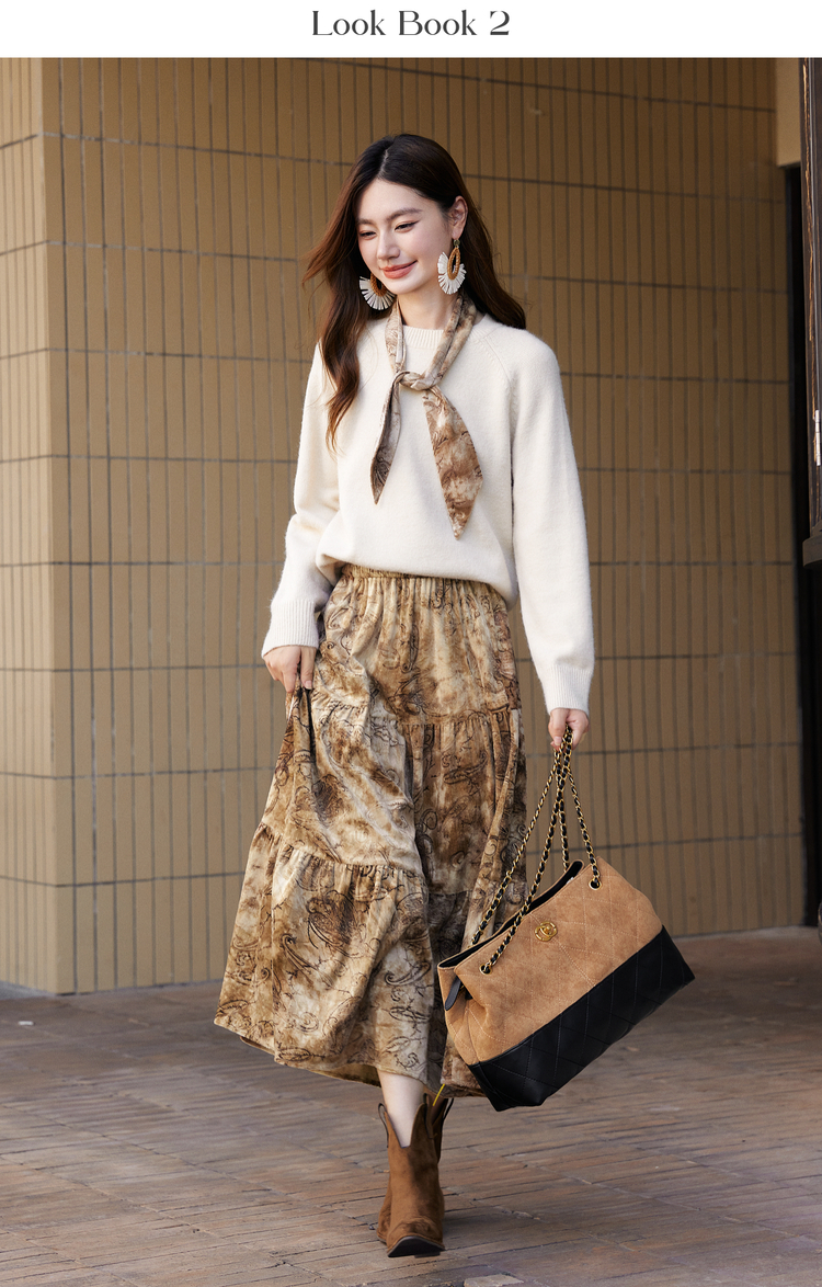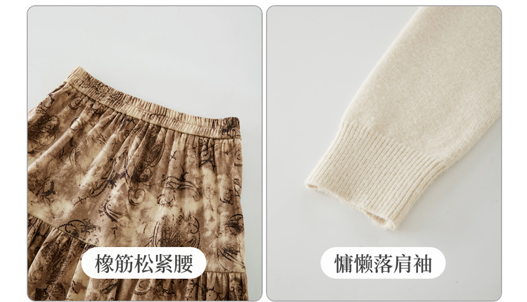 【年货节】熙世界盐系轻熟两件套装裙女秋冬针织毛衣搭印花磨绒半身裙一整套
