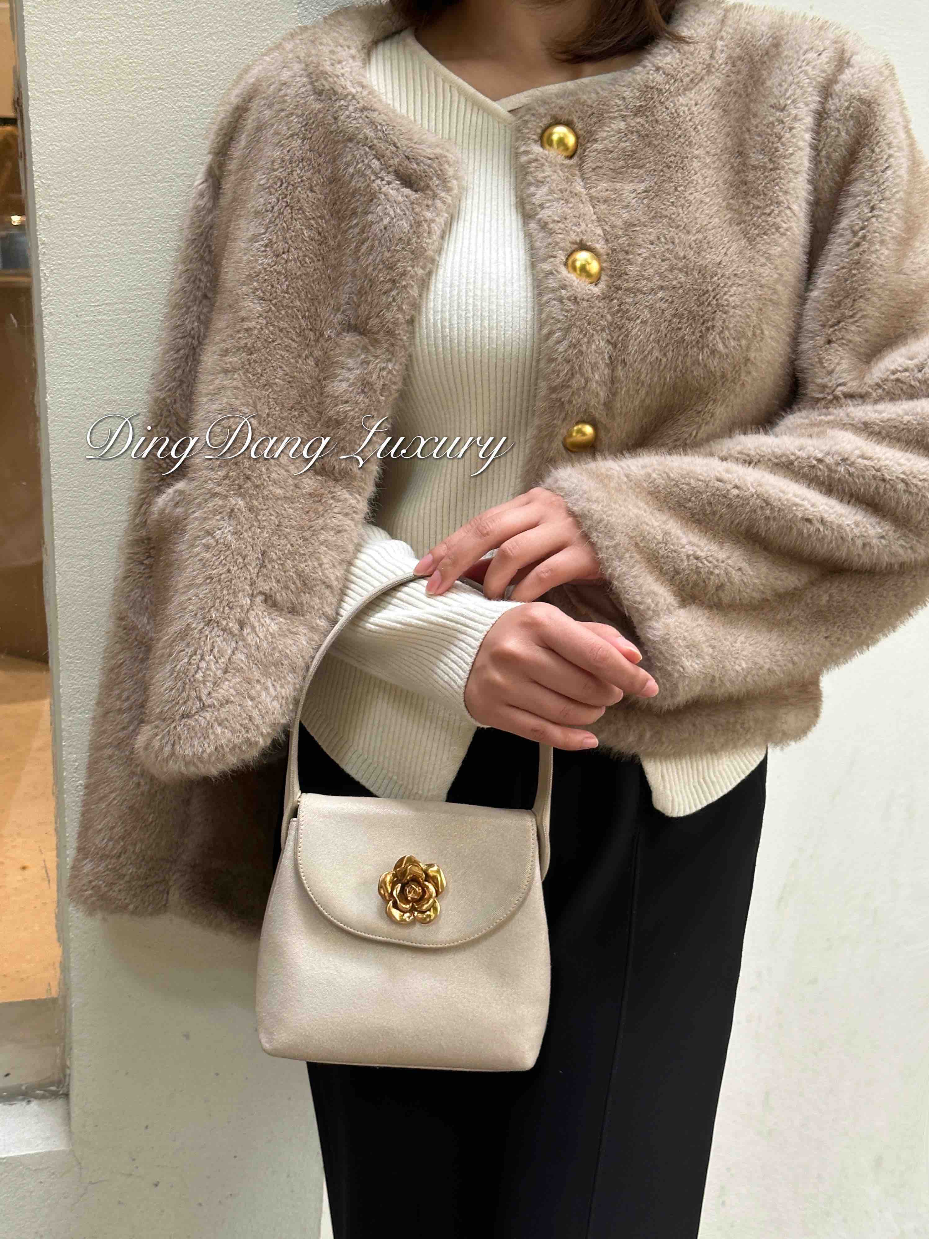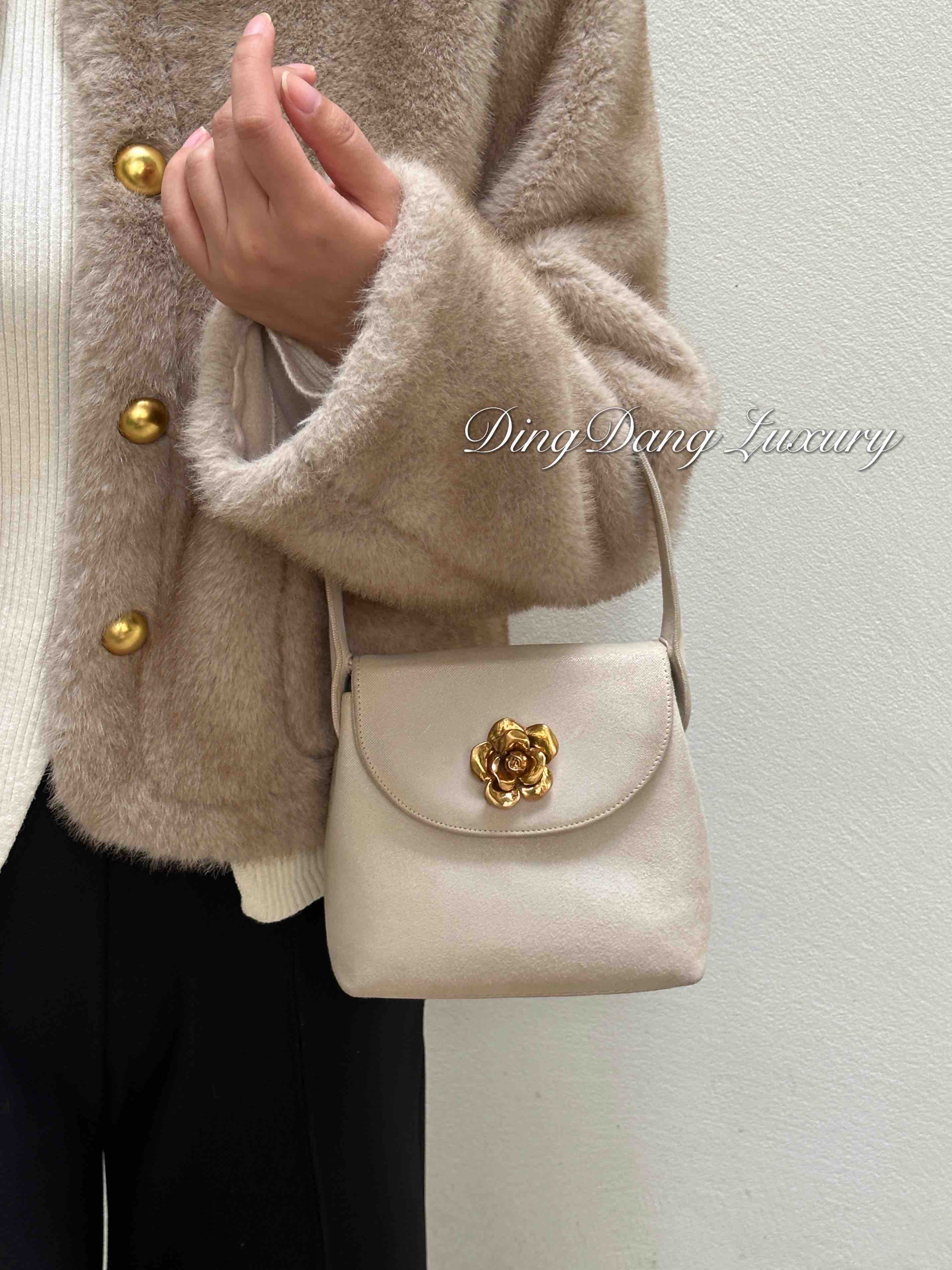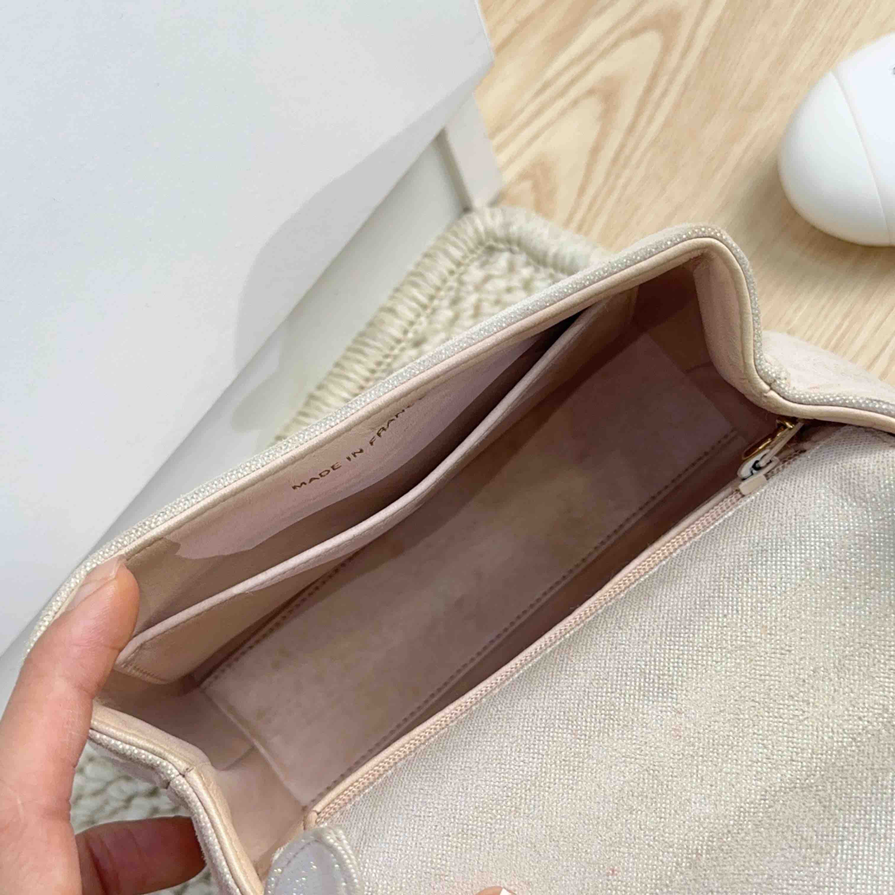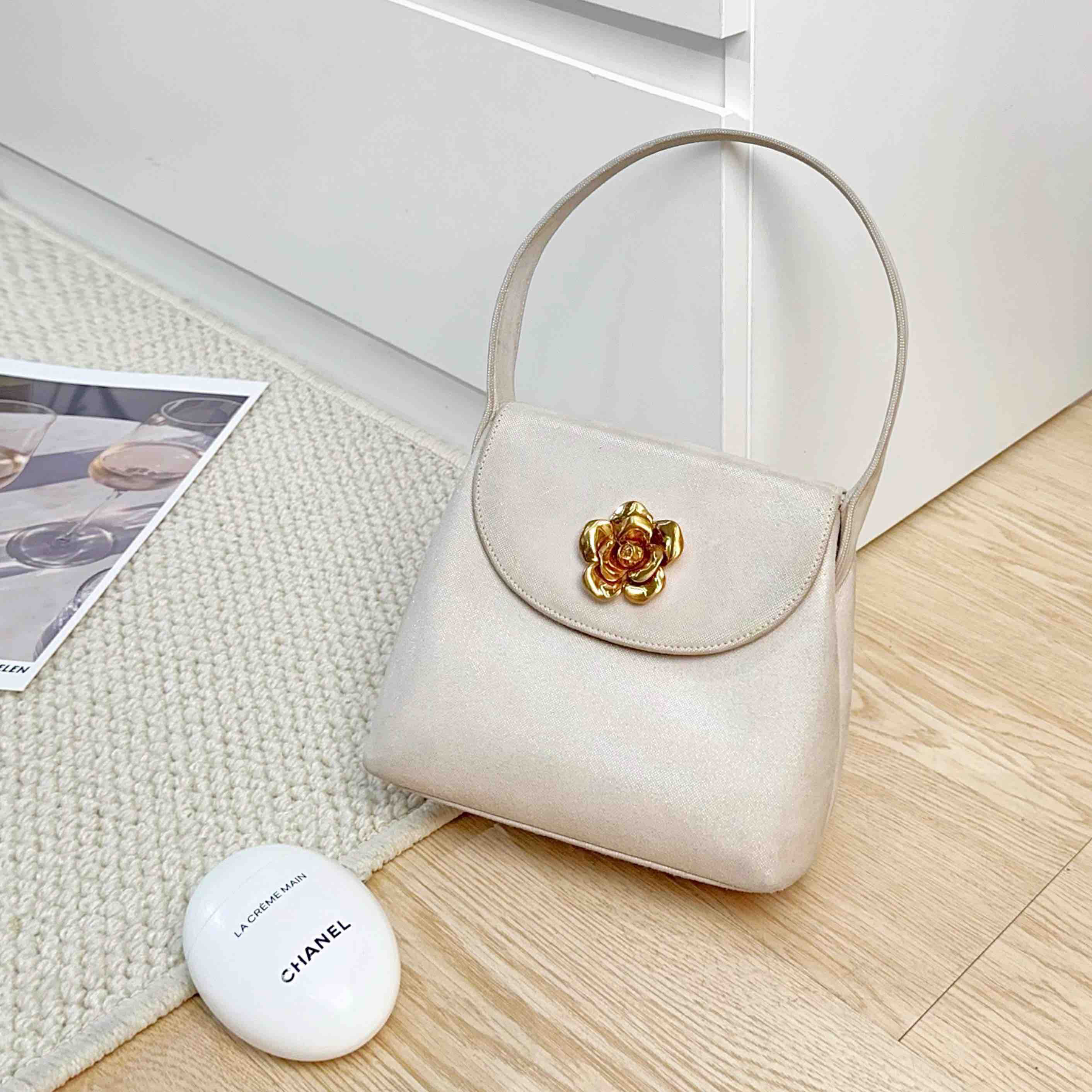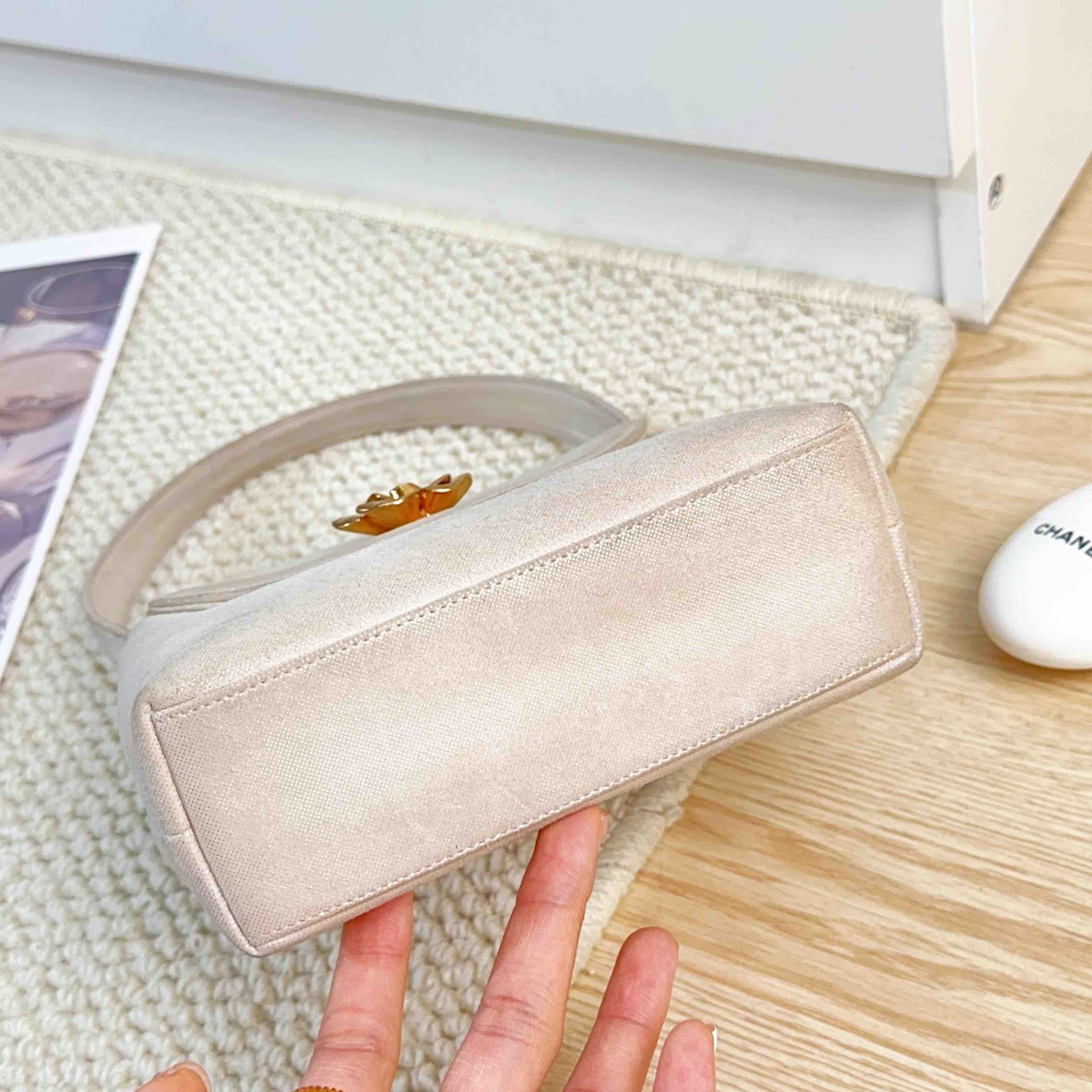 【商品描述】正品二手 Chanel vintage 白色 帆布 山茶花 手提包🎀92新 17×14 有镭射。包面有正常磨毛感和轻微使用痕迹 内里有正常放置痕迹 包型漂亮