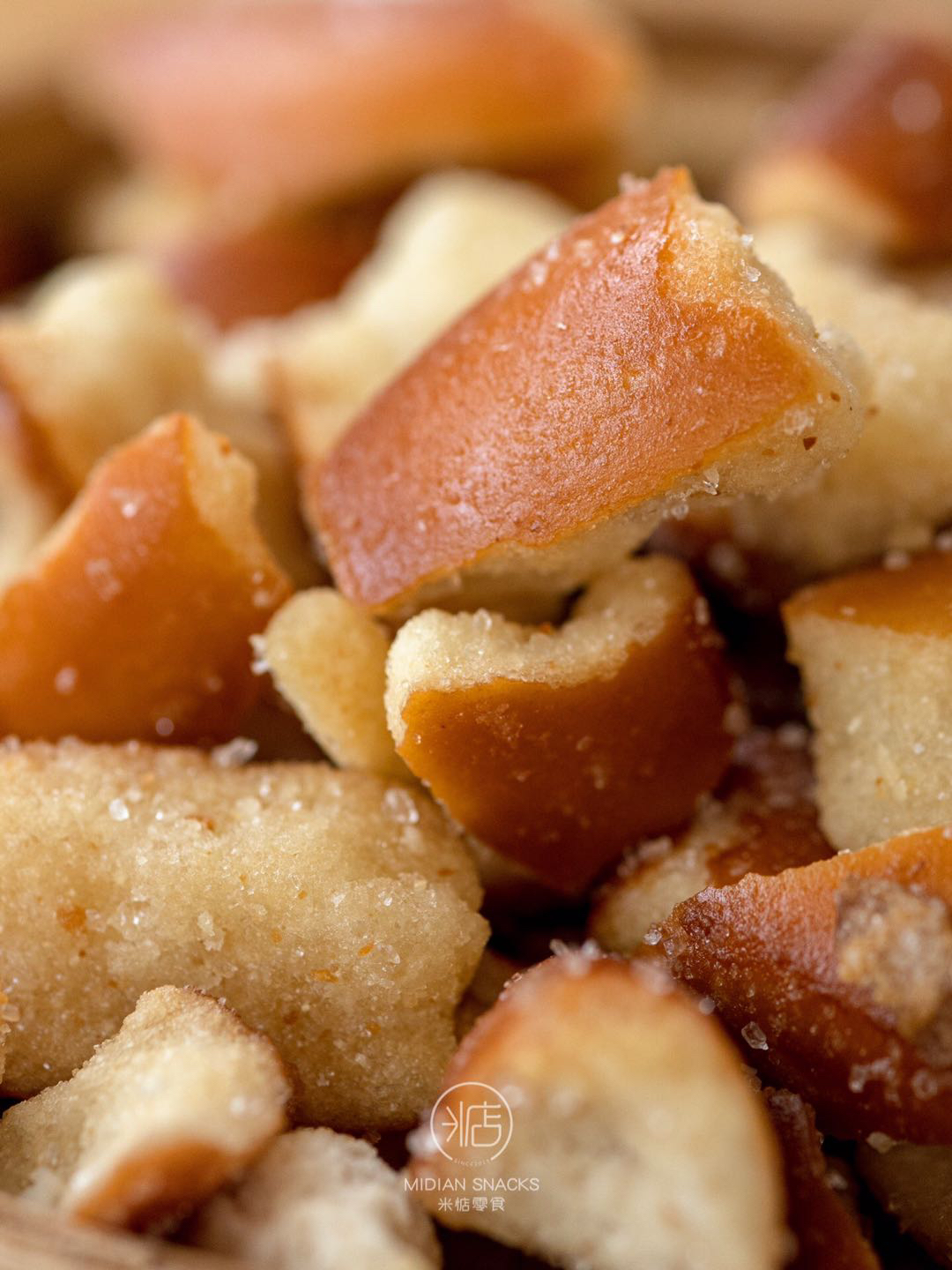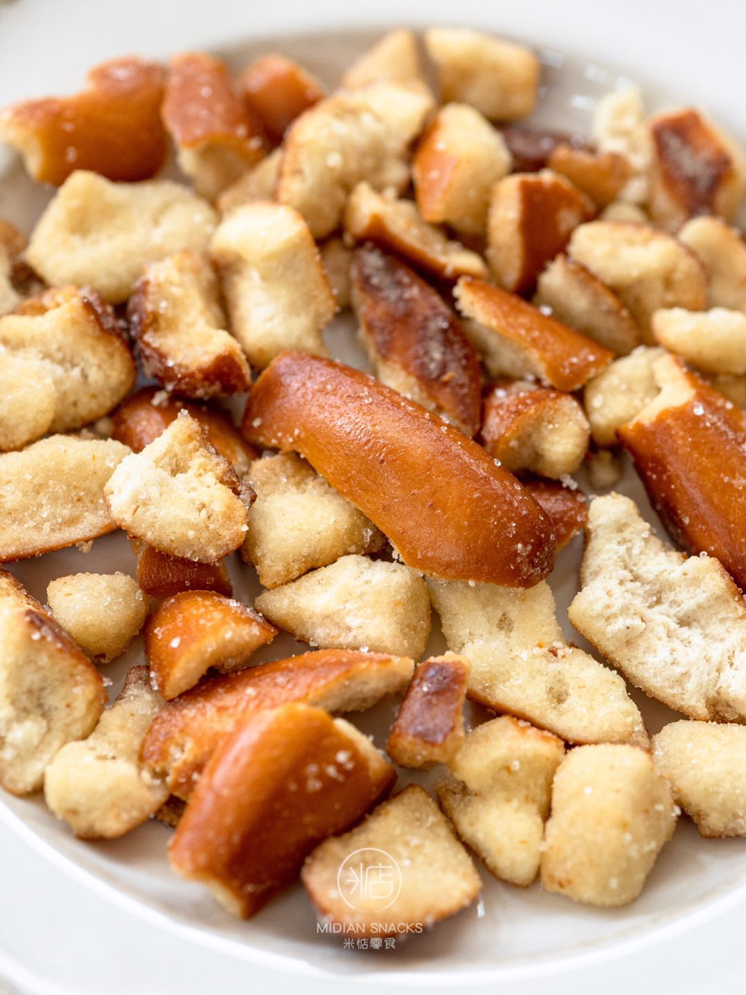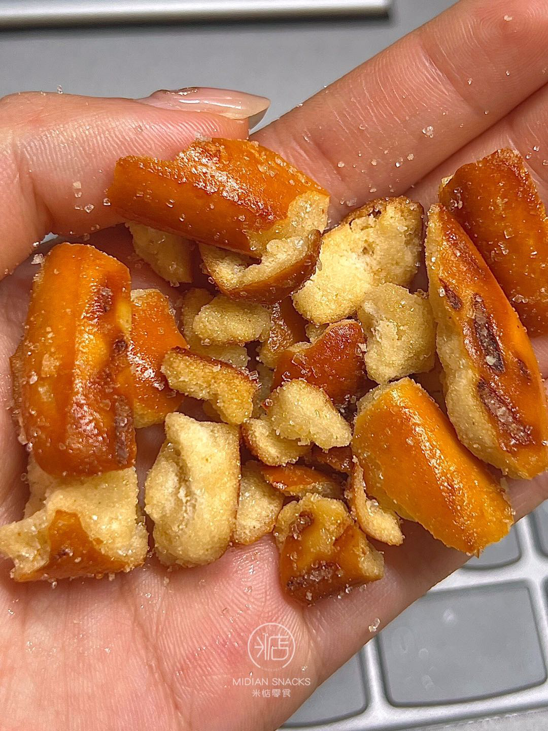 海盐焦糖口味的面包干,外面有一层海盐粒,