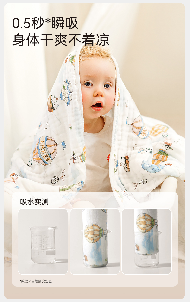【洗浴用品】EMXEE嫚熙婴儿纱布浴巾纯棉超软包被裹巾