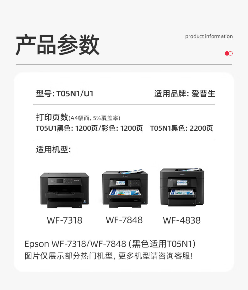 绘威T05N墨盒 适用爱普生WF-4838 WF-7848 WF-7318 epson打印机墨盒 墨水 T05N1U2U3U4四色套装