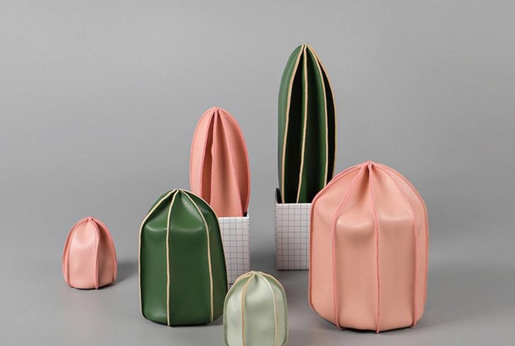 可自由变形,收纳袋的容量会随着物品的多少变大变小。灵感来自于仙人掌,但象君觉得更像一朵绽放的花苞。