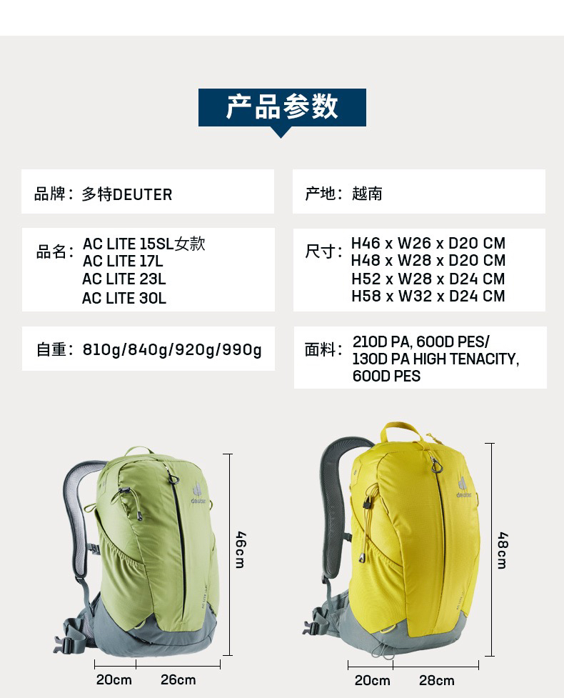 德国多特DEUTER AC LITE萤火虫徒步背包男女户外旅游登山轻双肩包