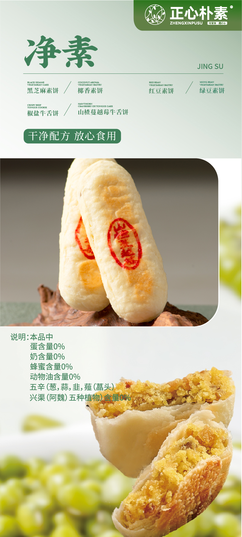 【买2袋 赠蔓越莓牛舌饼1盒、多买多赠、紫苏味不参与】正心朴素 黑芝麻/红豆/绿豆/椰香/紫苏 素饼 糕点 260g/袋【10块/袋】