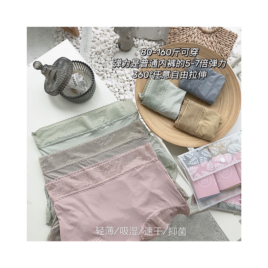 含桑蚕丝底档,吸湿性强,能快速吸收皮肤表面的汗液和湿气,并通过纤维空隙排出,避免潮湿闷热感,尤其适合夏季或运动时穿着,保持私密部位干爽。
