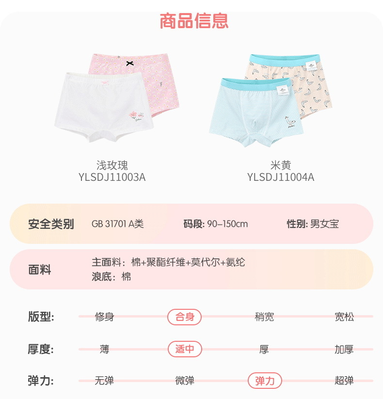 英氏儿童内裤男女宝宝平角内裤2件装YLSDJ11003A01YLSDJ11004A01