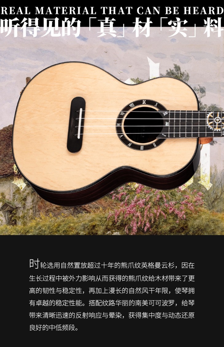 瑞声时轮TR781英格曼熊爪纹云杉全单尤克里里进阶专业演奏ukulele
