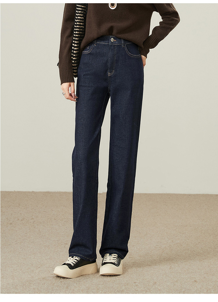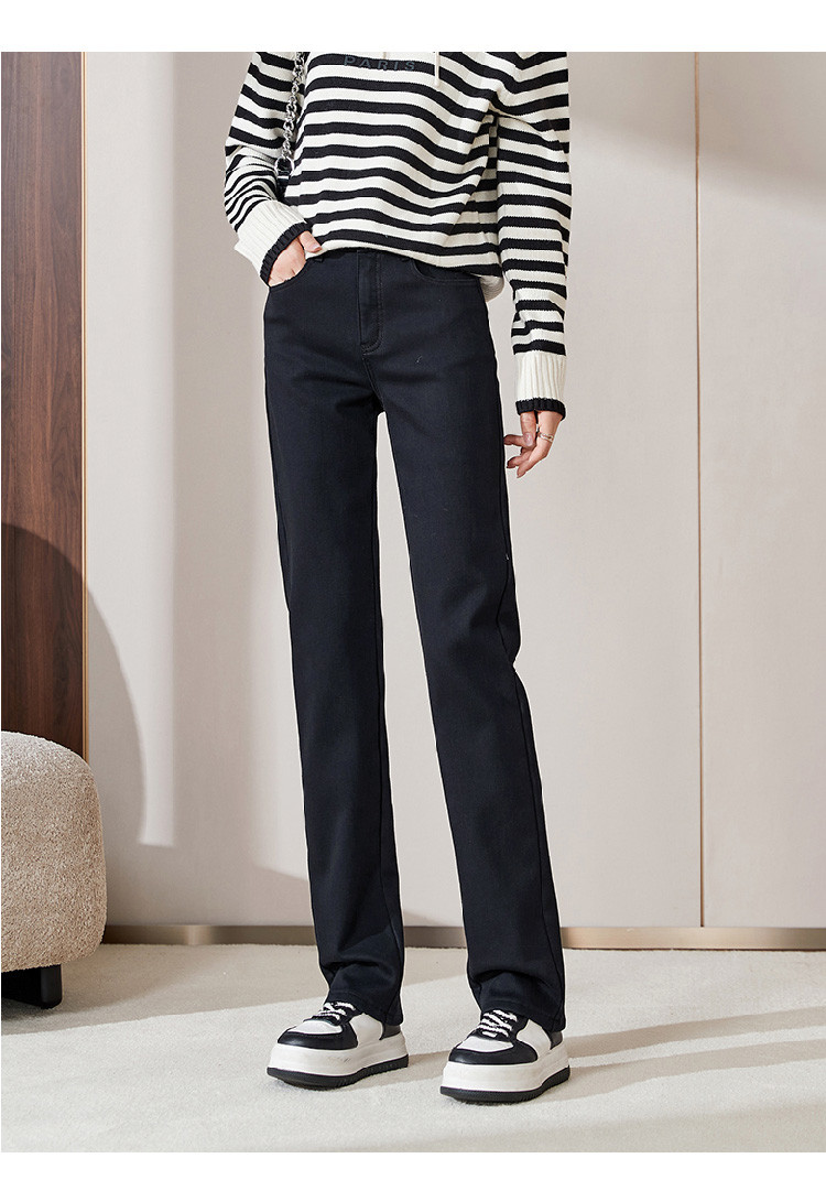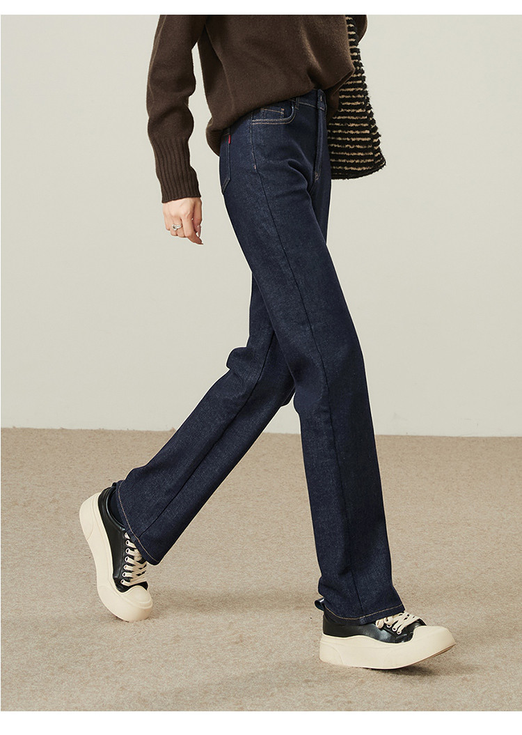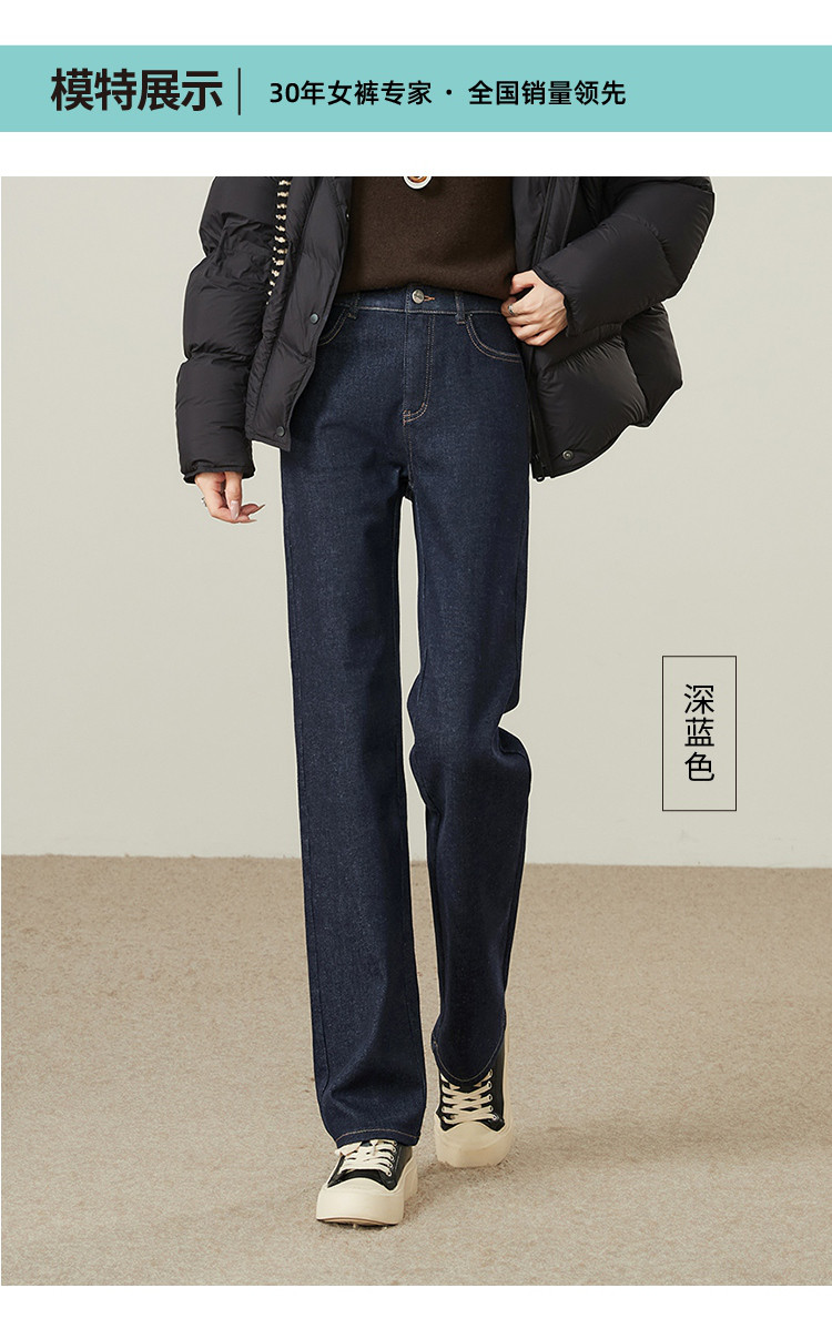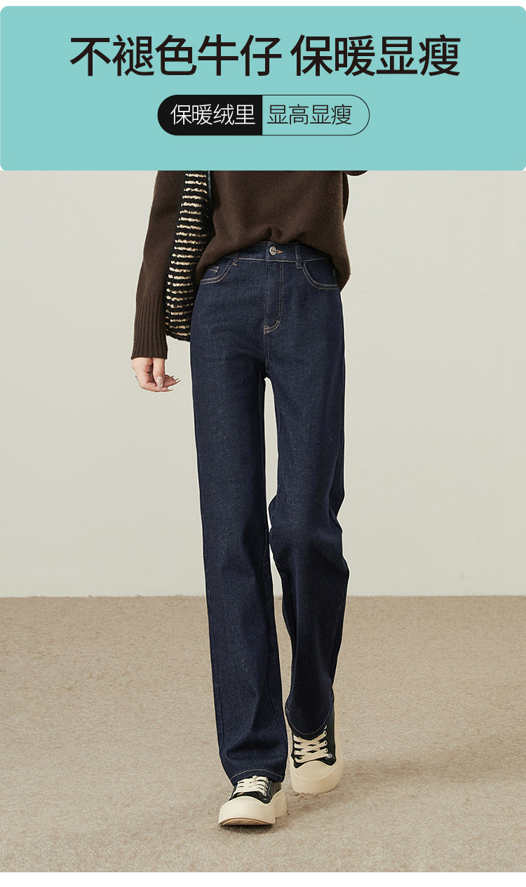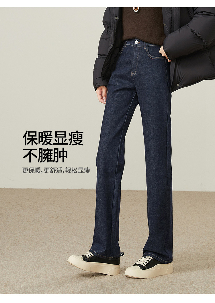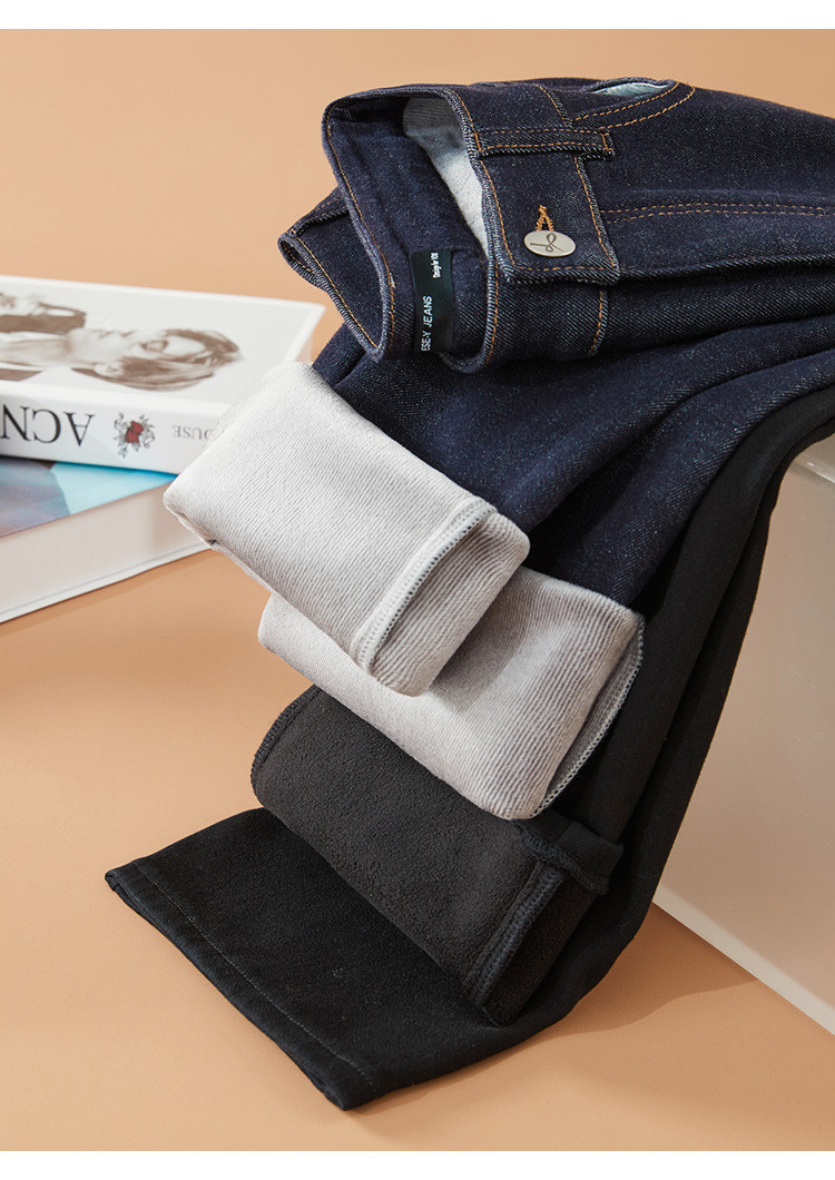 【厚绒-小直筒-长裤】逸阳冬加绒加厚不易褪色烟管牛仔直筒裤4903B
