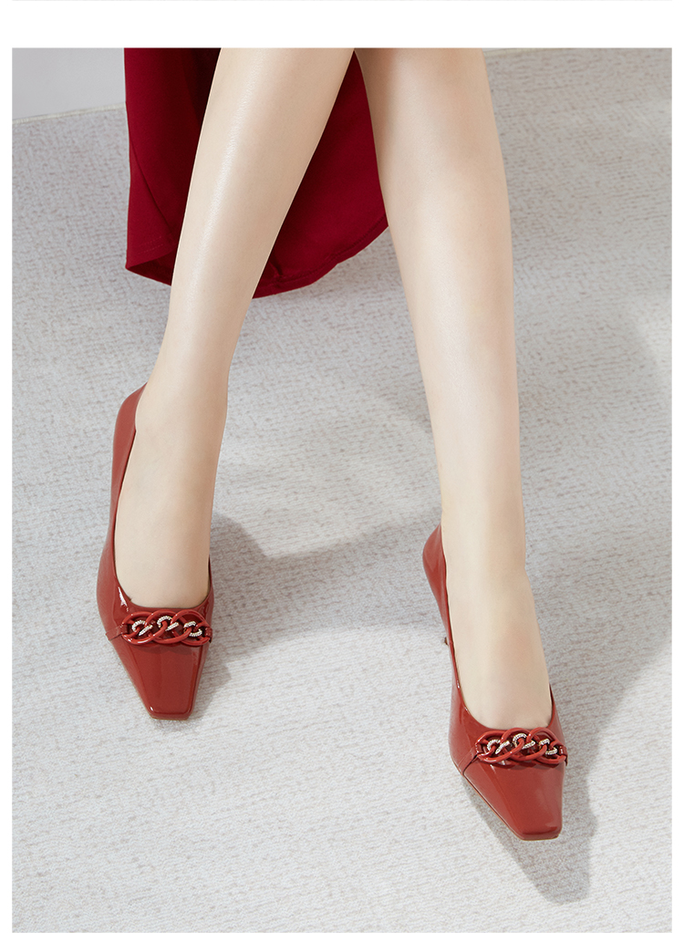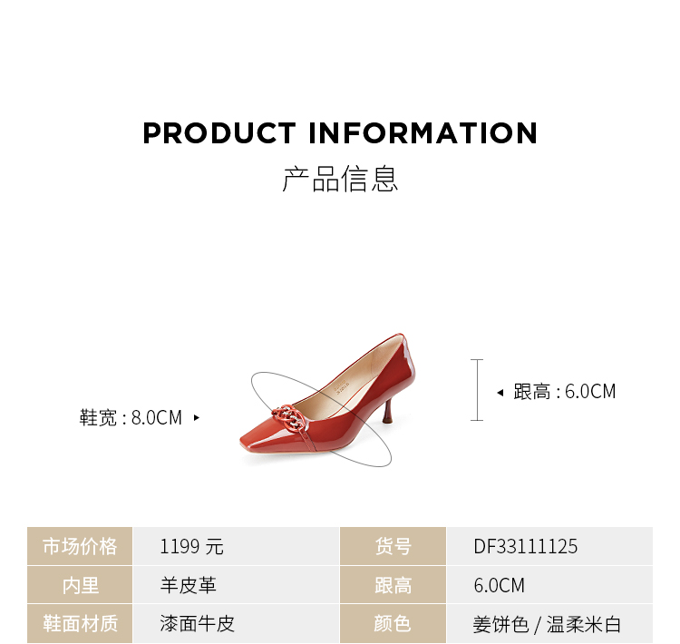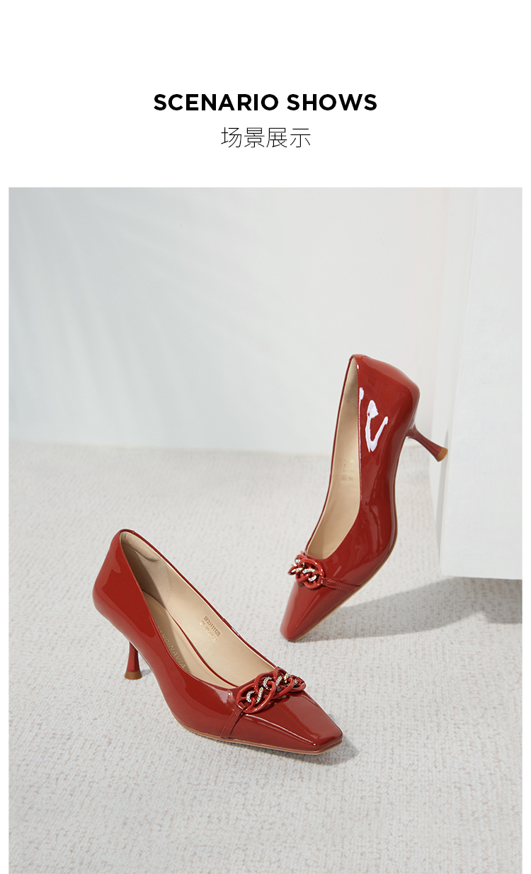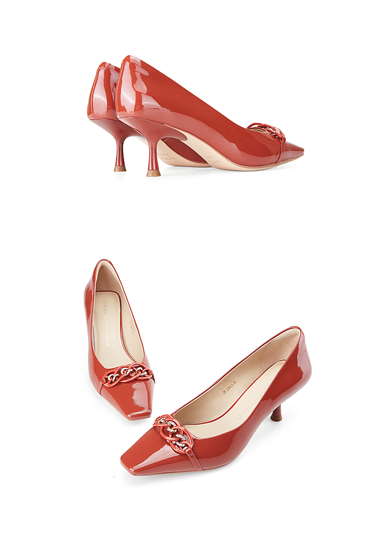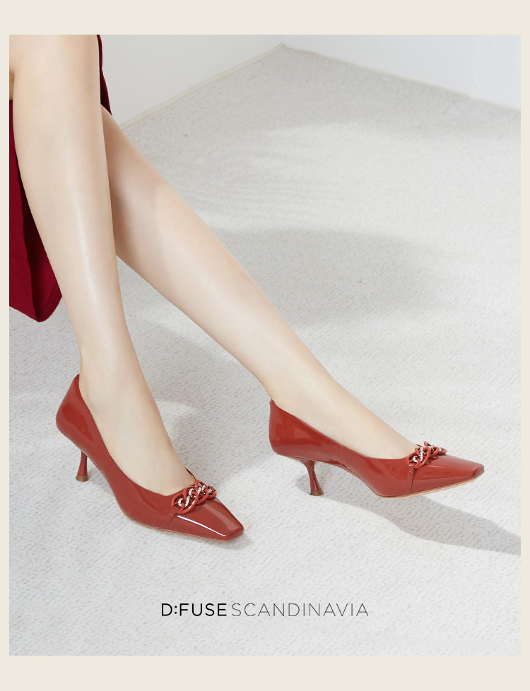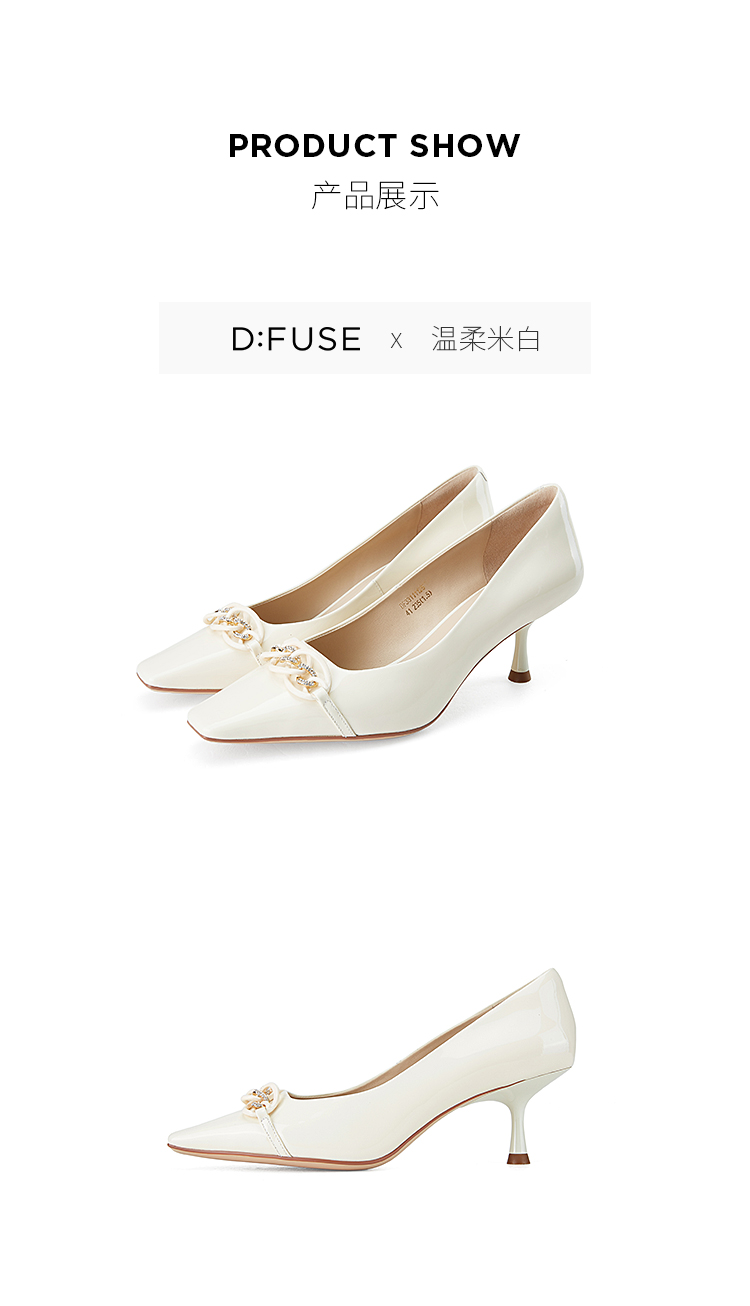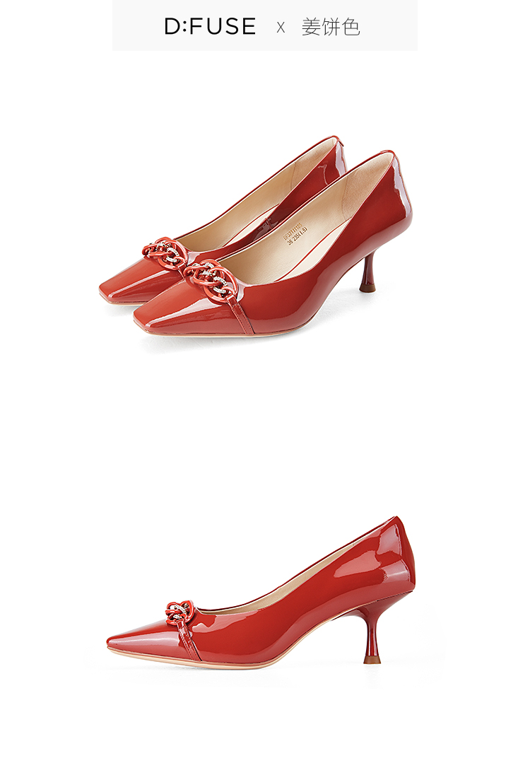 DFuse迪芙斯秋款浅口高跟细跟法式方头单鞋女纯色漆面牛皮DF33111125