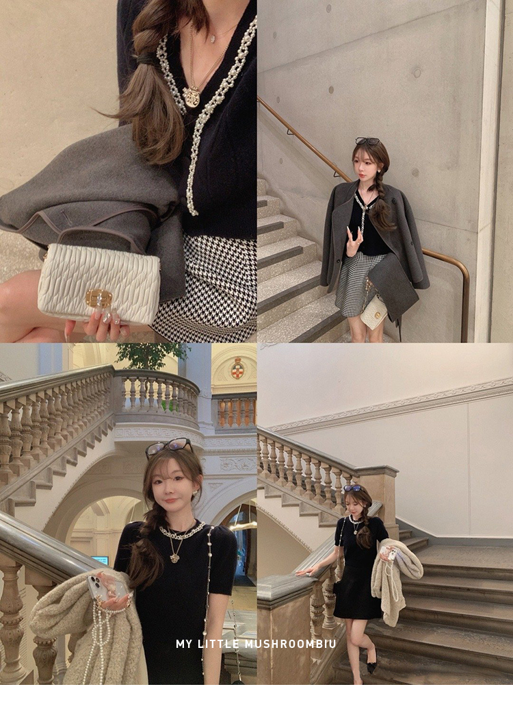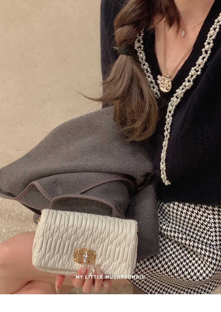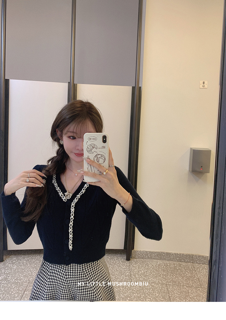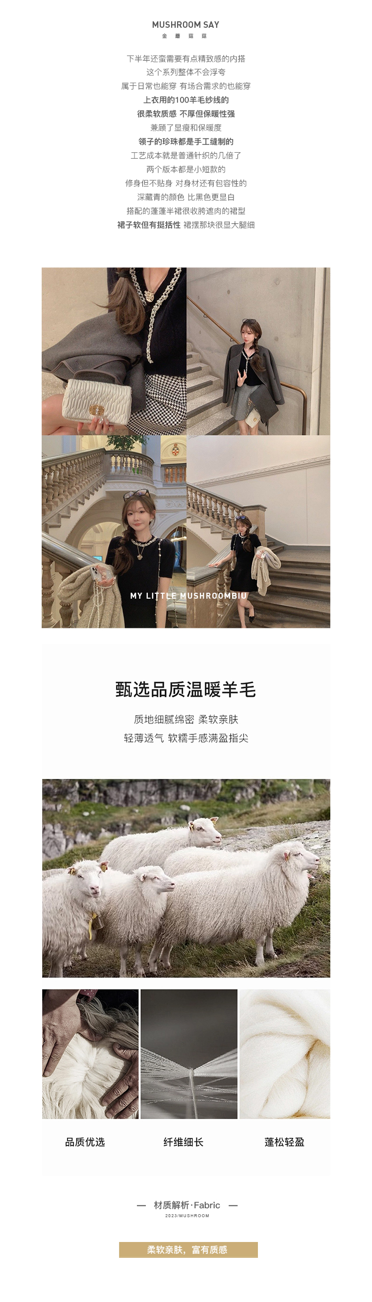 金蘑菇菇 珍珠情话 新季crush / 100羊毛精致小珍珠修身开衫上衣