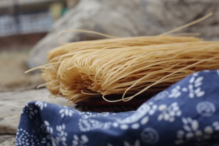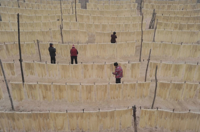 一挂一挂金线般的粉条晾晒着