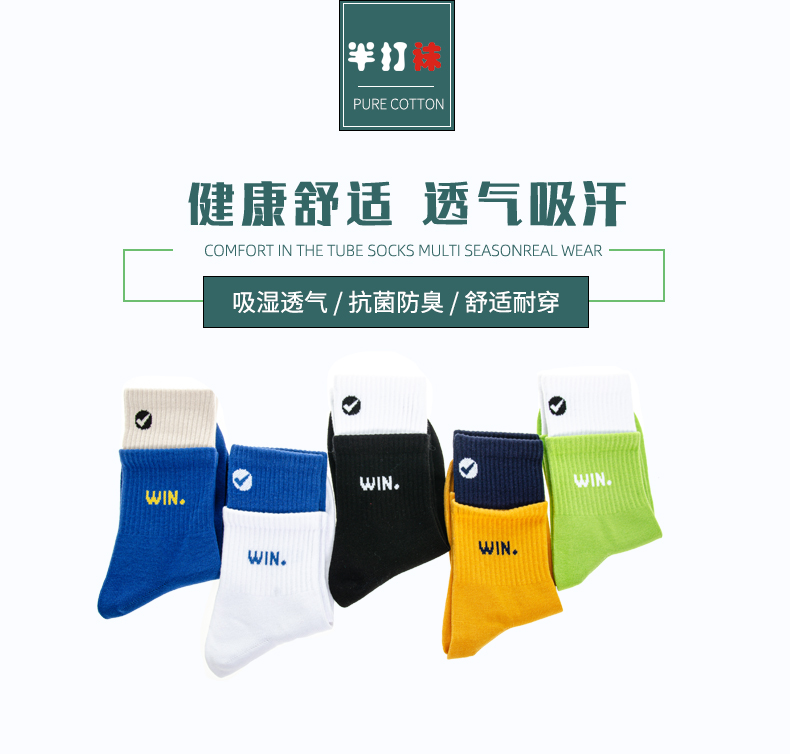 【6双6折】网红同款对勾袜子女中筒纯棉彩色潮牌勾勾百搭男女运动长袜情侣款【2221101】