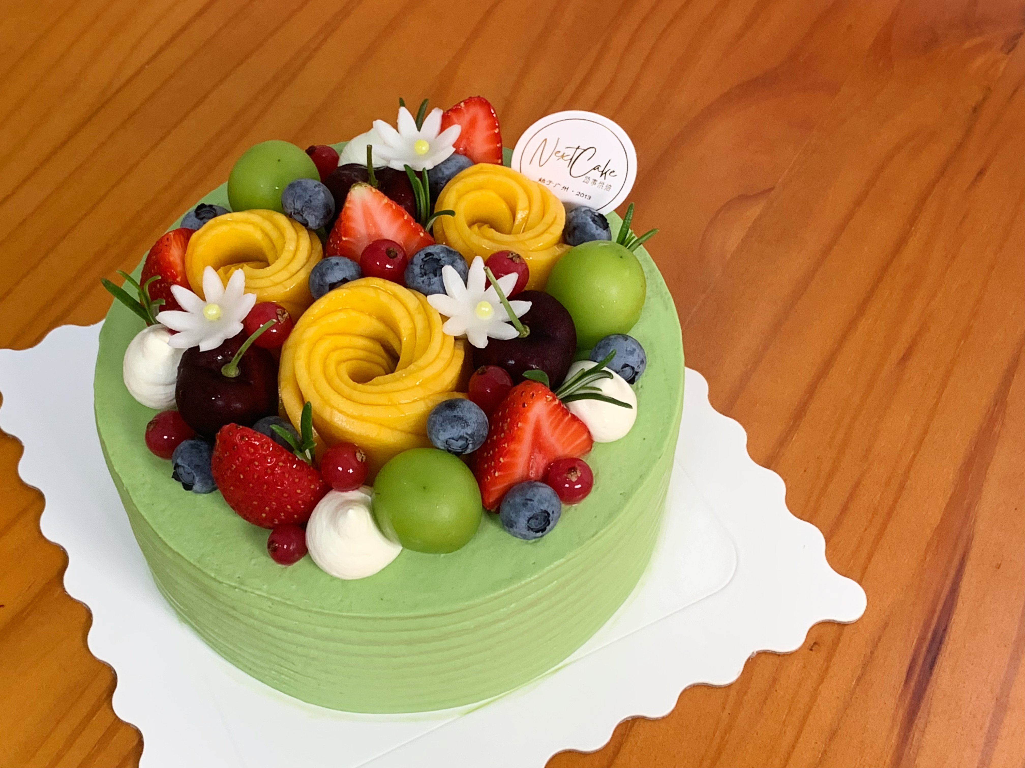 小山园青岚抹茶糯米胚,夹心原味奶油,树莓果酱,抹面抹茶奶油。