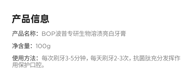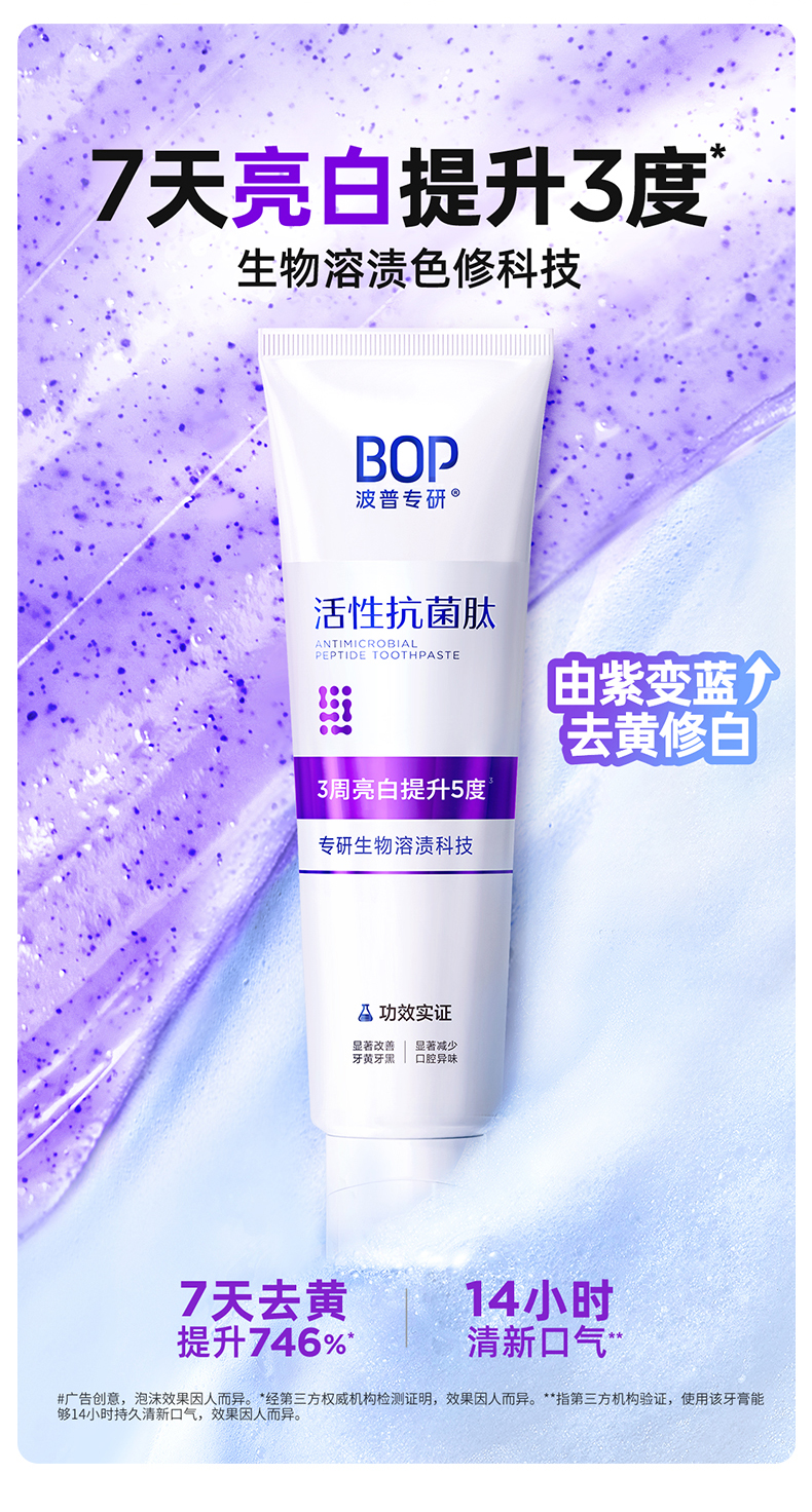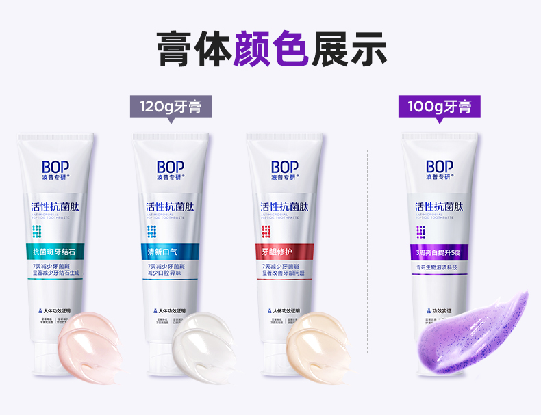 BOP波普专研生物活性抗菌肽奥拉氟溶渍色修美白多效护理儿童成人牙膏