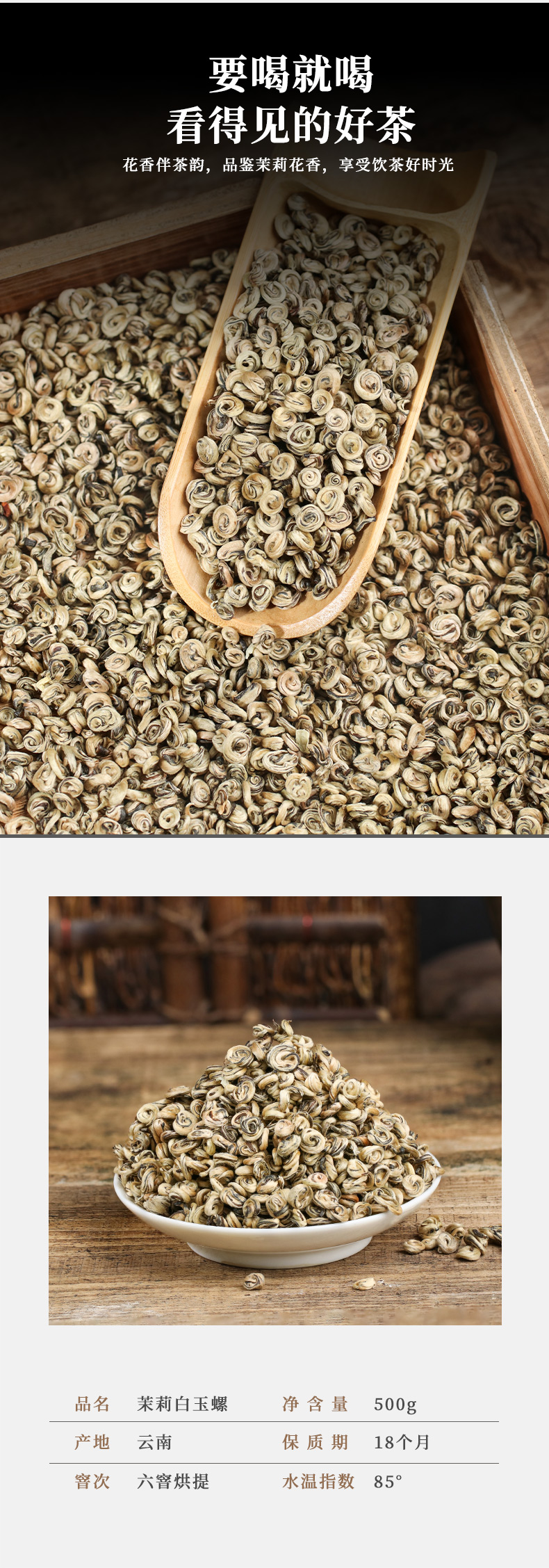 YP茉十芳特级茉莉花茶(白玉螺)100g/盒*6盒;赠送:陶瓷功夫杯茶具*1套,手提袋*2个