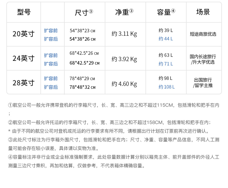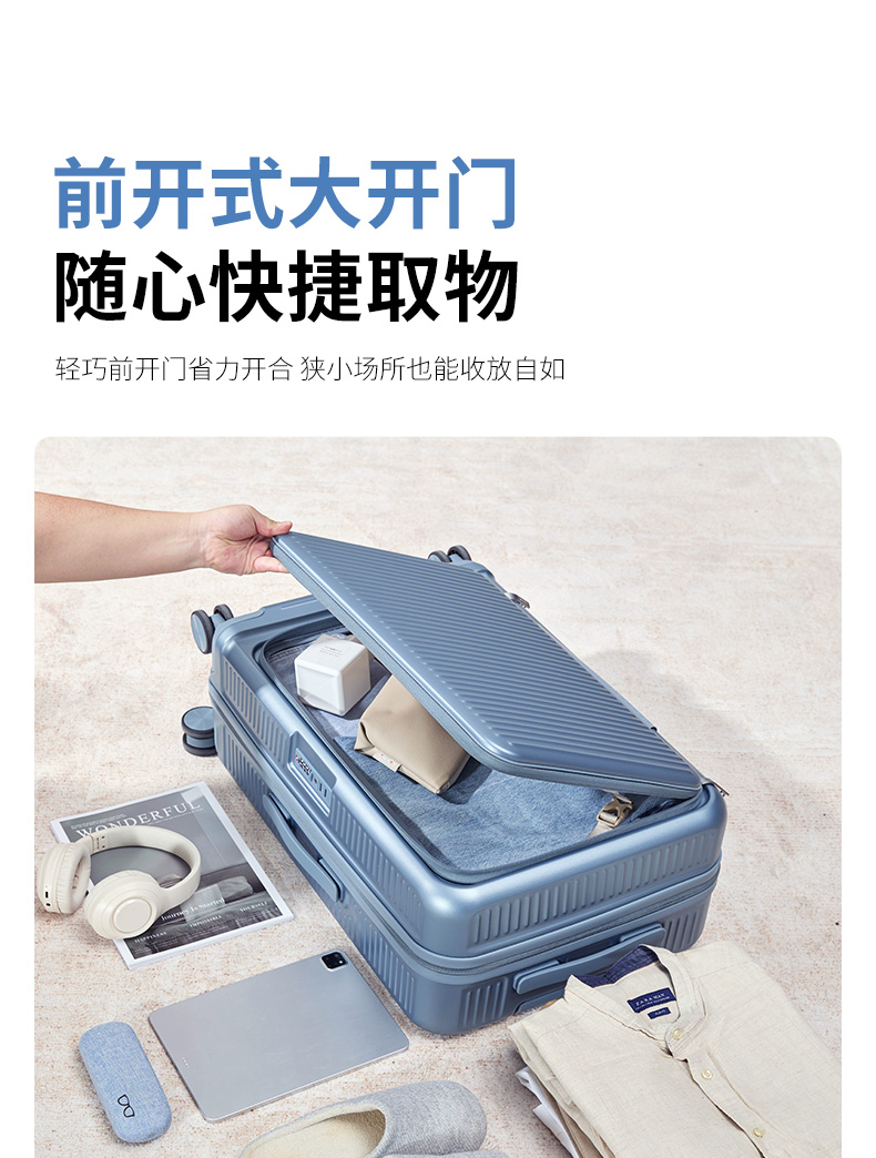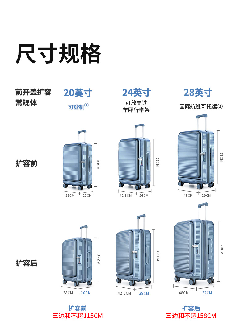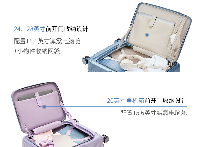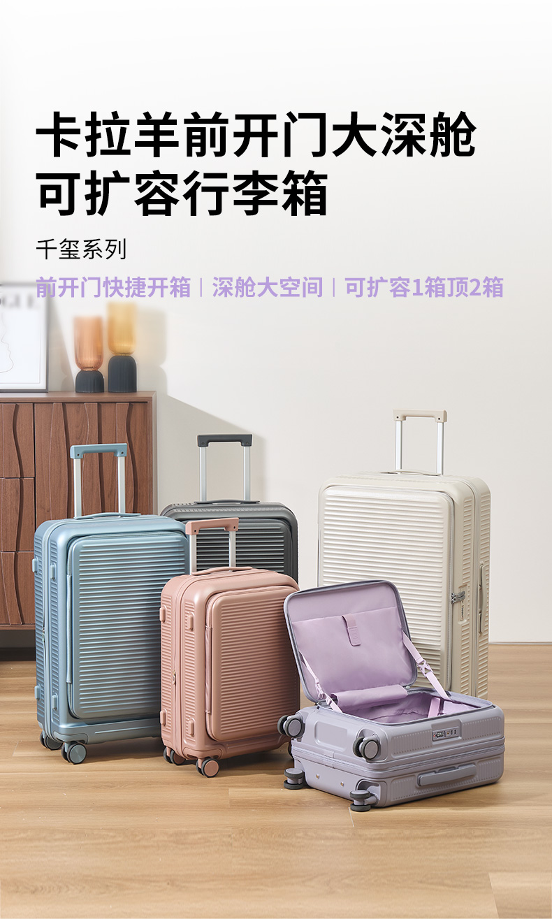 【深舱扩容行李箱】卡拉羊前开门大容量可扩容行李箱CX8129
