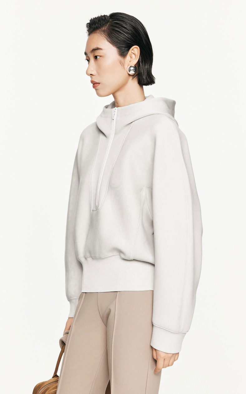 猫店折后售价869软币💰努省大几百啊!很实穿很百搭的一款卫衣,简约休闲运动版型,选用空气层的面料挺括不易皱,手感软糯有Q弹感,很好打理。兼具舒适度与保暖性,穿着自在随意无束缚感。绝对是长在审美上的,既有高级感又有松弛感的穿搭天花板卫衣!