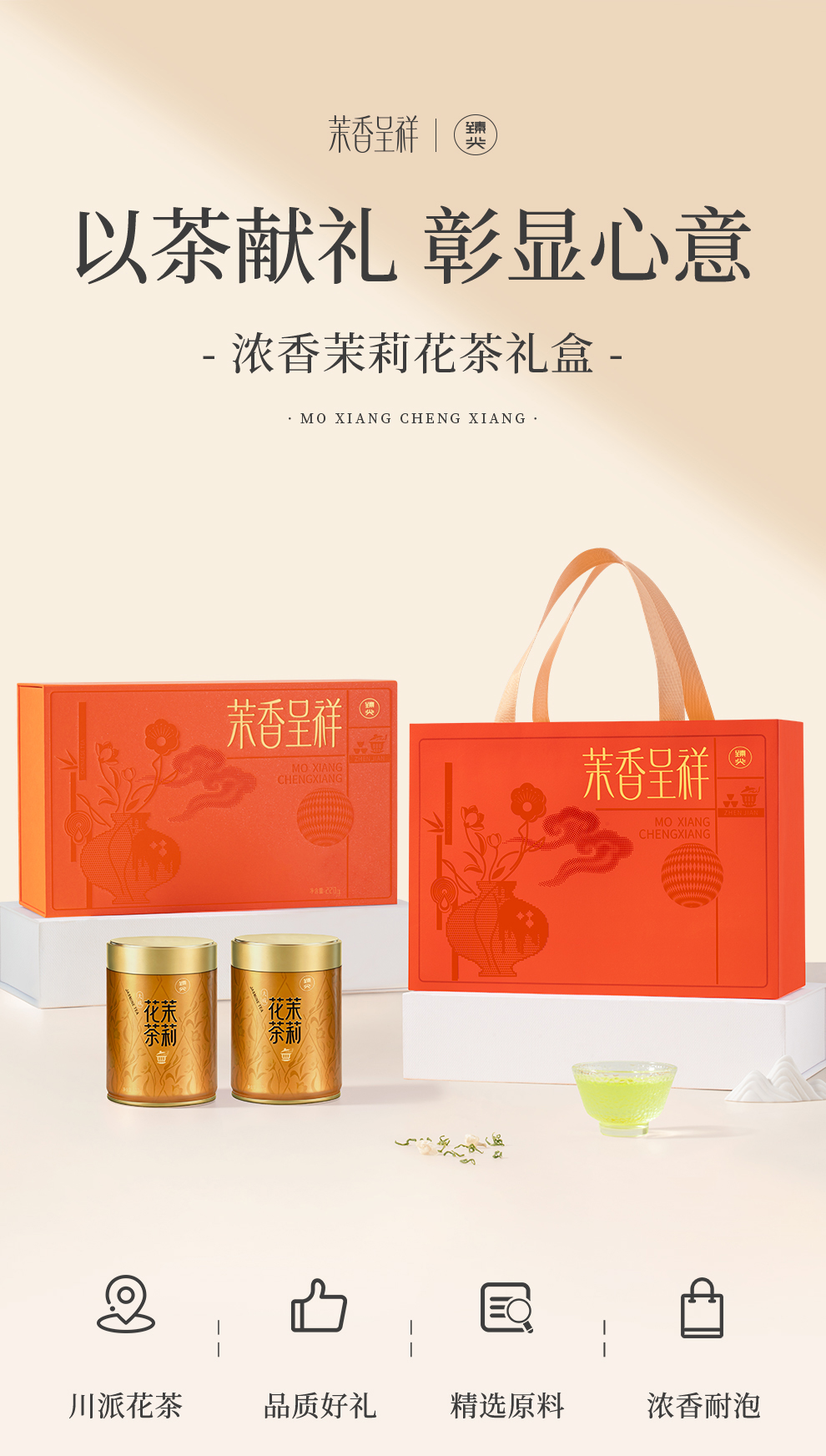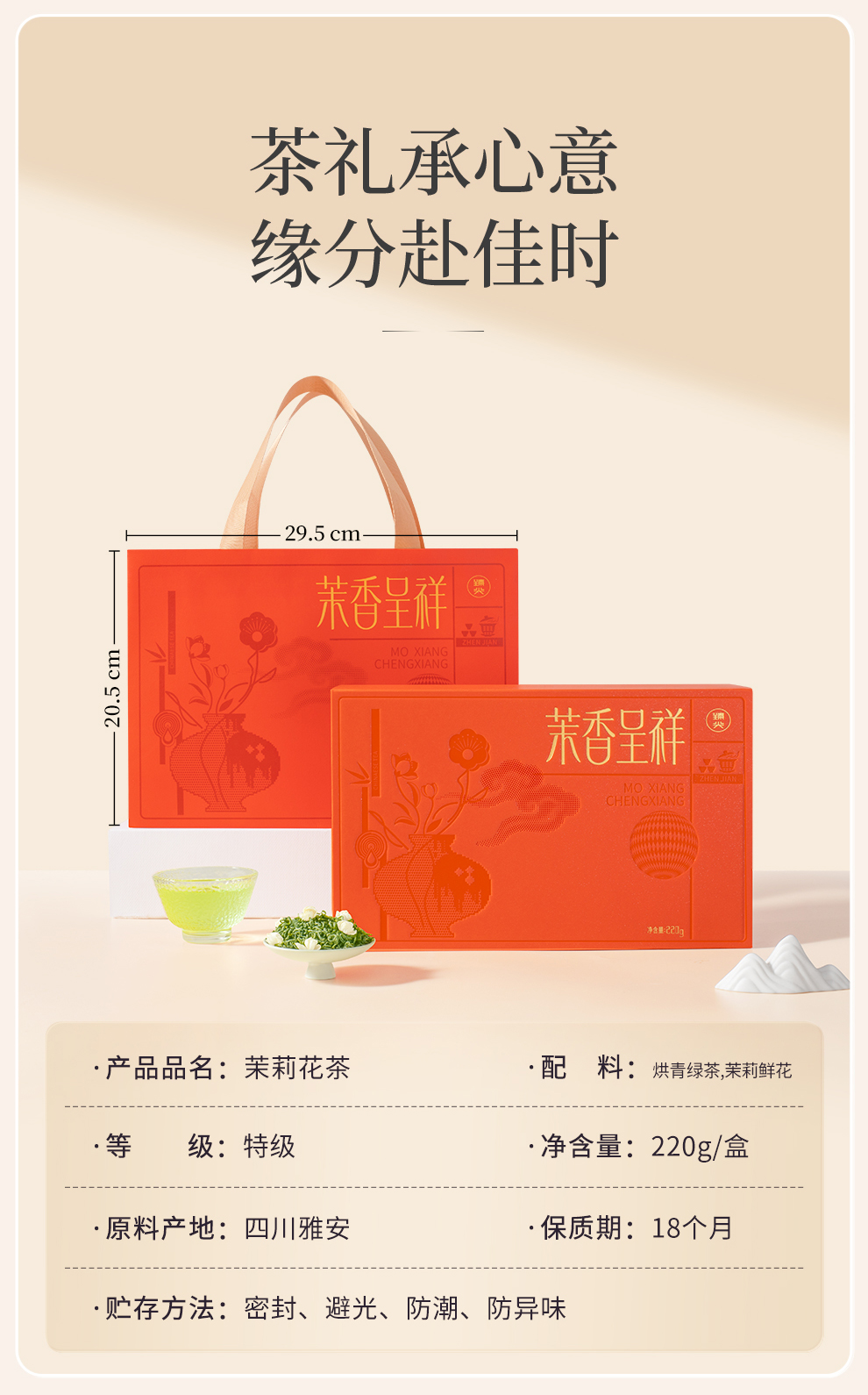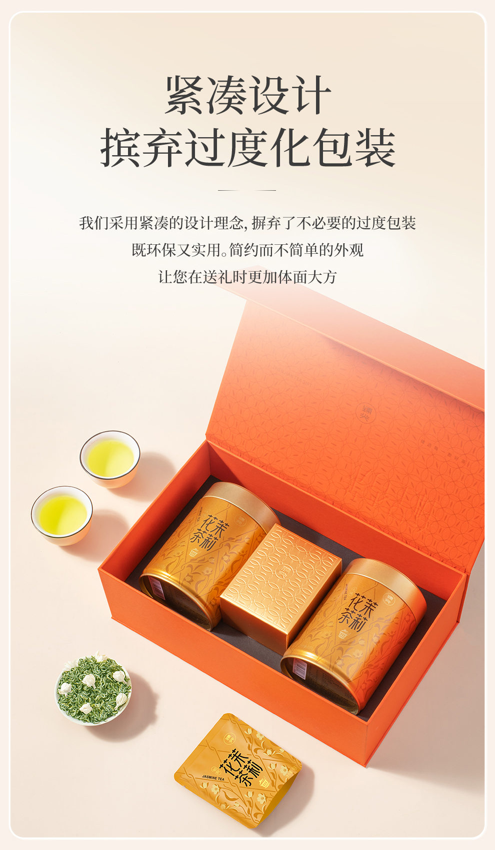 【臻尖-茉香呈祥橙色礼盒】新花新茶茉莉飘雪花茶四川茉莉花茶 节日送礼长辈高档花茶茶叶礼盒