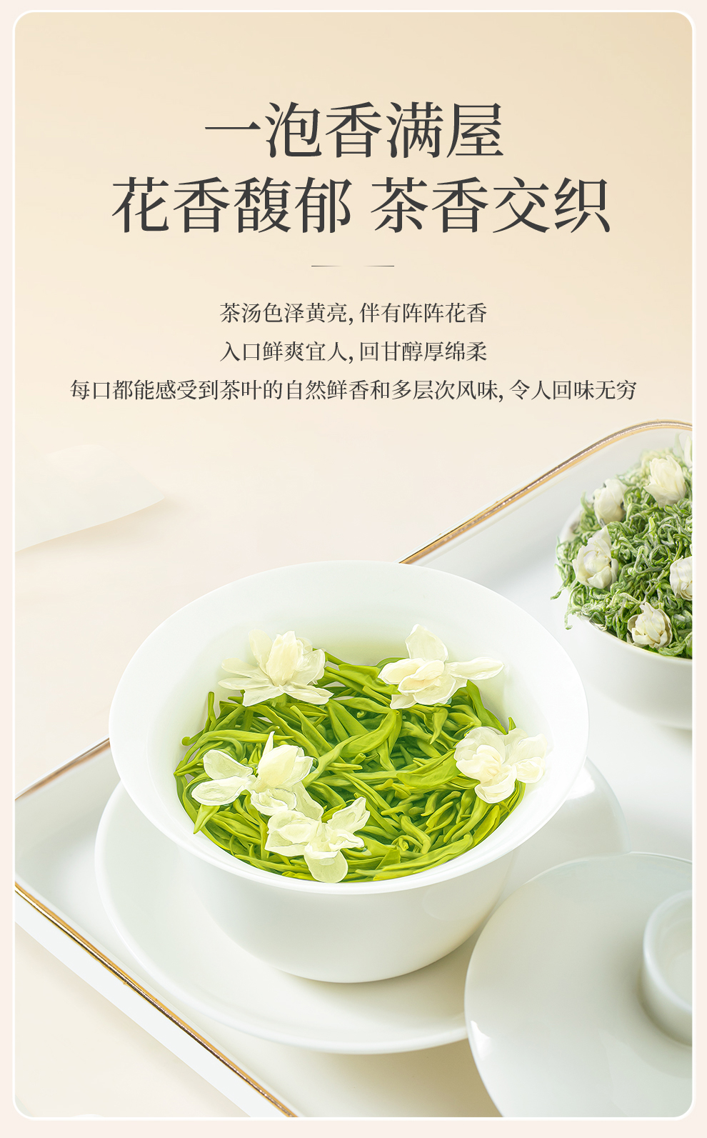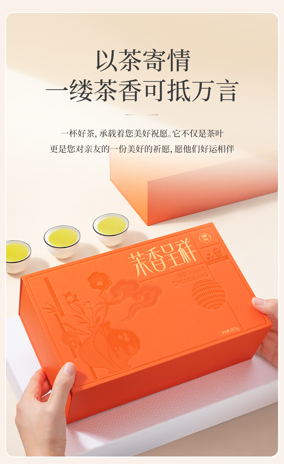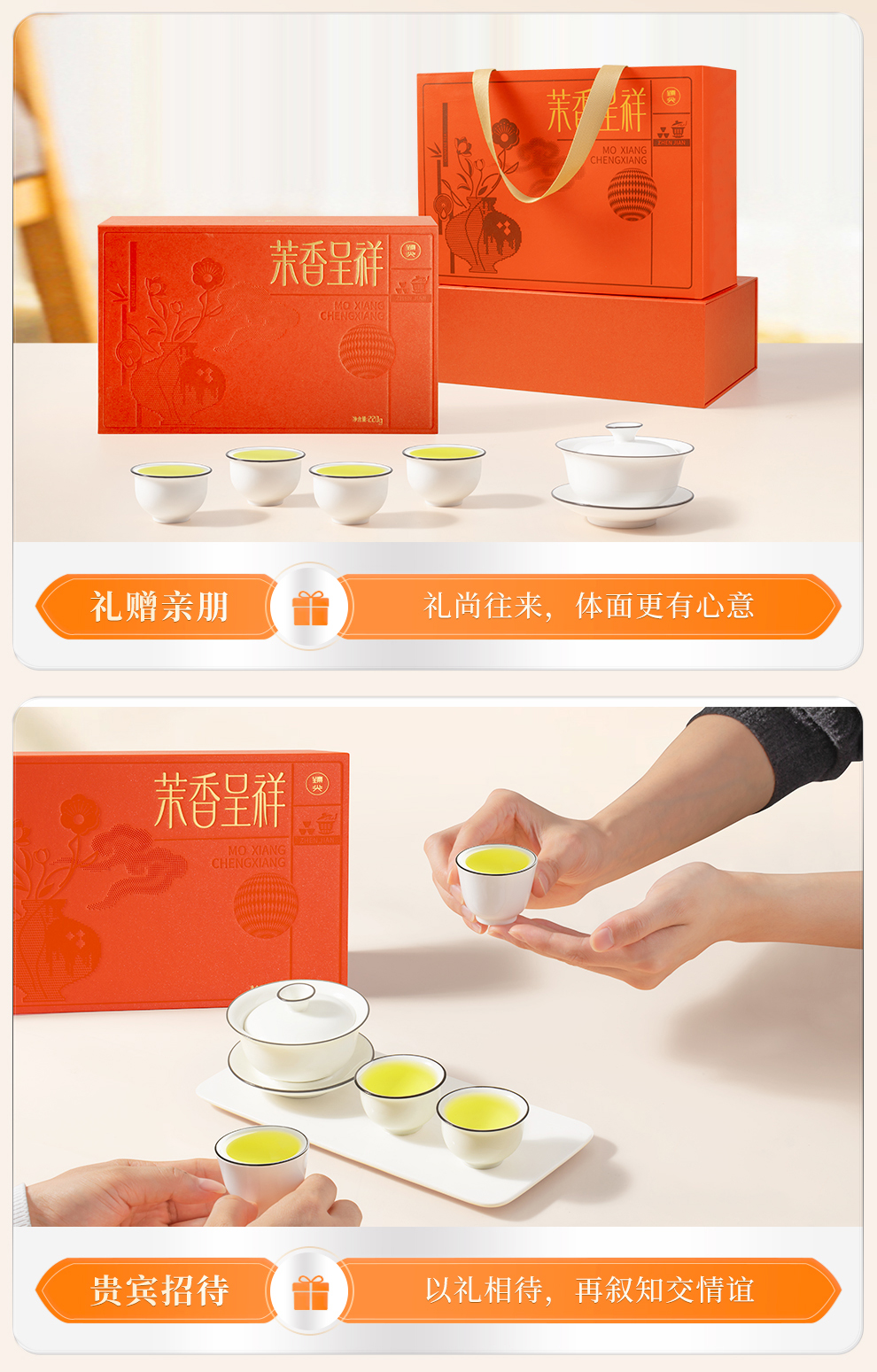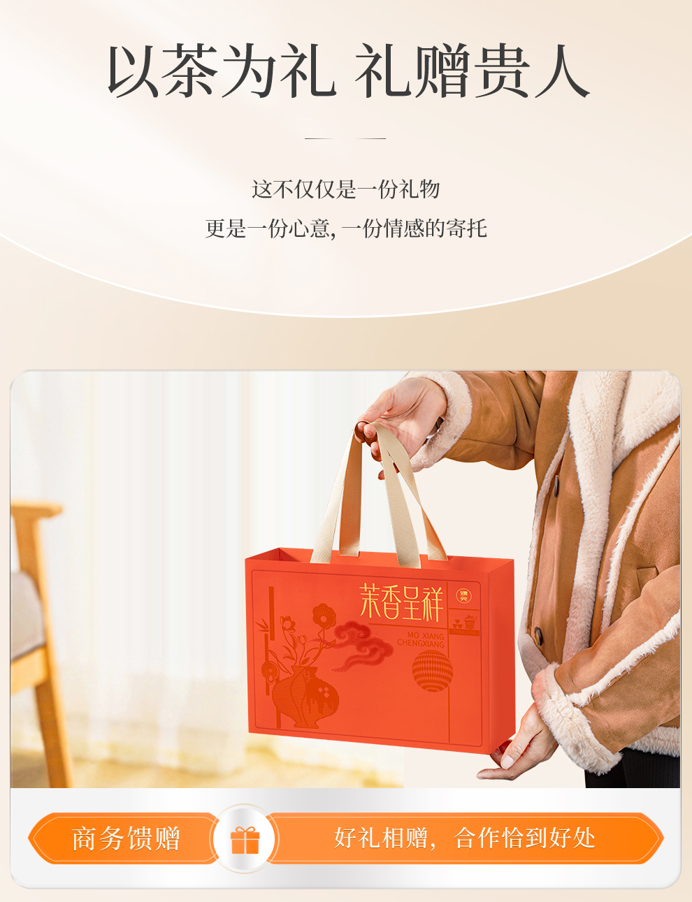 【臻尖-茉香呈祥橙色礼盒】新花新茶茉莉飘雪花茶四川茉莉花茶 节日送礼长辈高档花茶茶叶礼盒