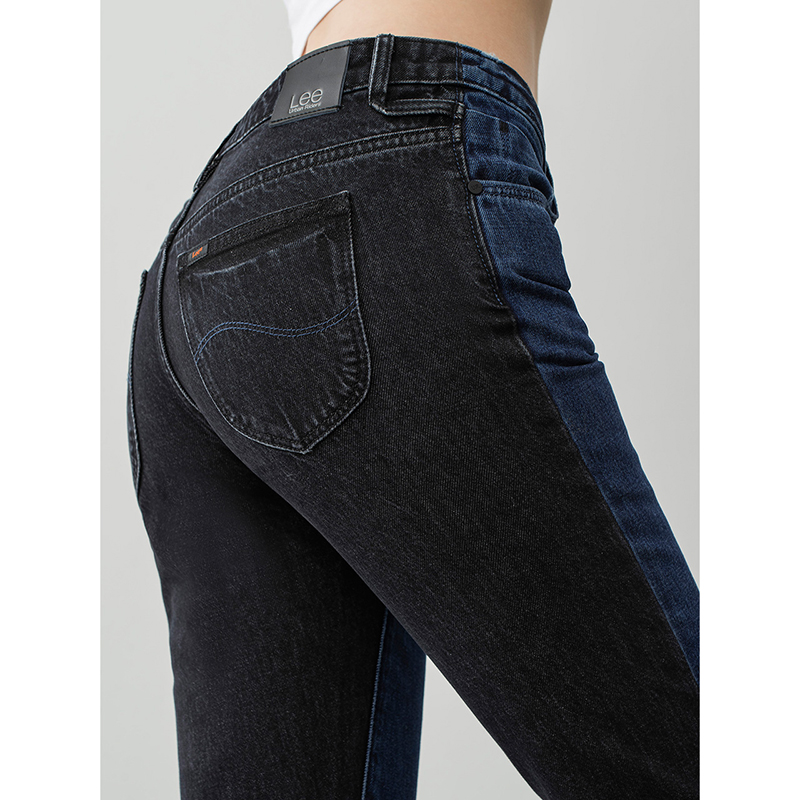 【尺码全】Lee都市骑士401版型标准小脚蓝色拼接女九分牛仔裤LWZ4015PN92L