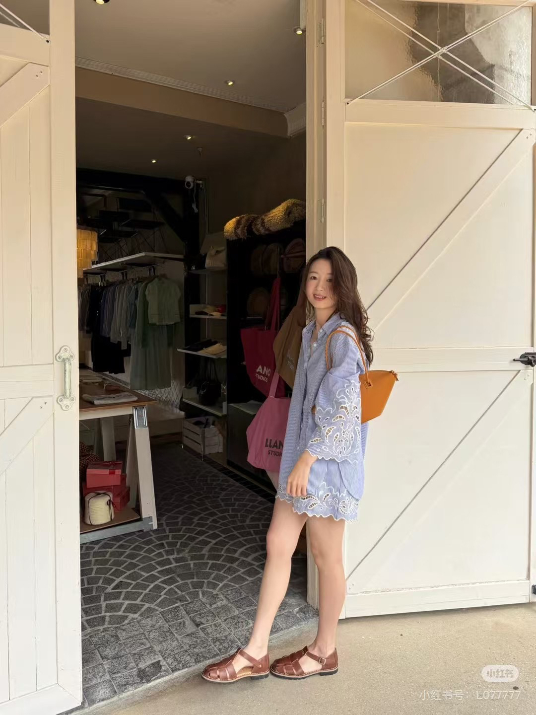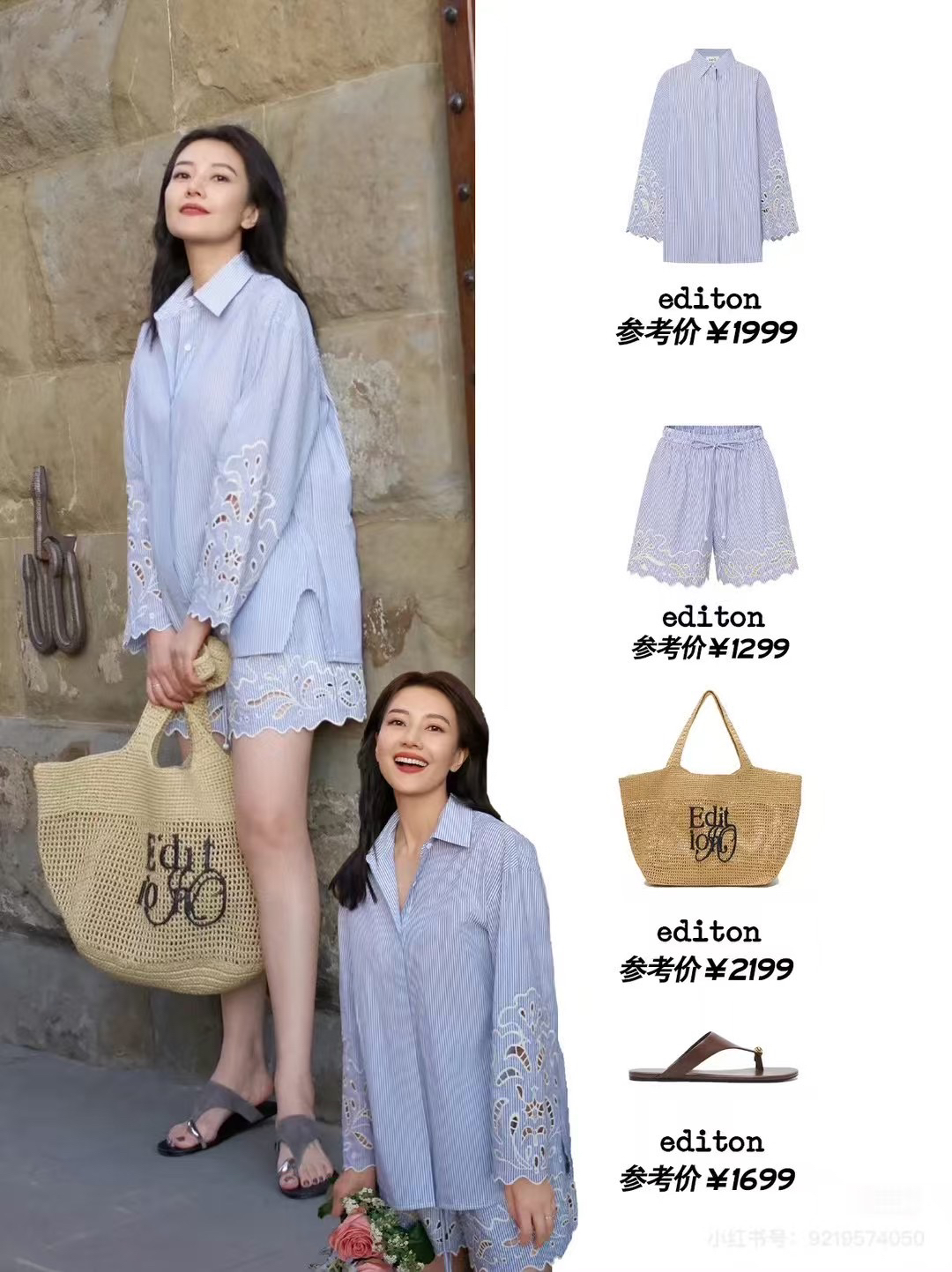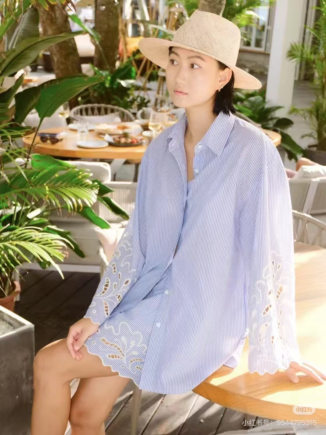 搭配草编包 + 凉鞋,海边拍照自带法